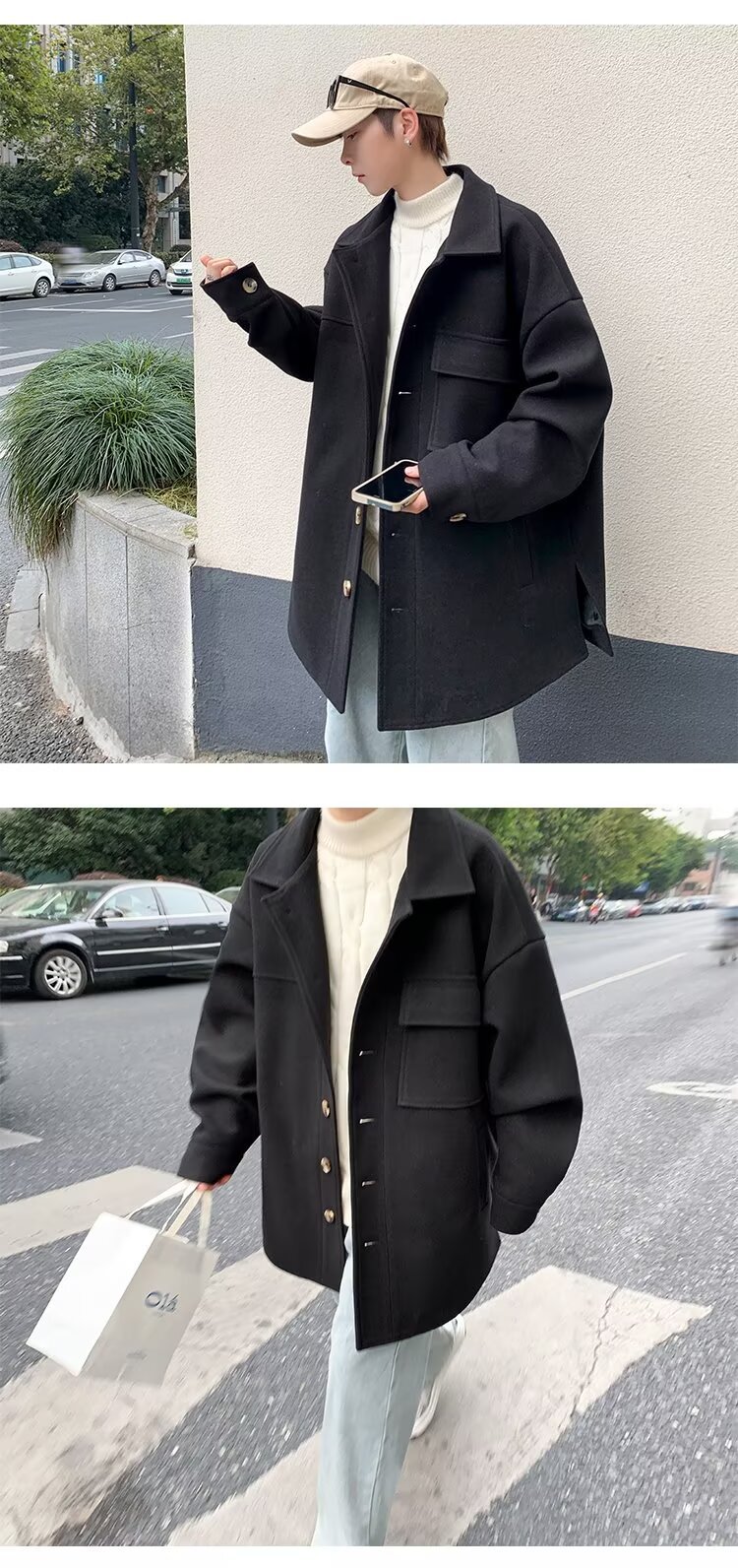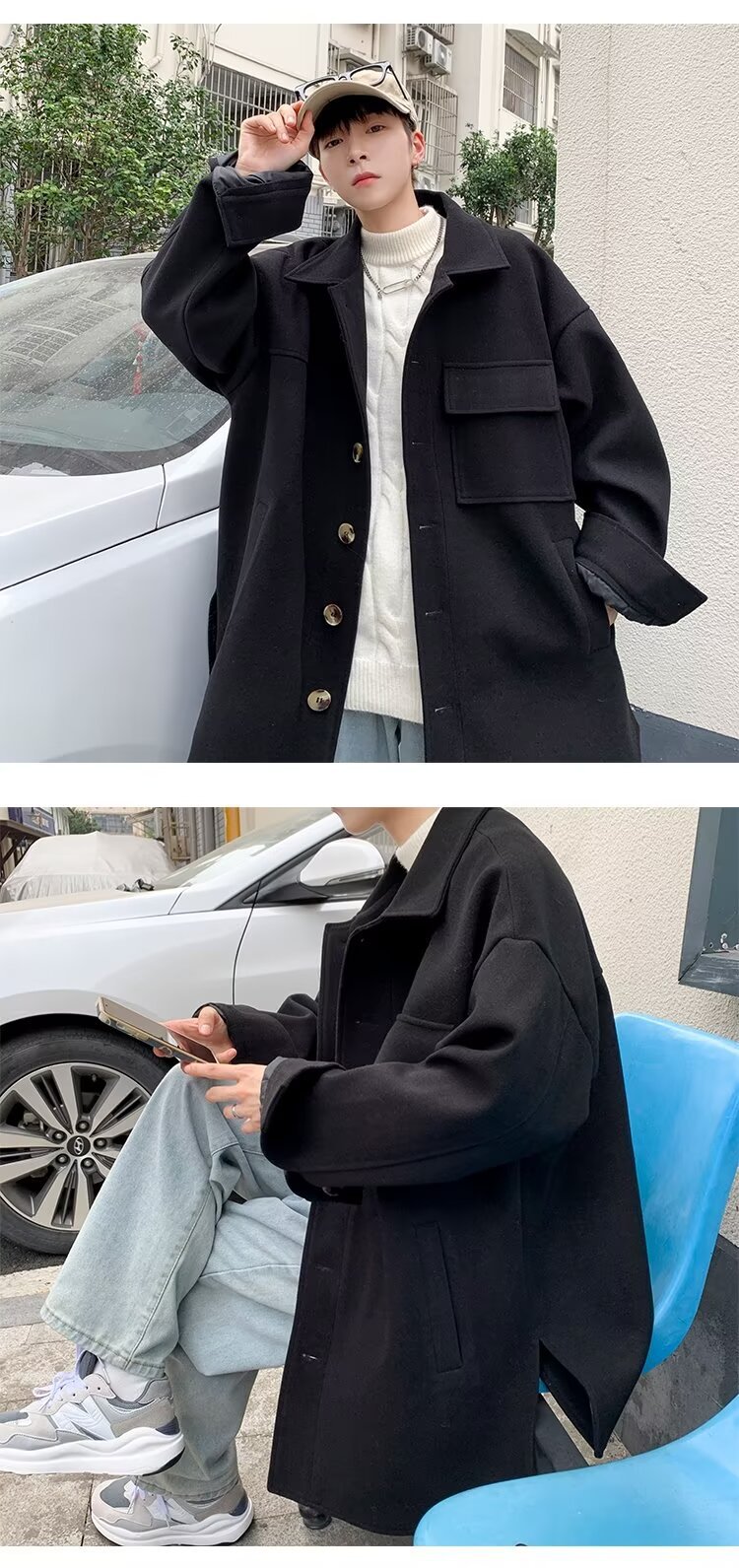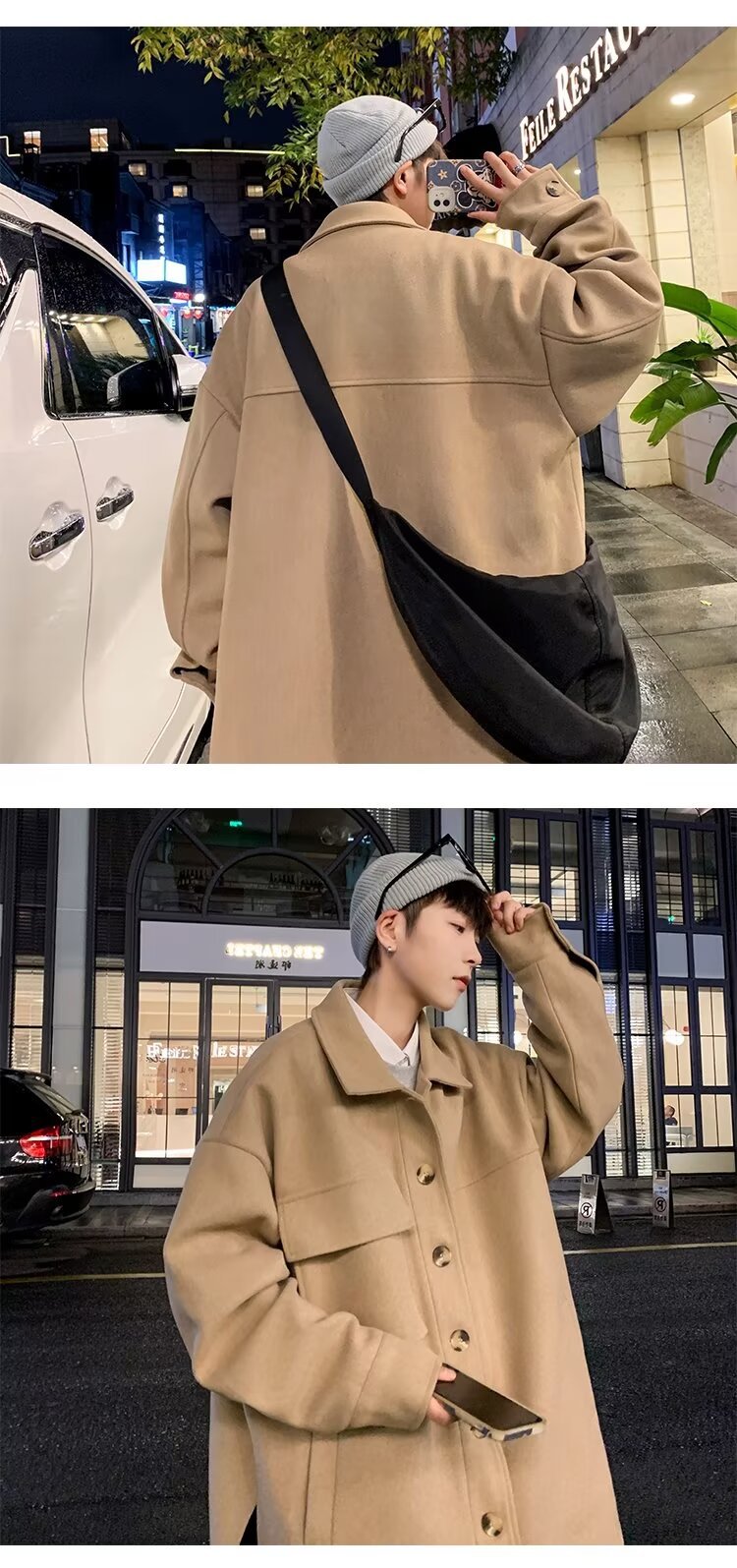 모직 코트 남자 겨울 두꺼운 따뜻한 솔리드 컬러 라이트 성숙한 스타일 한국 패셔너블 코트 트렌디 브랜드 인스타그램 커플 코트
