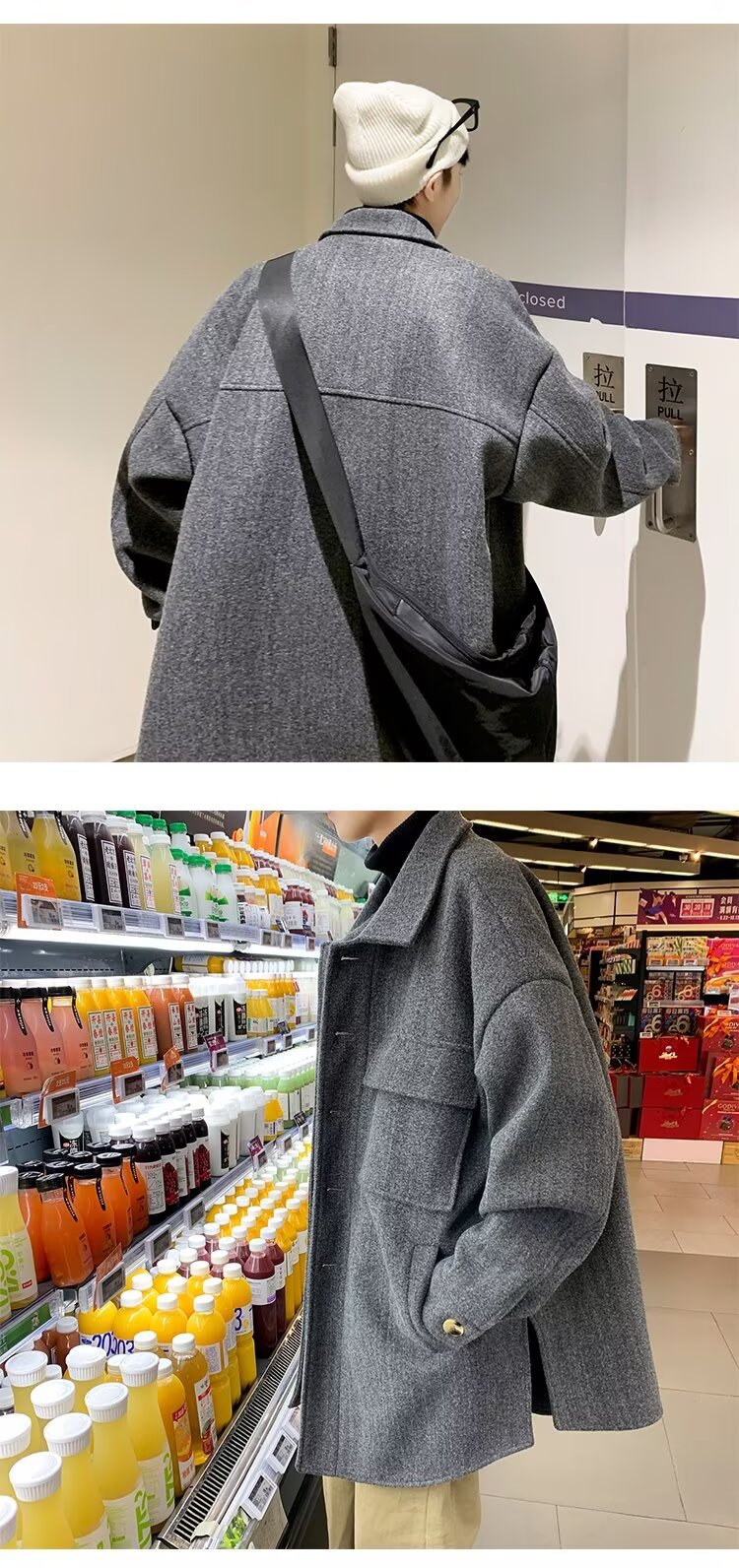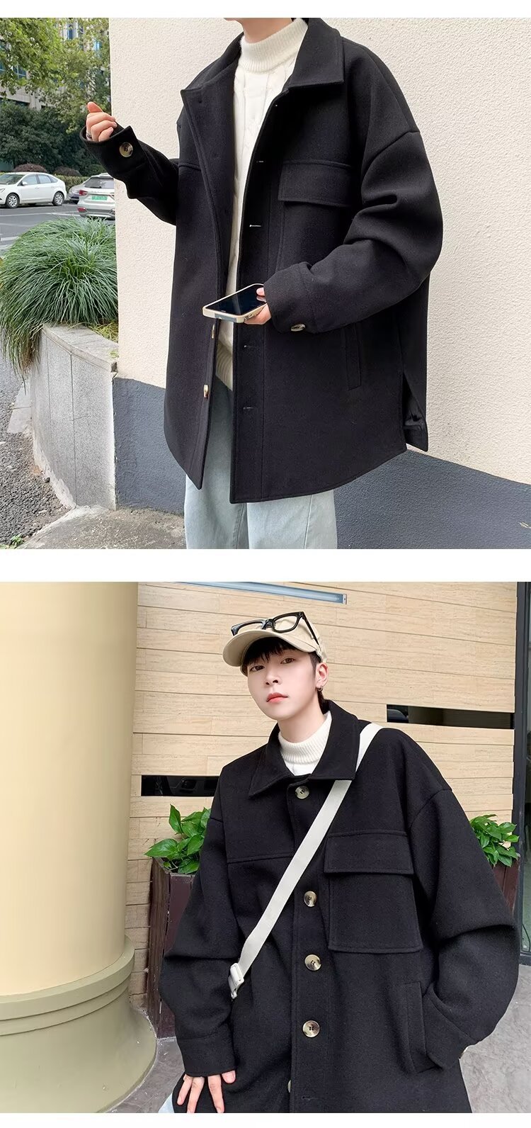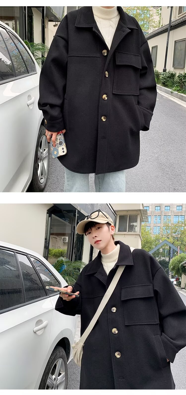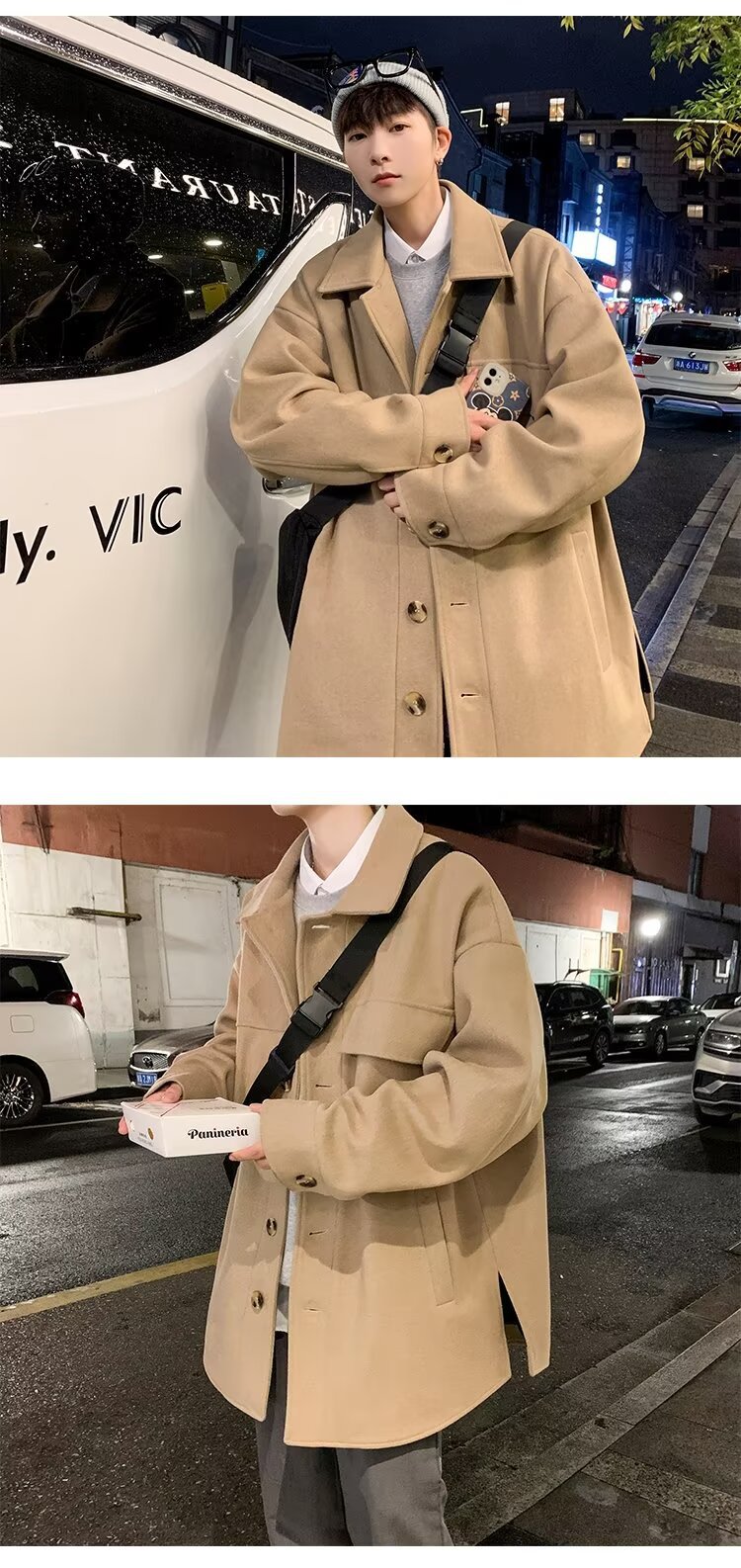 모직 코트 남자 겨울 두꺼운 따뜻한 솔리드 컬러 라이트 성숙한 스타일 한국 패셔너블 코트 트렌디 브랜드 인스타그램 커플 코트