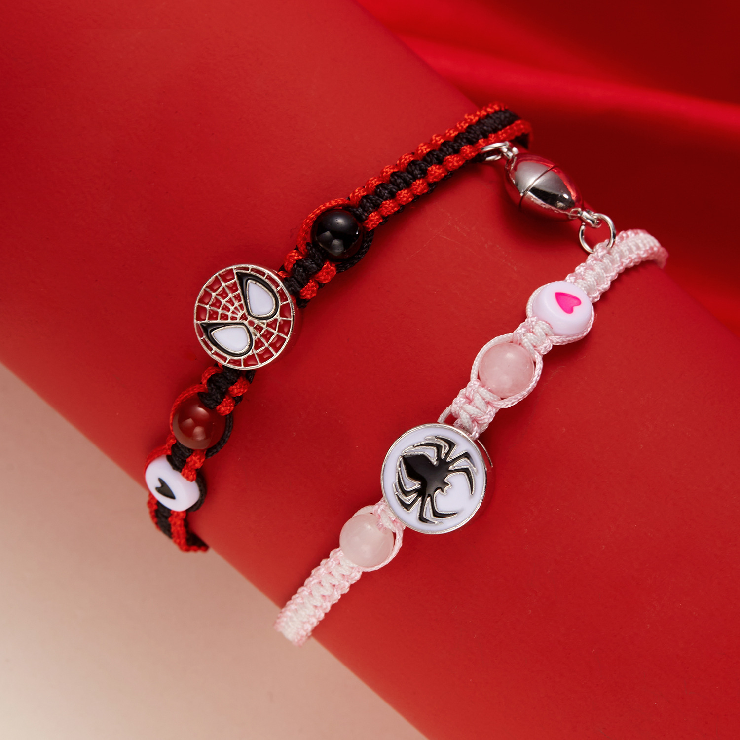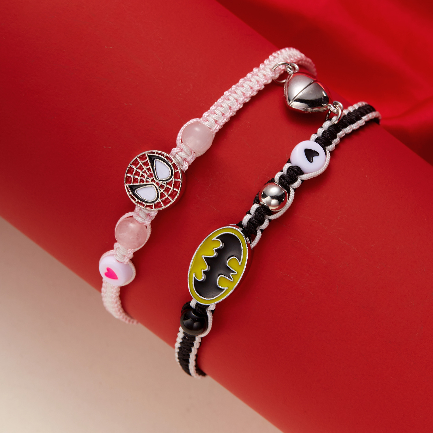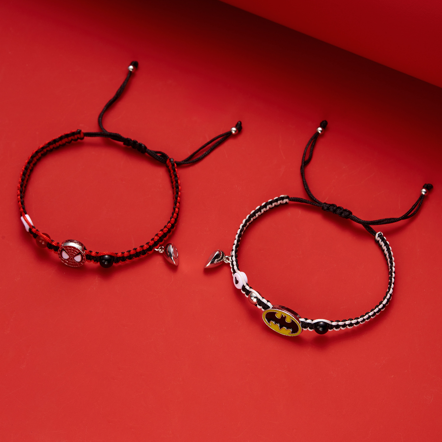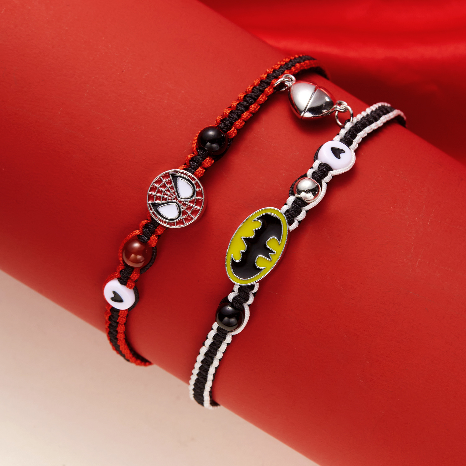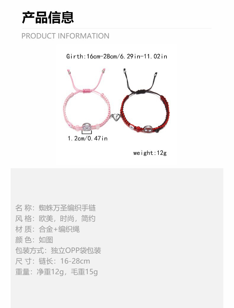 국경 새로운 할로윈 보석 패션 손으로 짠 스파이더 맨 박쥐 자기 커플 팔찌 도매 사랑