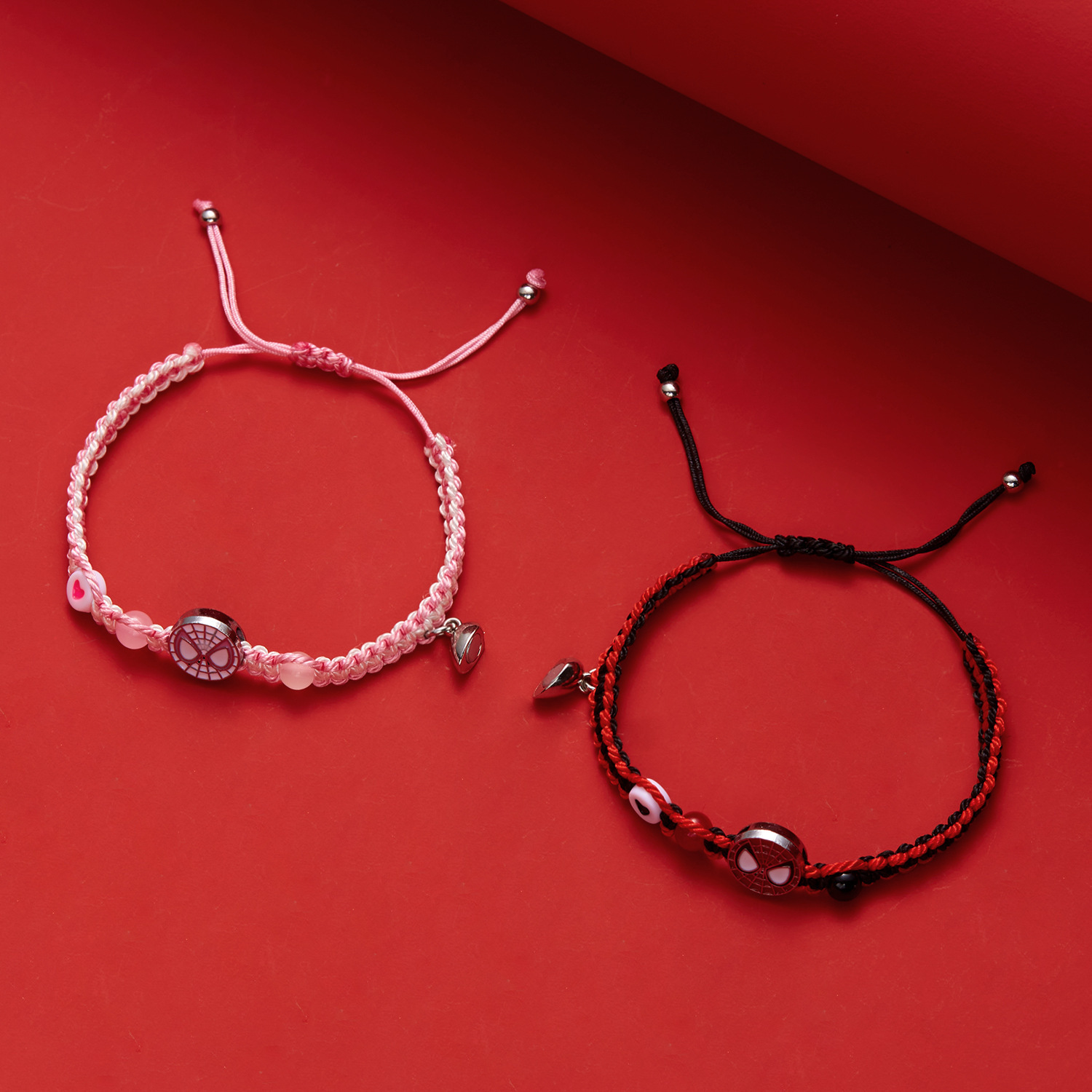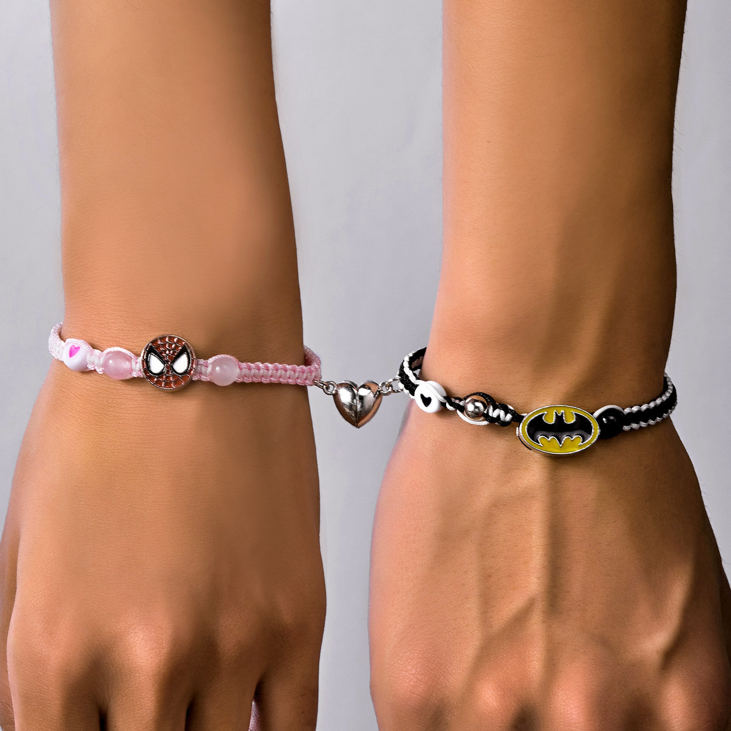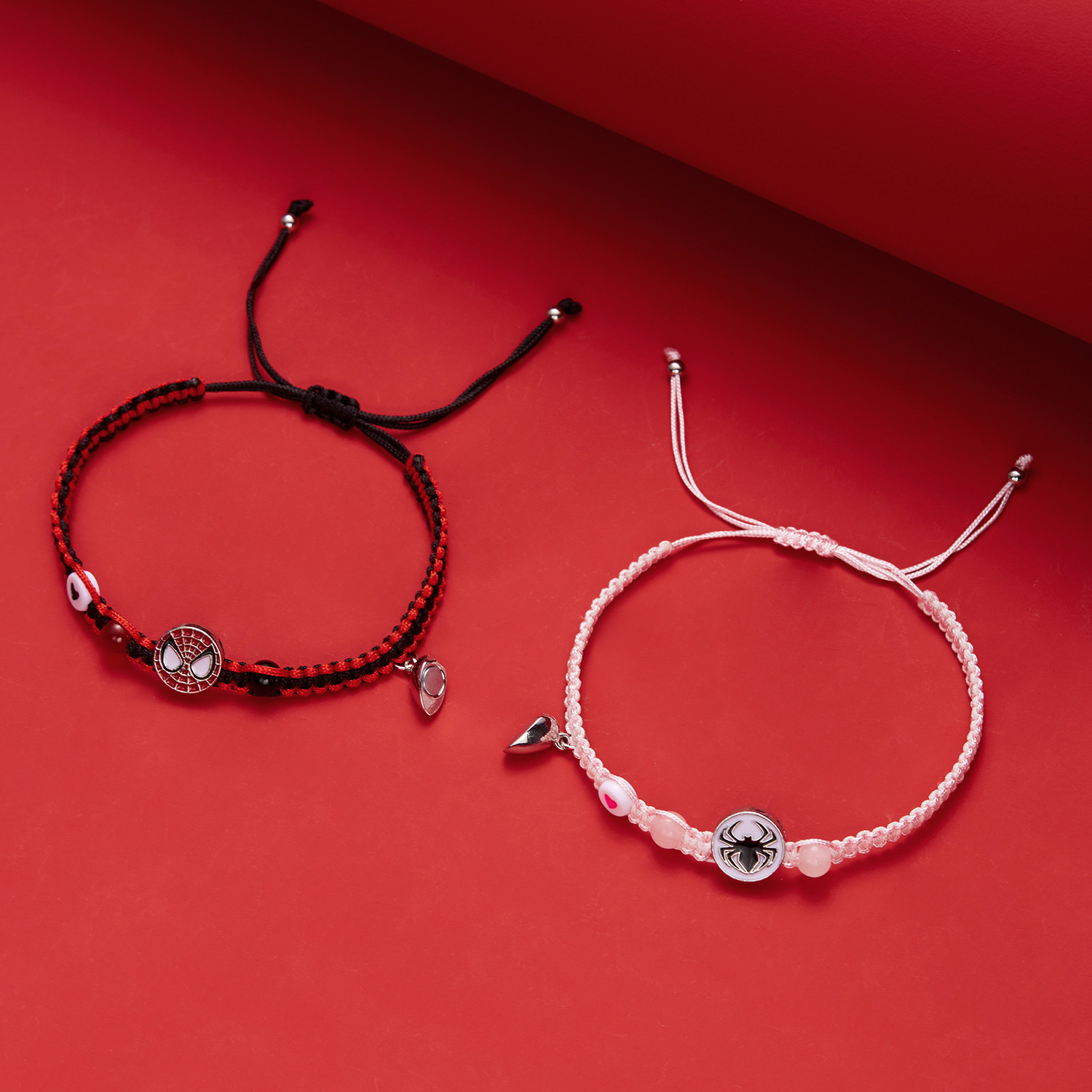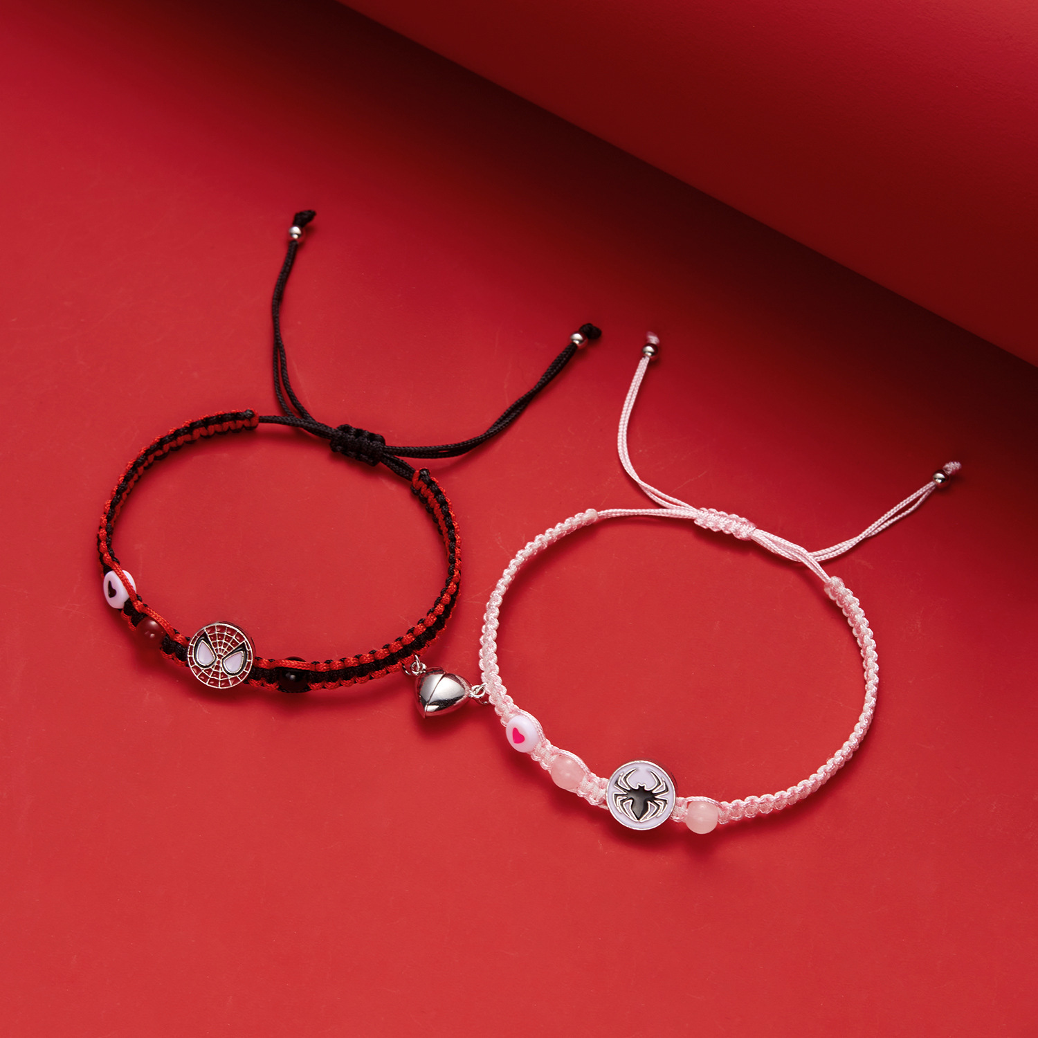 국경 새로운 할로윈 보석 패션 손으로 짠 스파이더 맨 박쥐 자기 커플 팔찌 도매 사랑