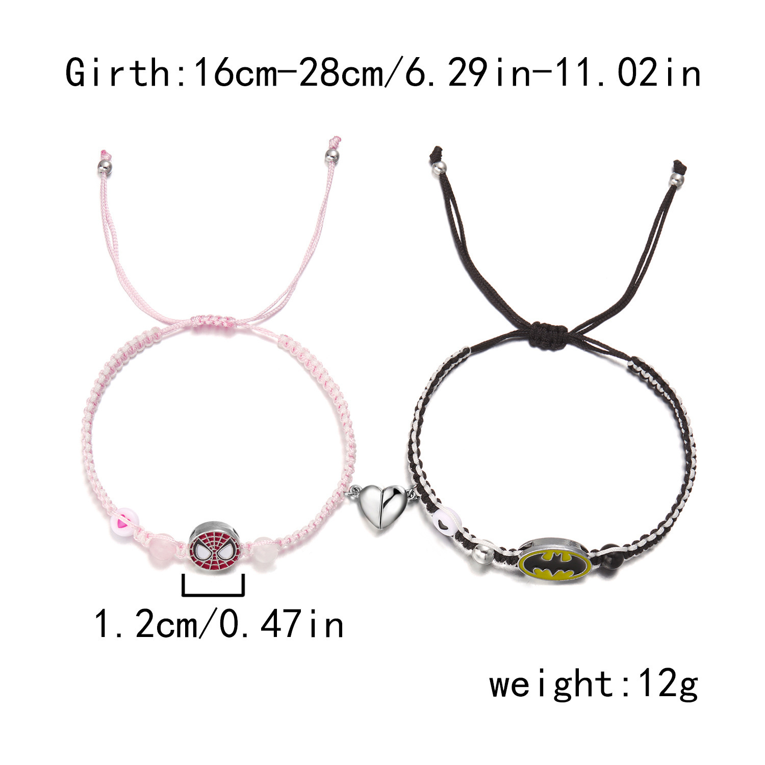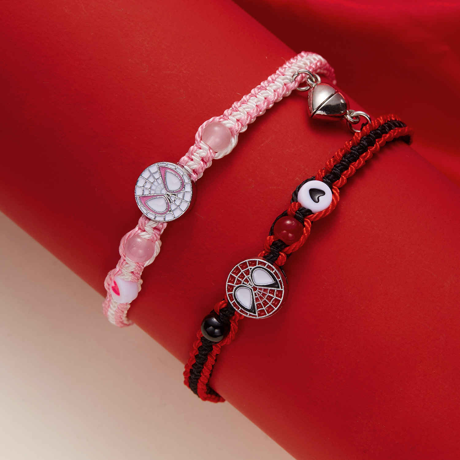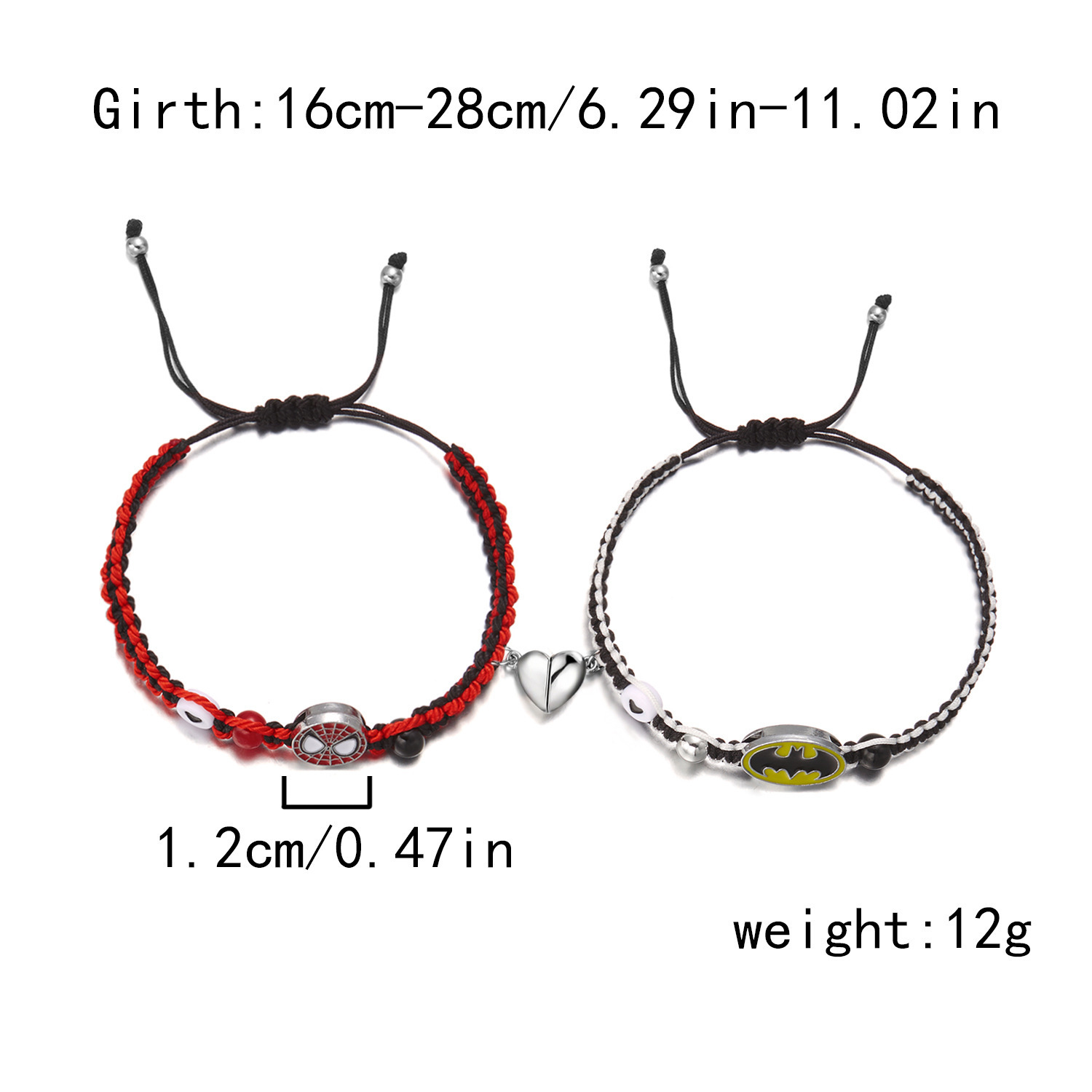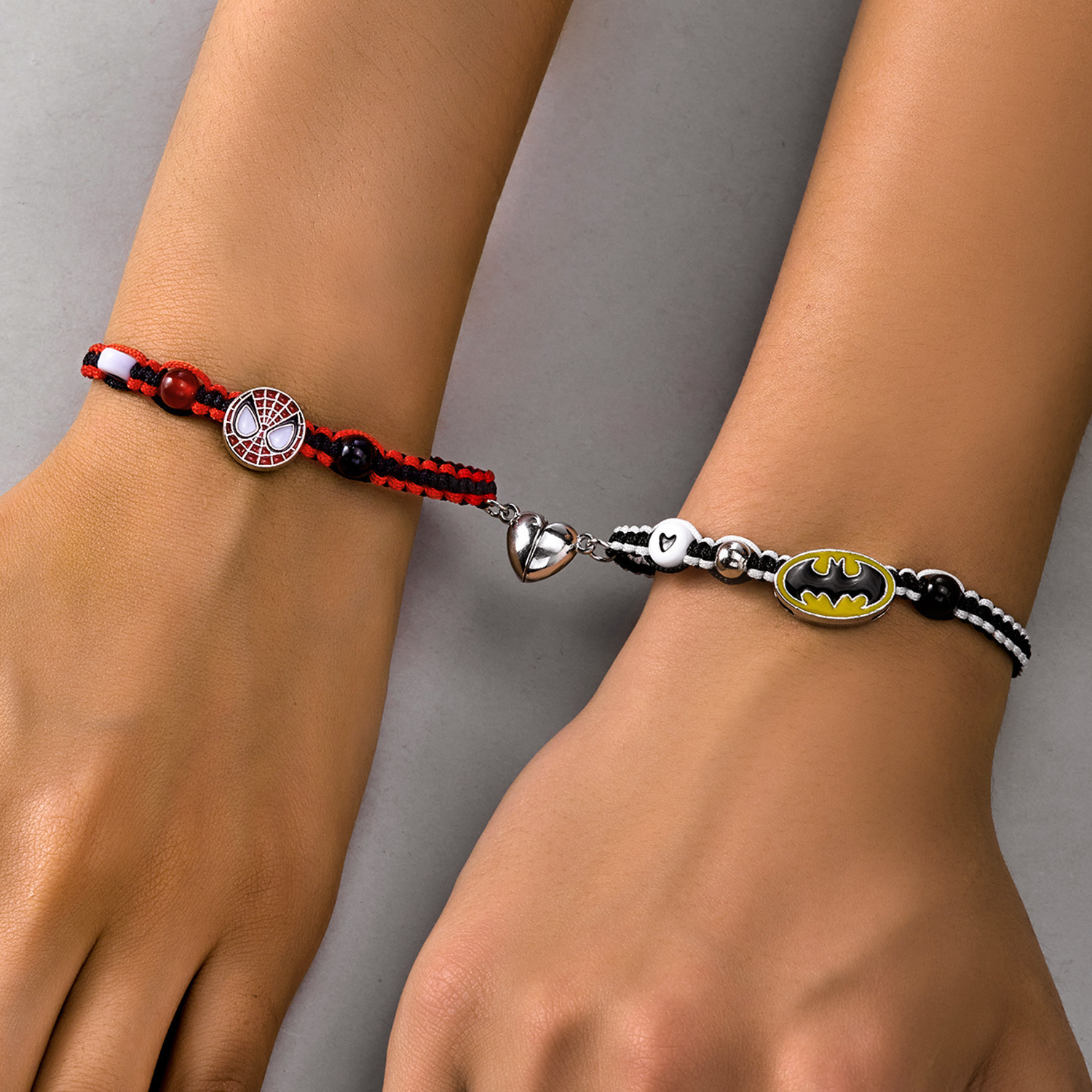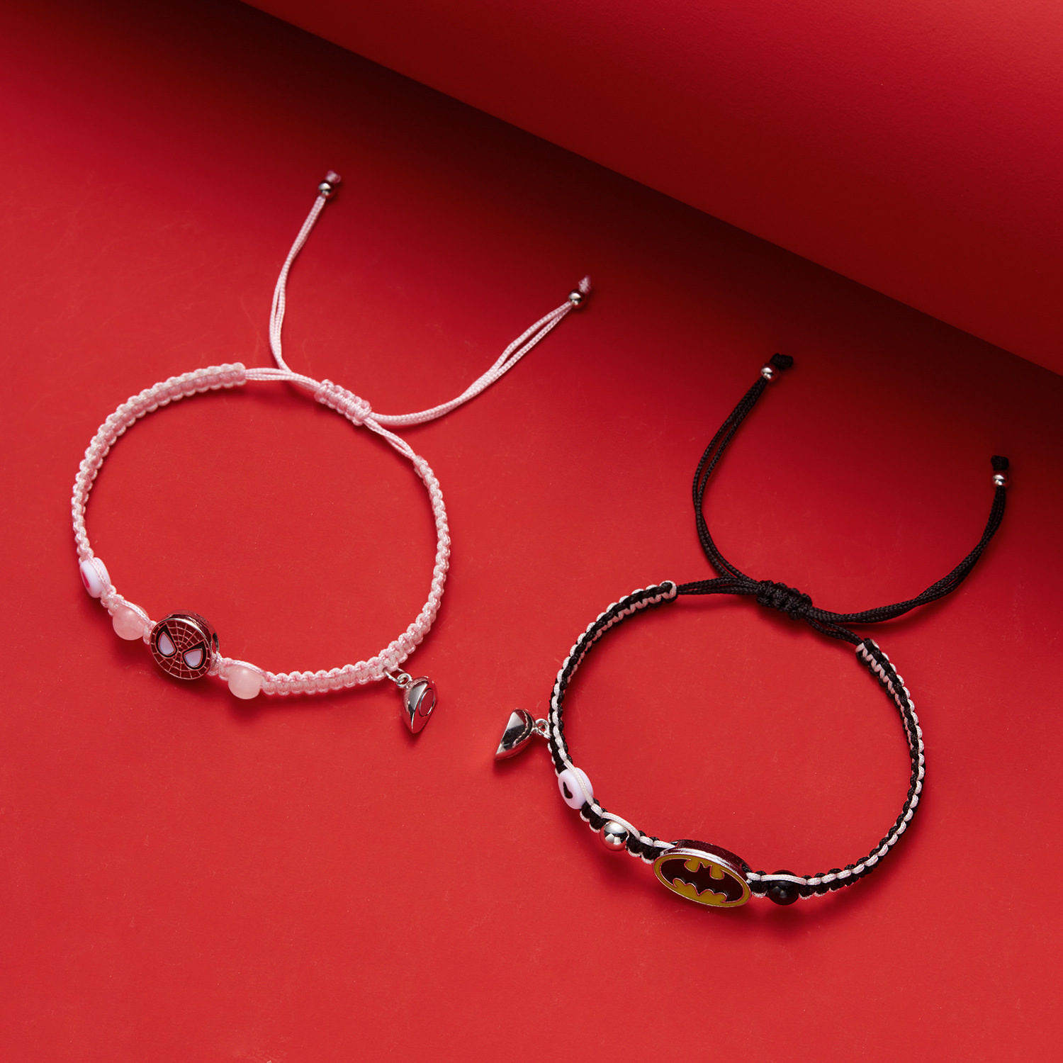국경 새로운 할로윈 보석 패션 손으로 짠 스파이더 맨 박쥐 자기 커플 팔찌 도매 사랑