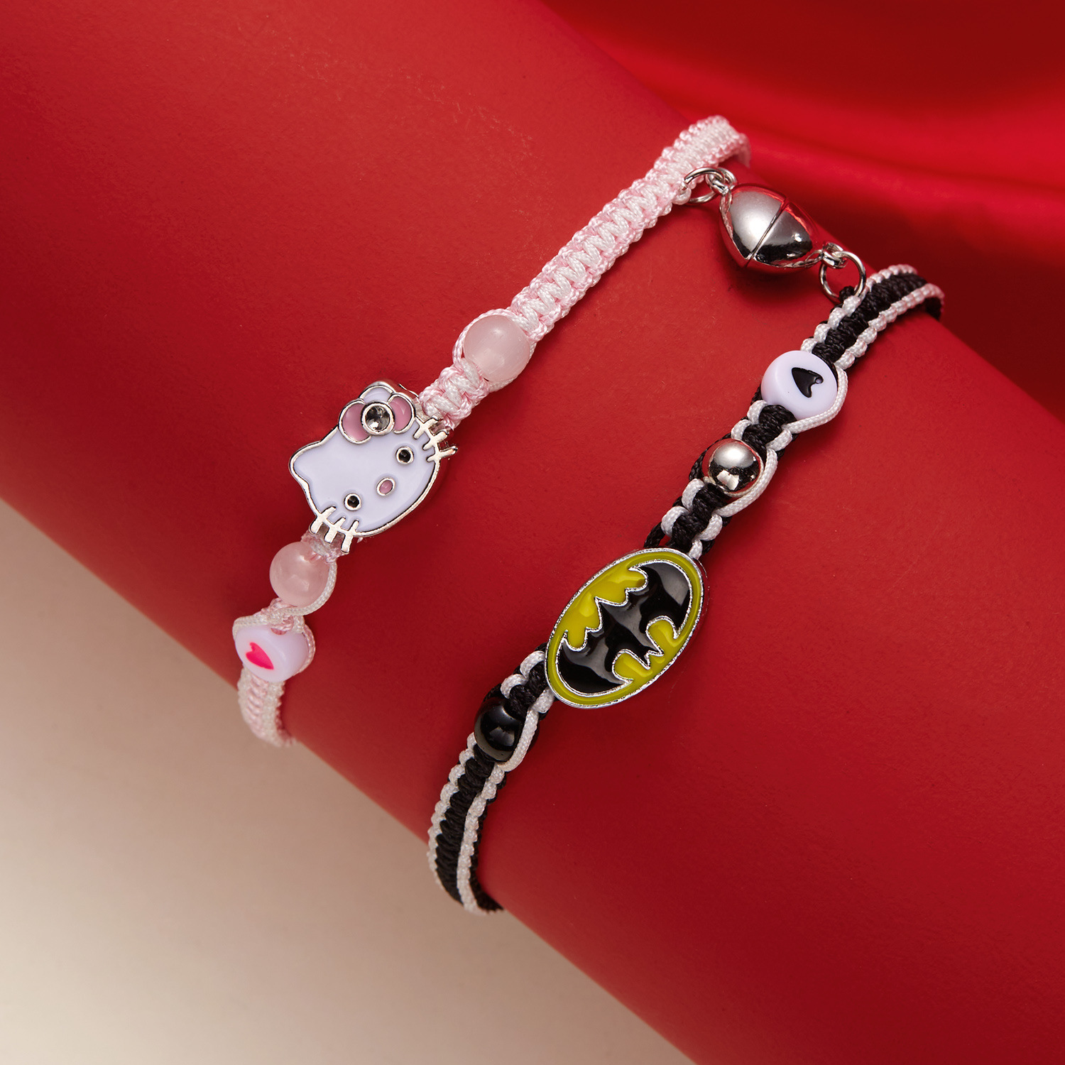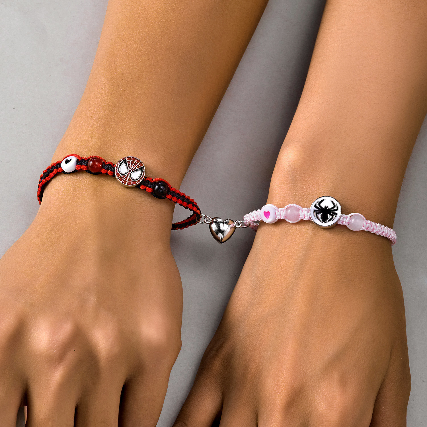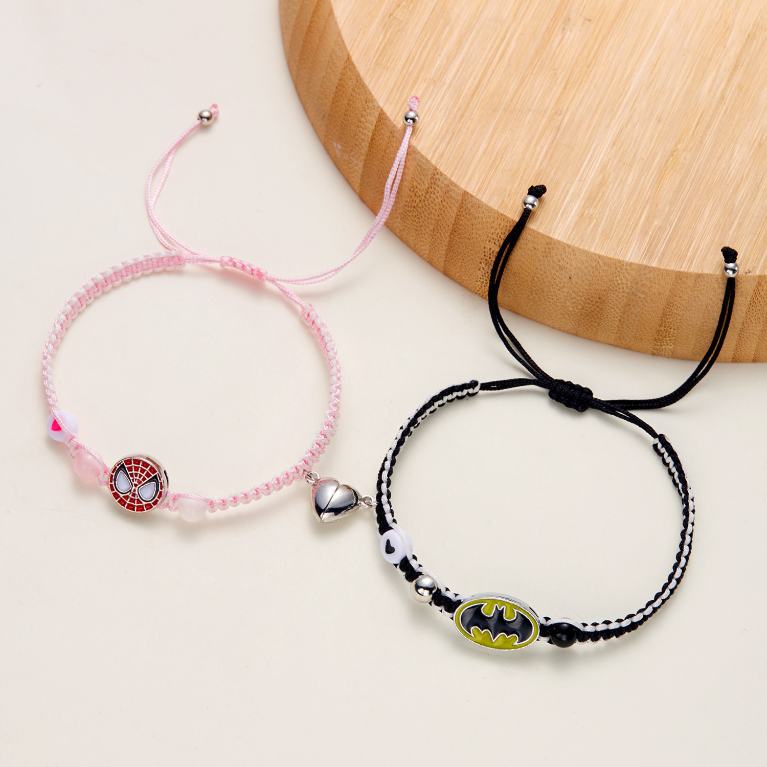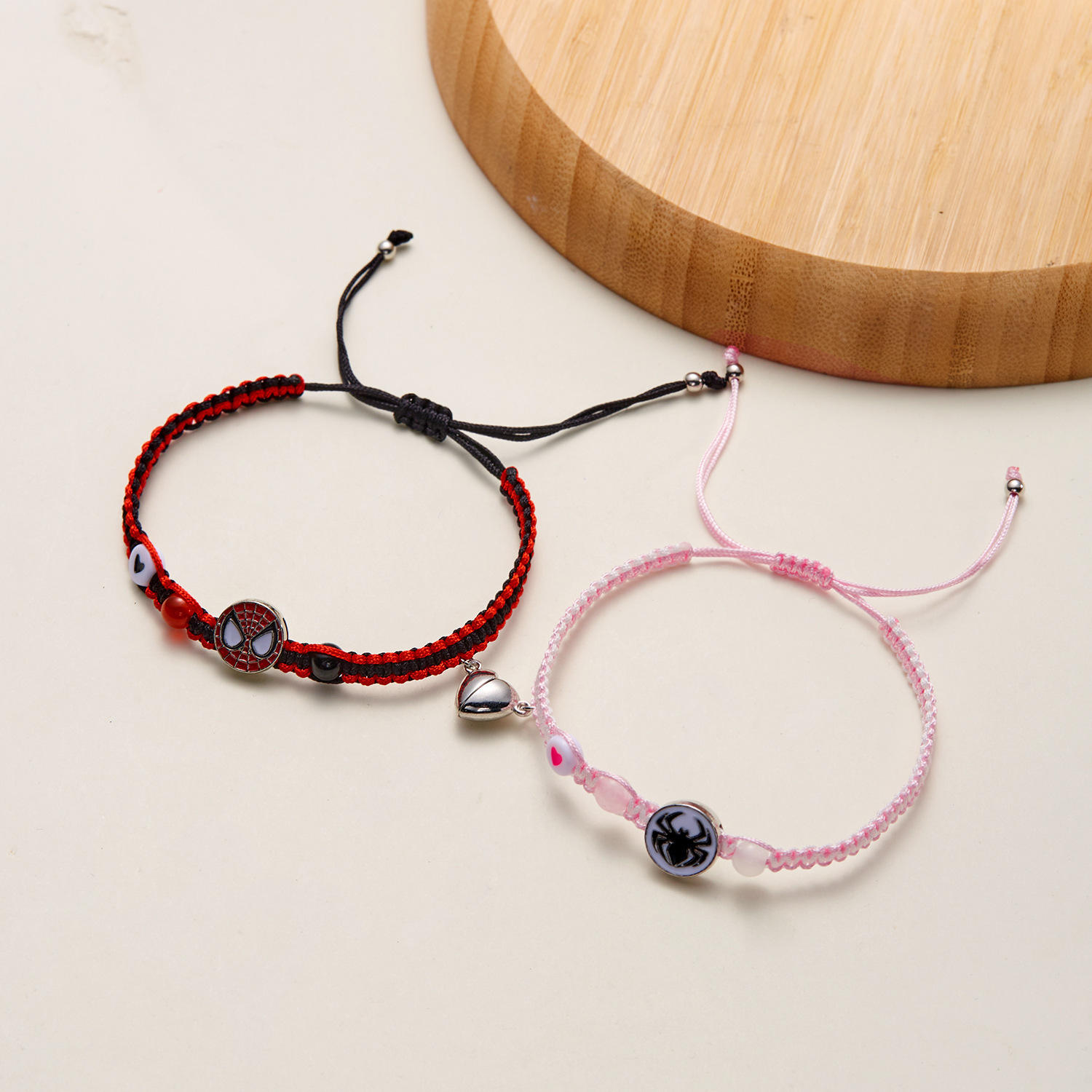 국경 새로운 할로윈 보석 패션 손으로 짠 스파이더 맨 박쥐 자기 커플 팔찌 도매 사랑