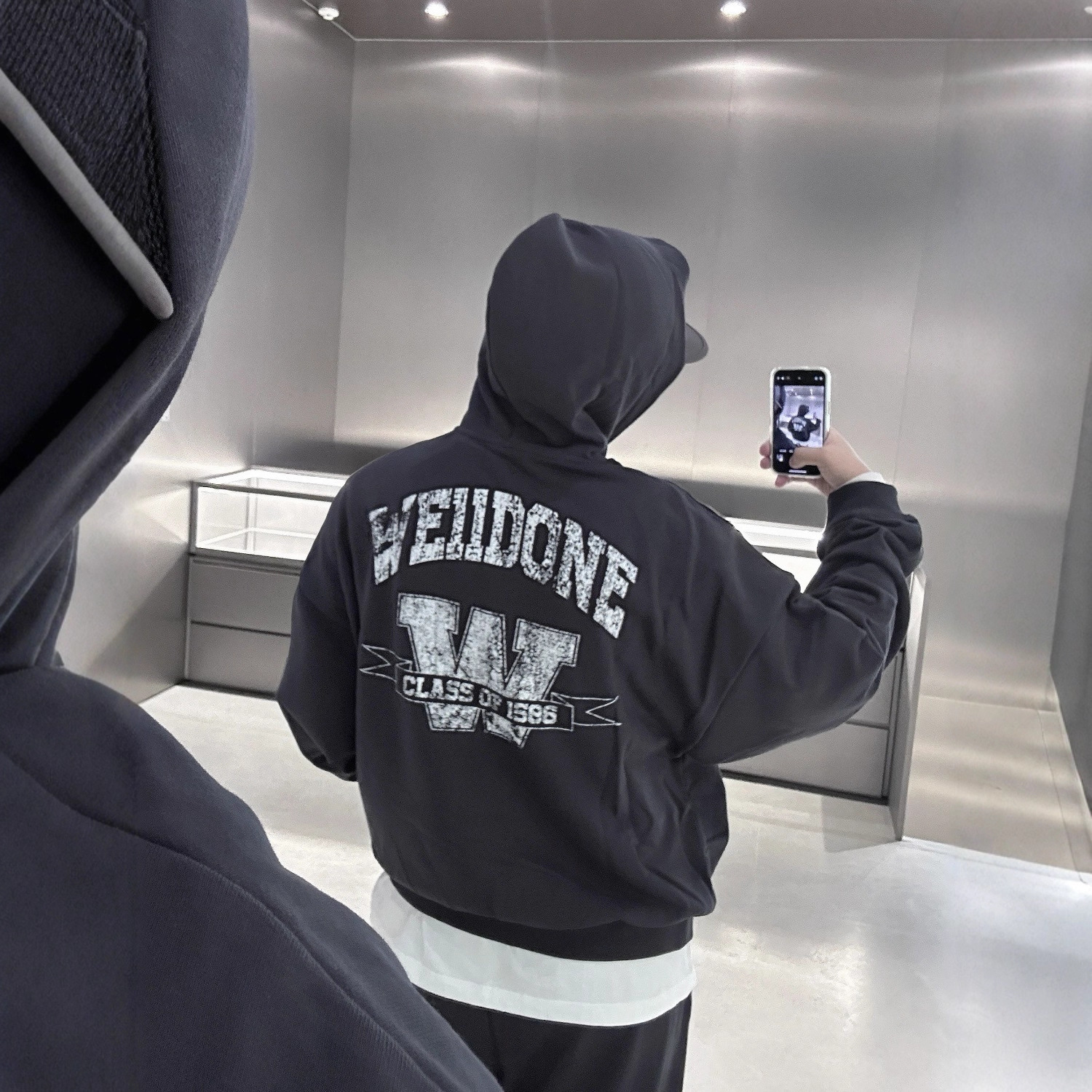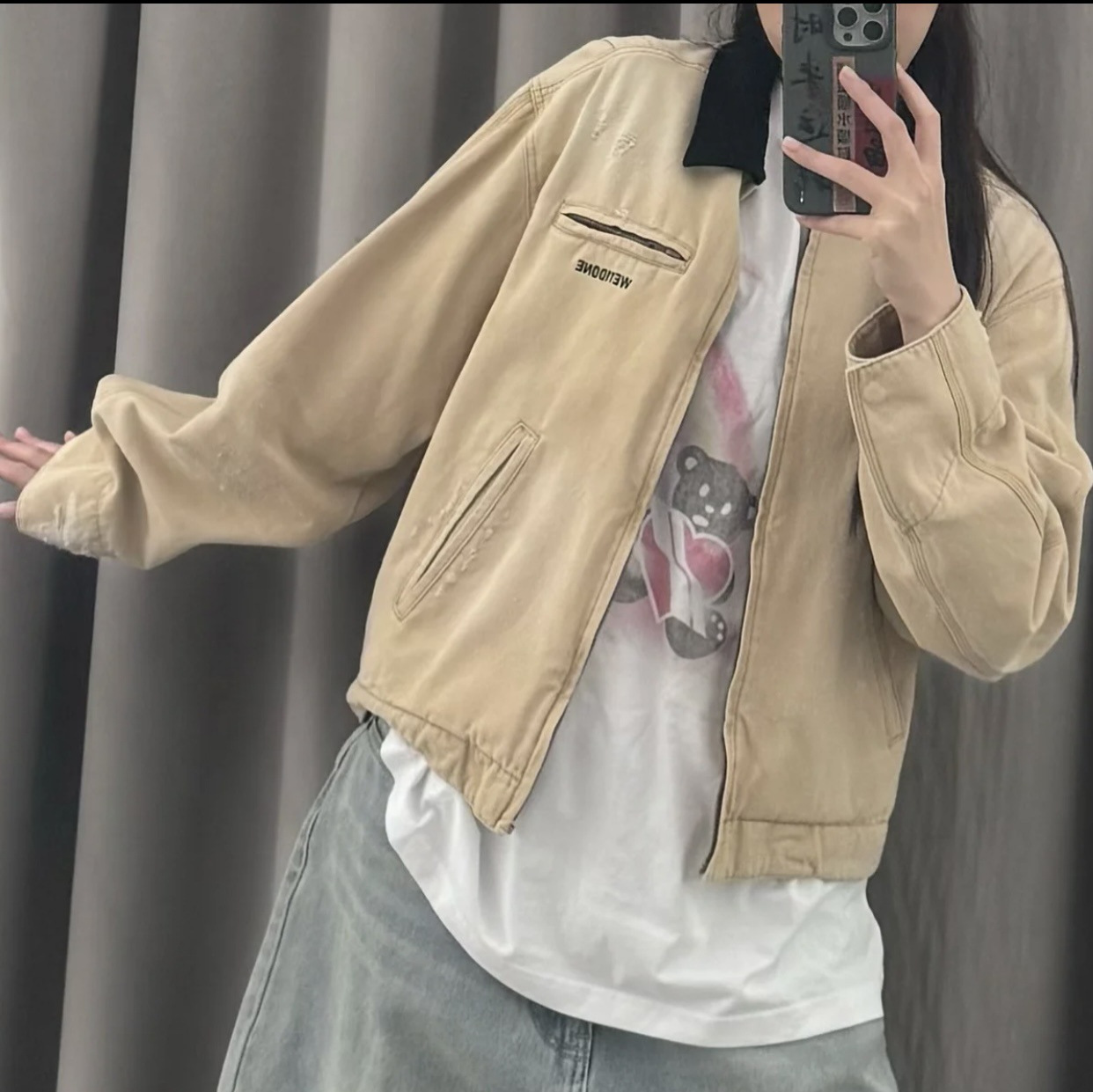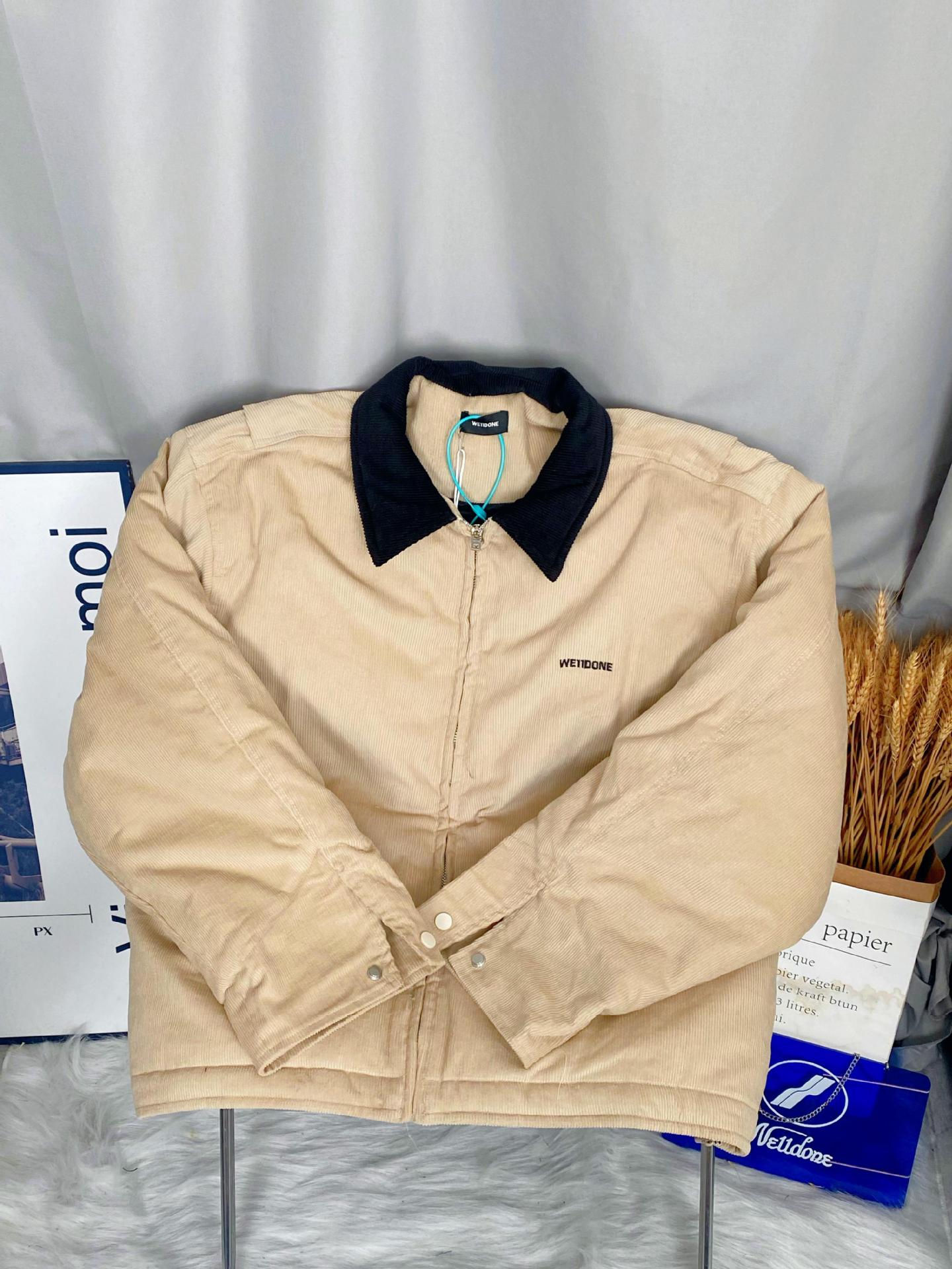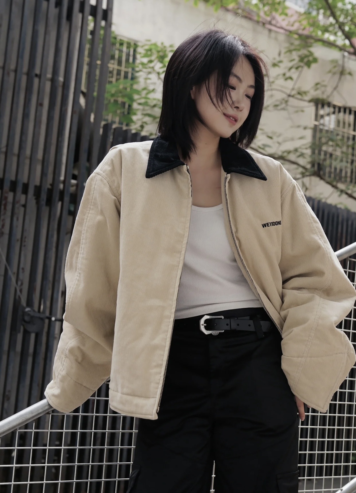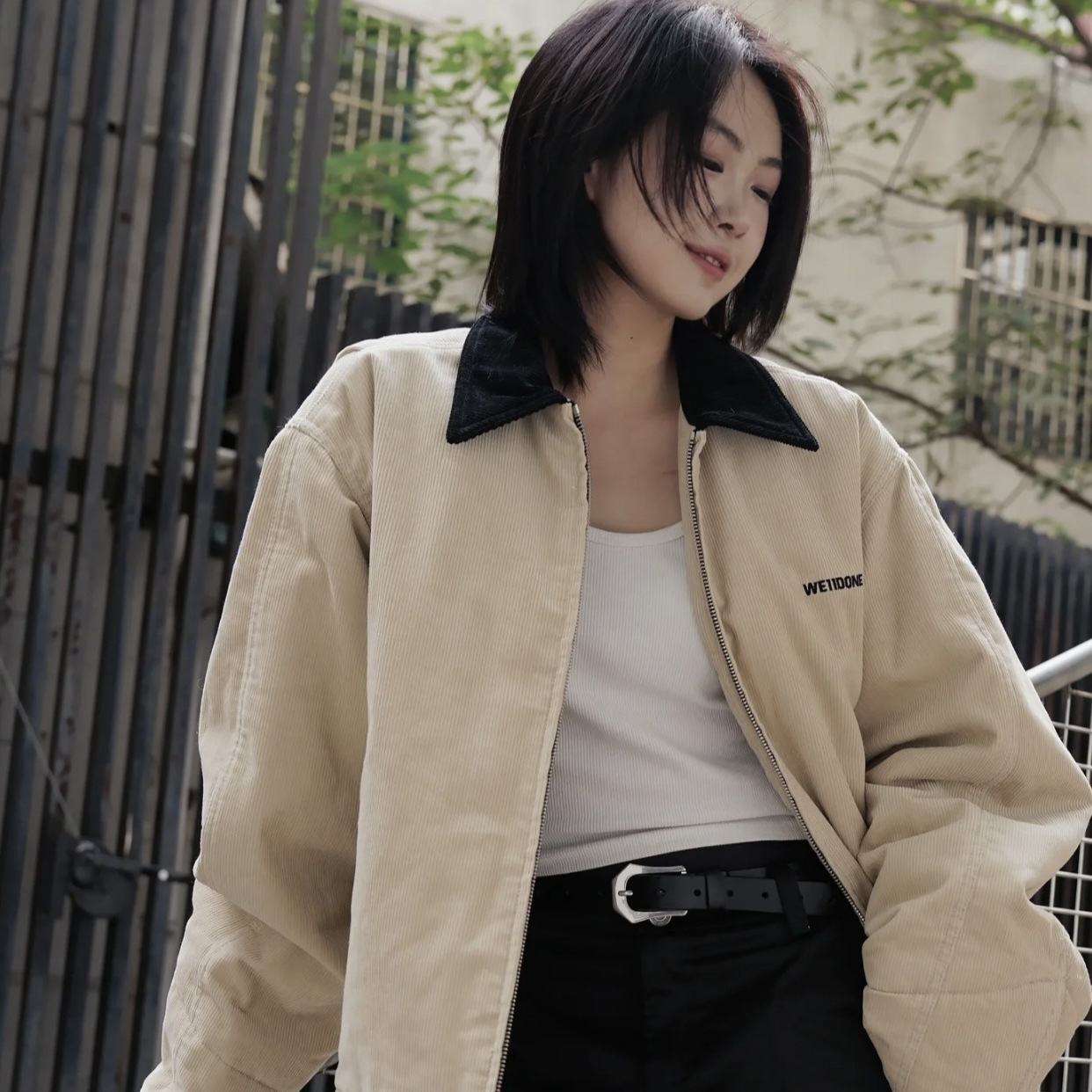25SS 신상 WE11 레터 로고 남녀공용 배지 코듀로이 라펠 배색 두꺼운 재킷 스웨트셔츠