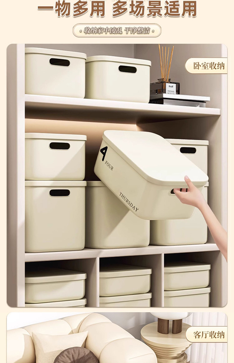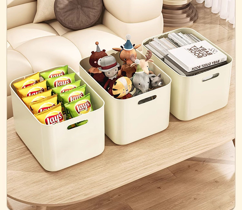 보관 상자 데스크탑 식료품 바구니 장난감 간식 옷 뚜껑 보관 상자 보관 상자가있는 가정용 플라스틱 보관 바구니