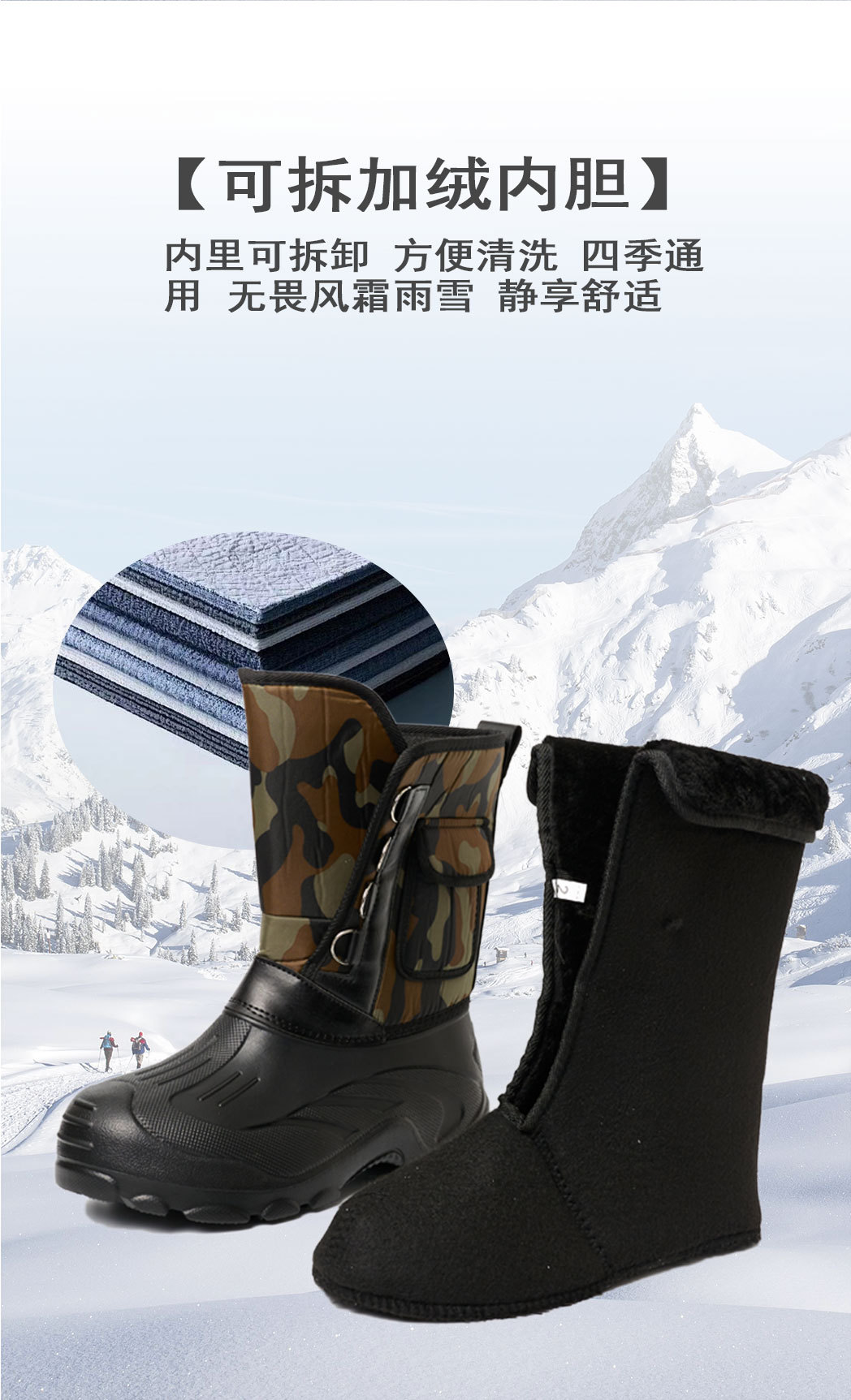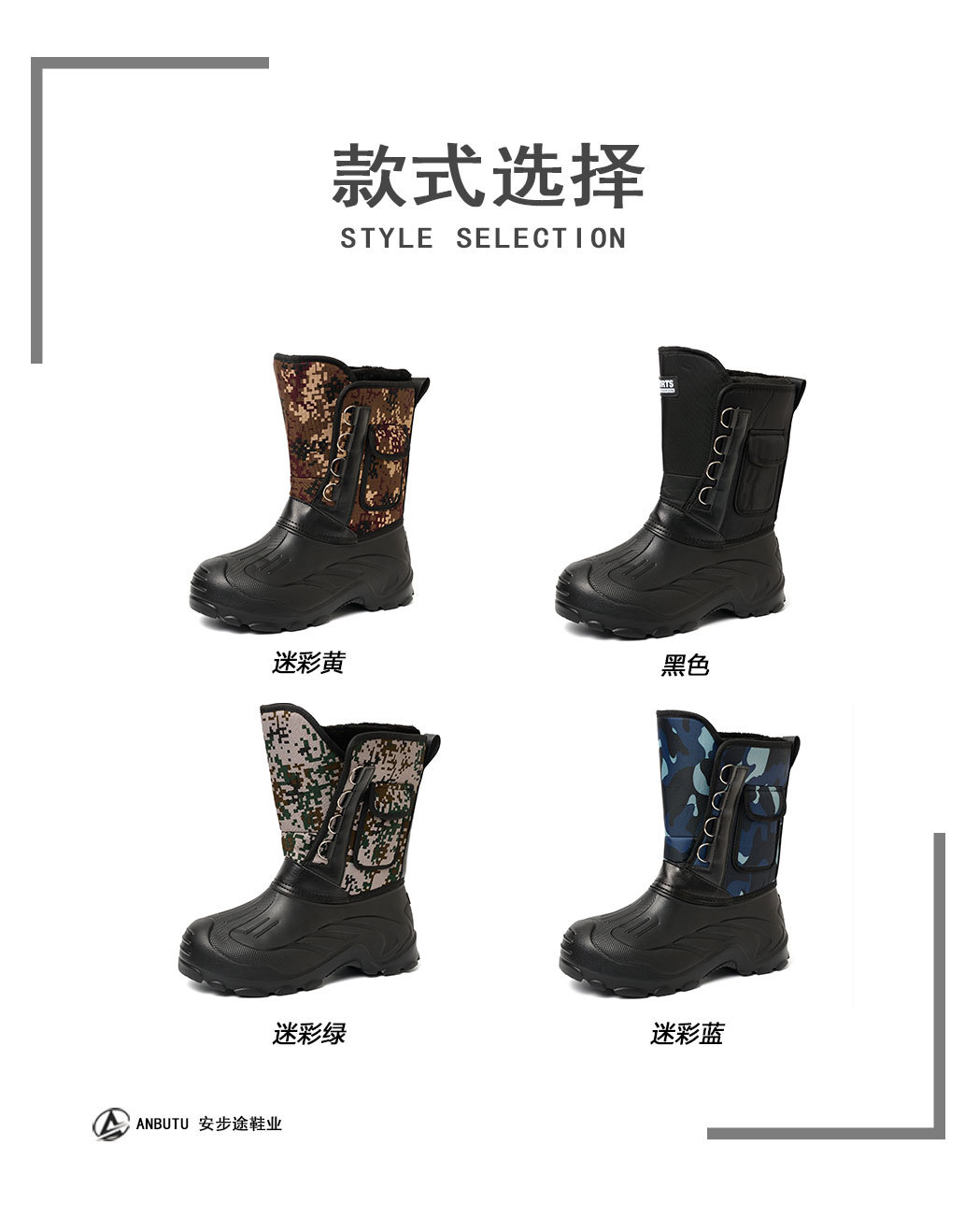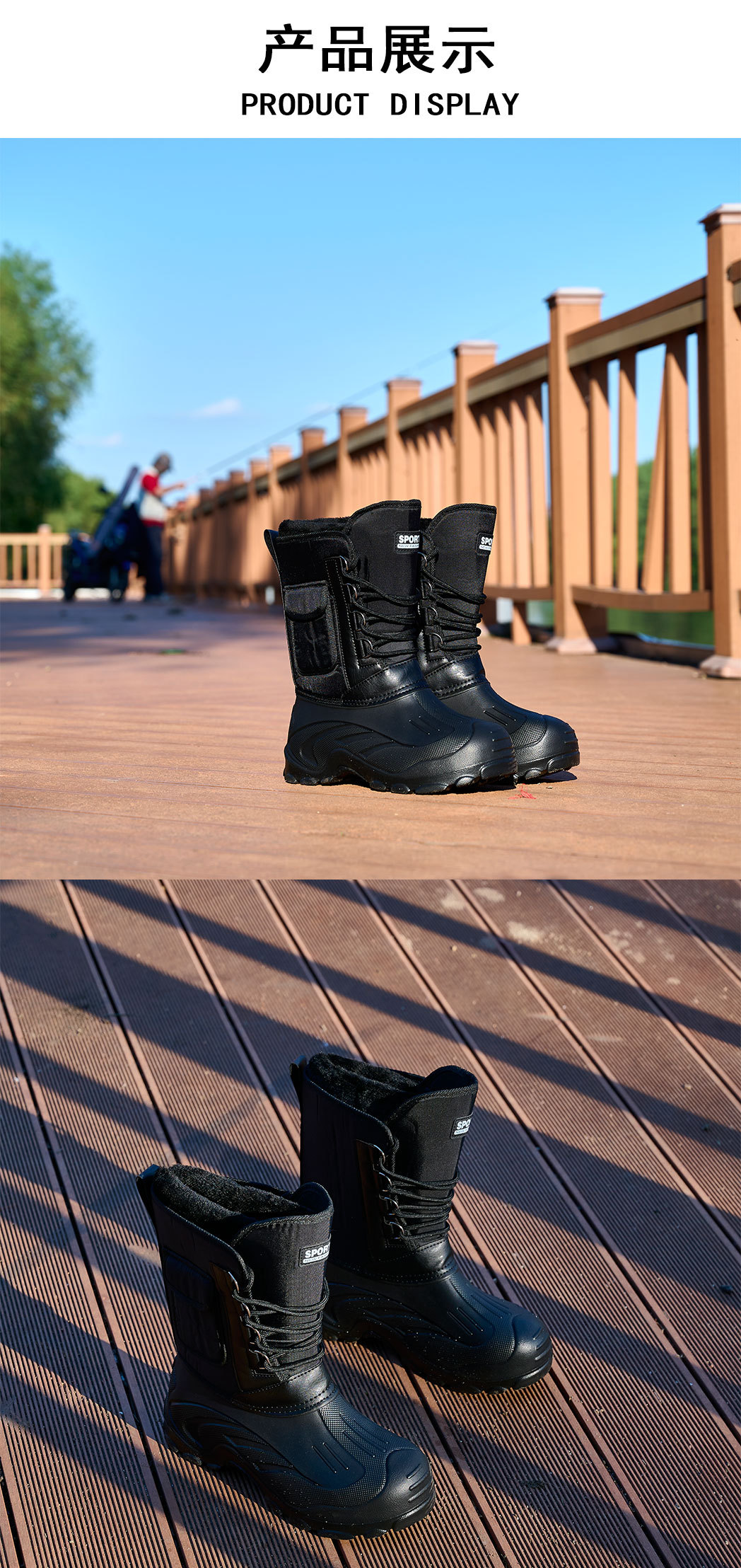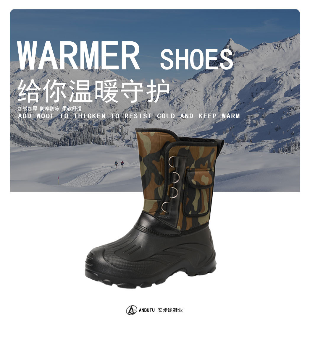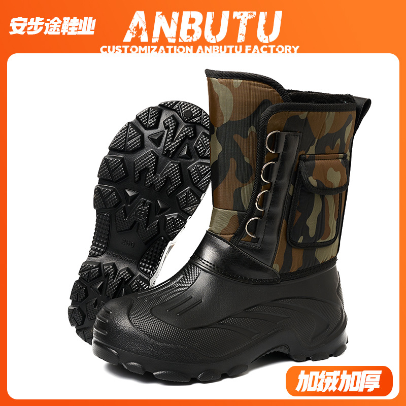 外贸新款冬季加绒加厚棉鞋跨境雪地靴男防水加厚保暖防寒钓鱼鞋