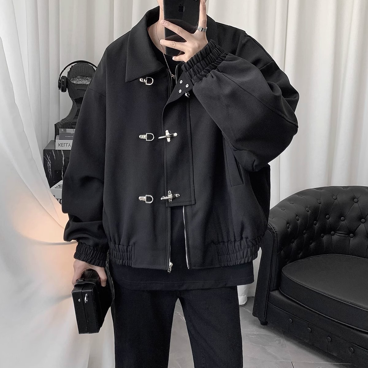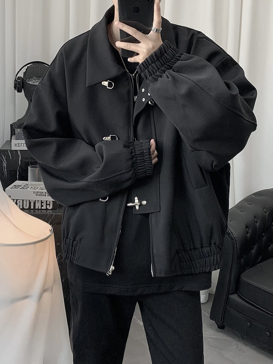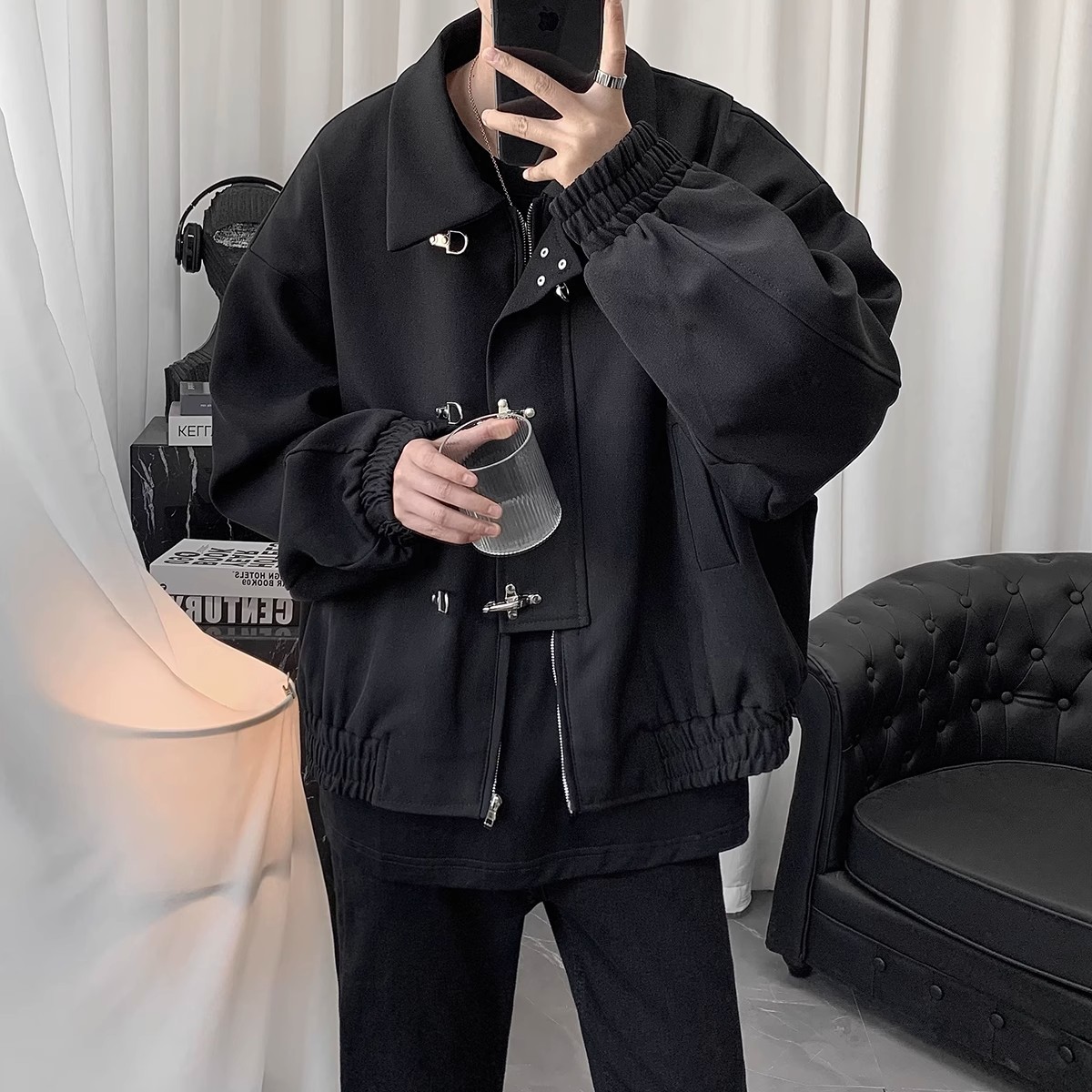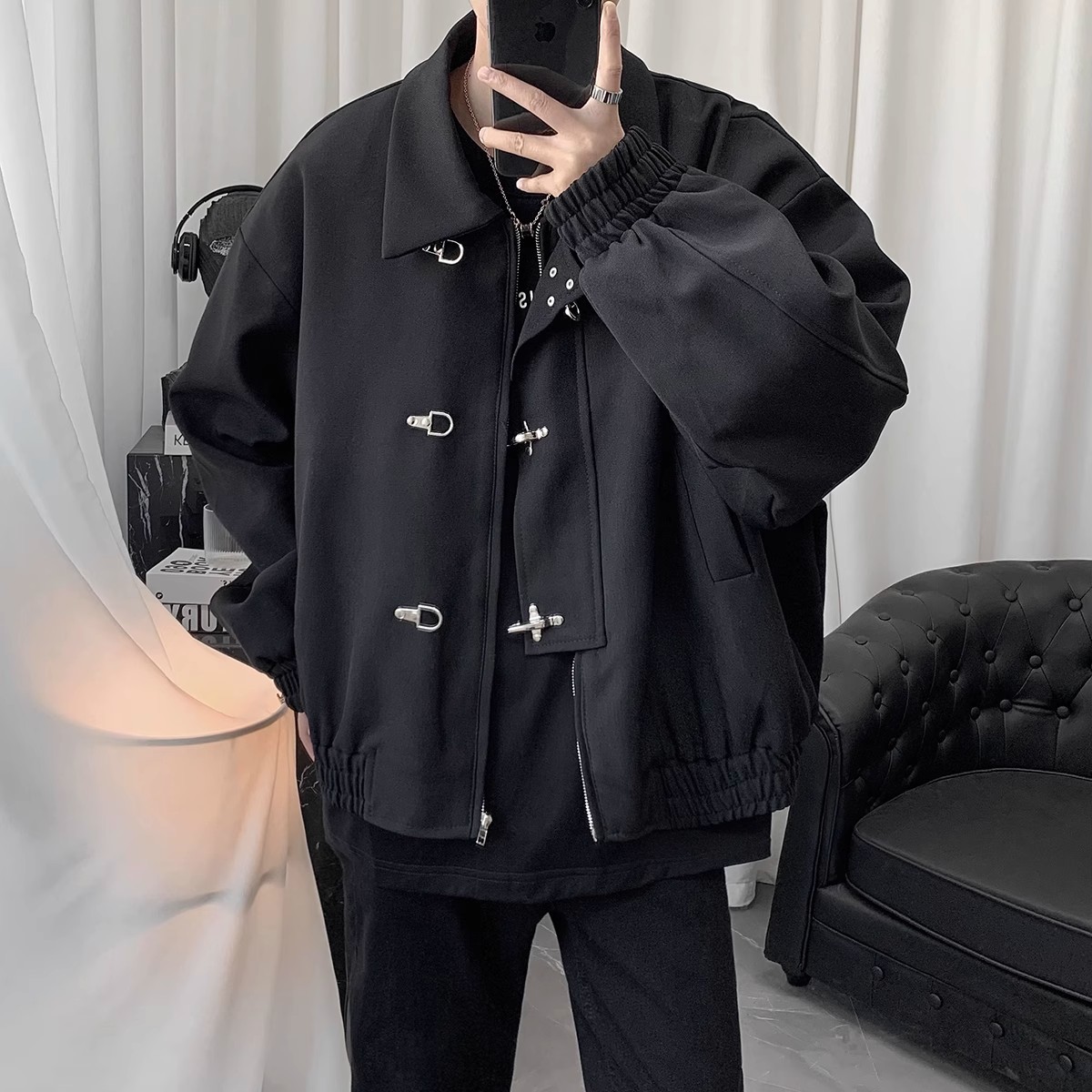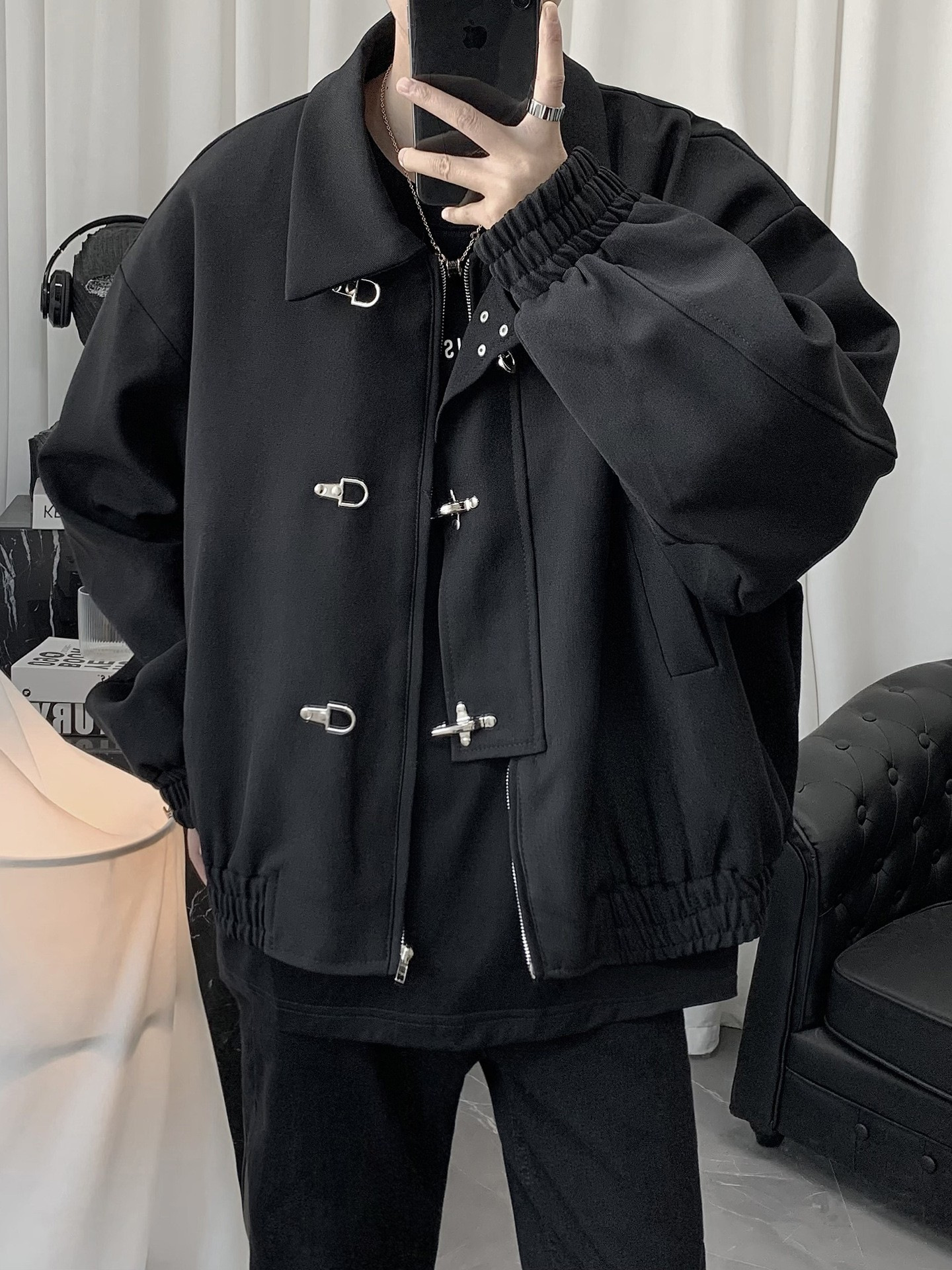 한국식 고급 다크 스타일 틈새 대비 스티칭 재킷 남성 틈새 금속 버클 디자인 ruffian 잘 생긴 짧은 재킷