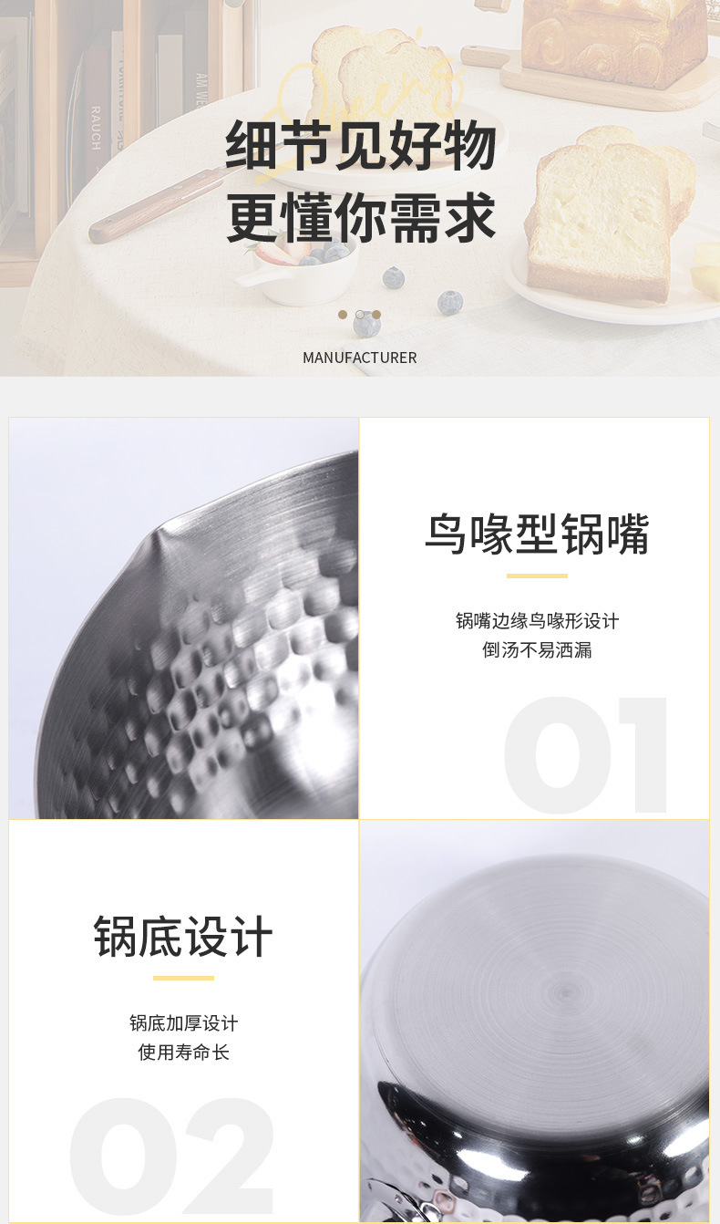 일본식 스노우 플랫 냄비 430 알루미늄 우유 냄비 이유식 보충 냄비 코팅되지 않은 가정용 붙지 않는 국수 요리 작은 냄비 수프 냄비