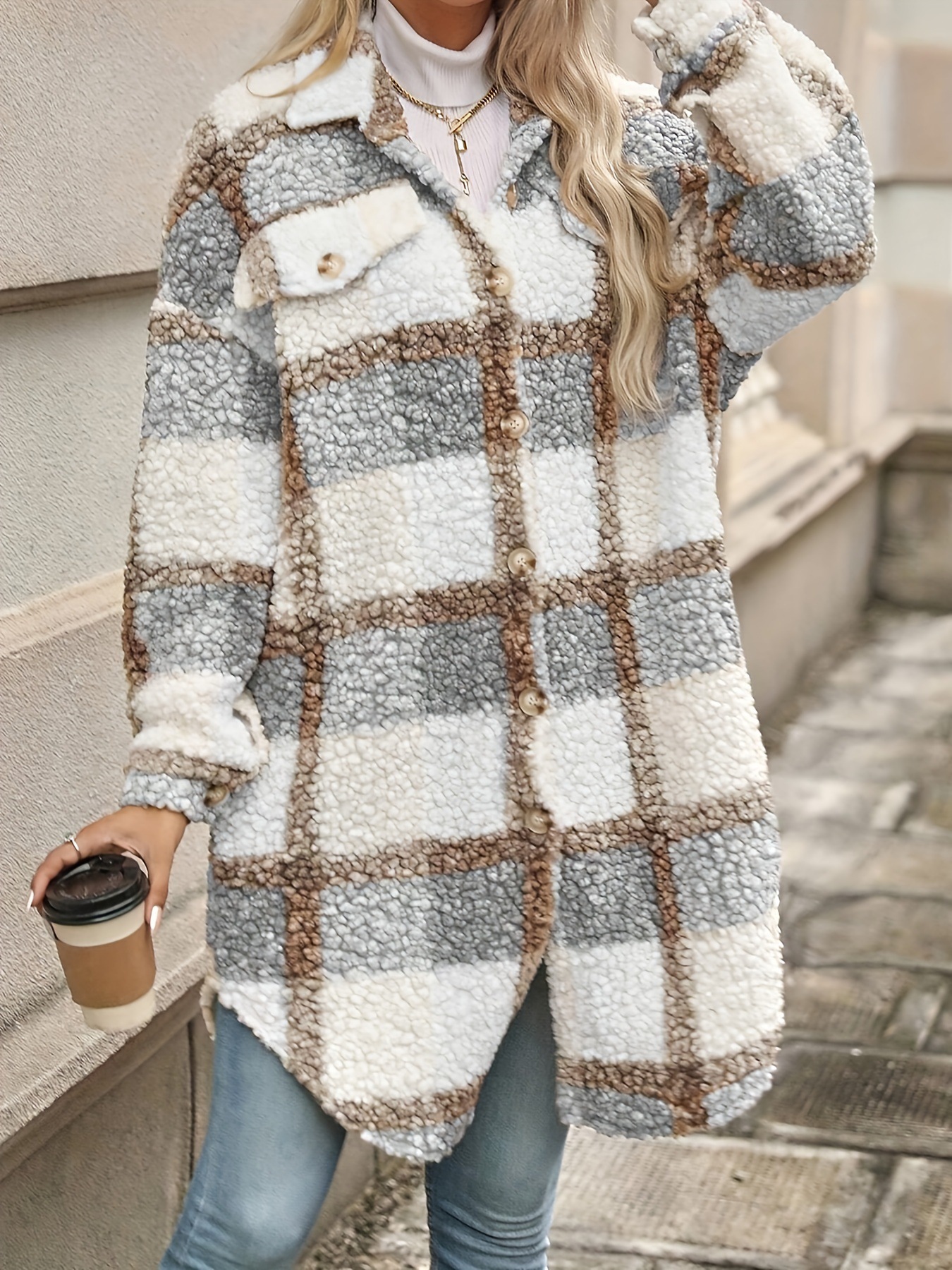 2025년 신상 두꺼운 코트 아마존 가을 겨울 신상 여성복 유럽풍 카라 체크 무늬 모직 코트
