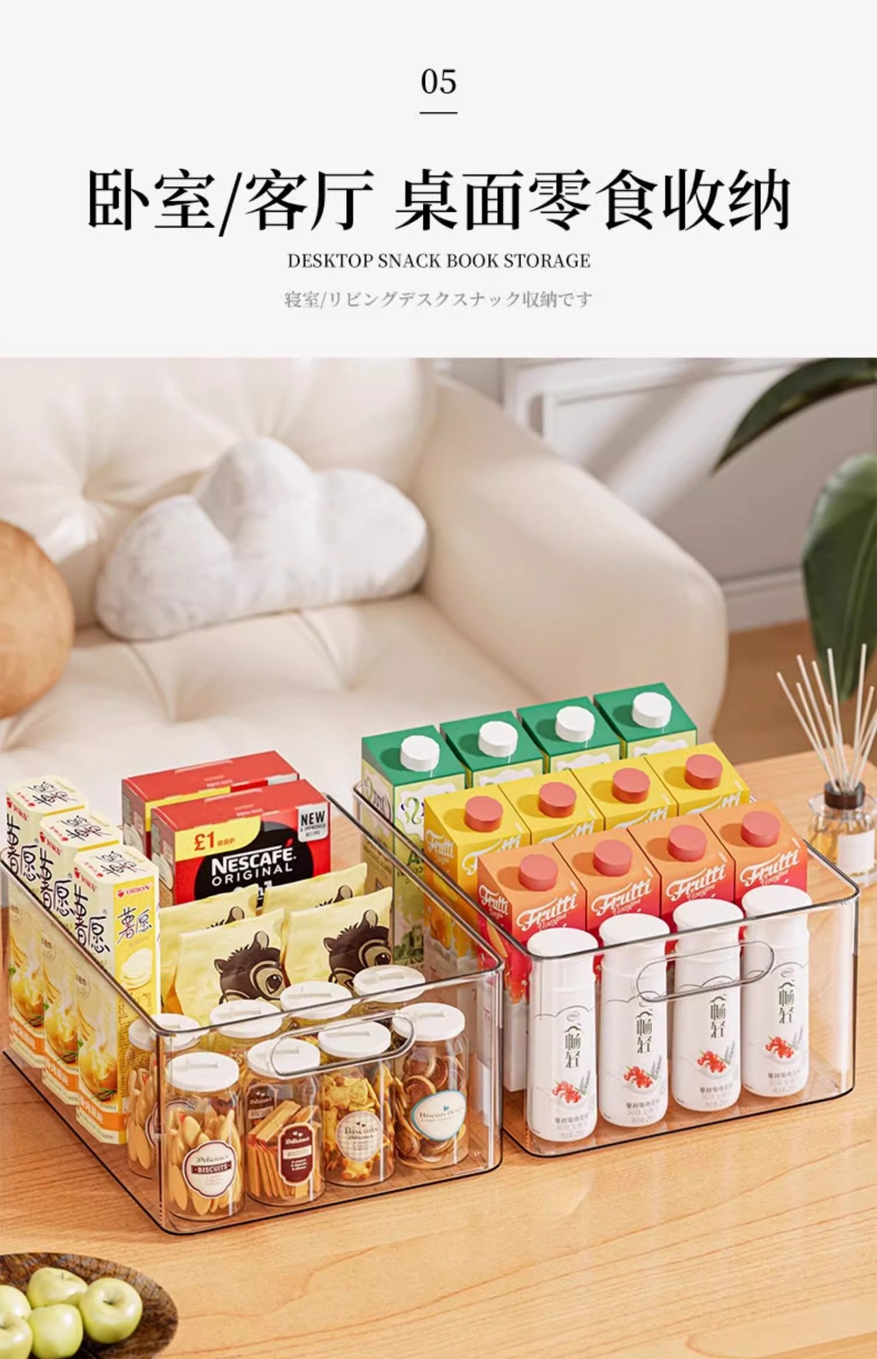 스낵 잡화 저장 상자 데스크탑 장난감 저장 상자 가정용 투명한 플라스틱 바구니 저장 상자 주방 캐비닛 바구니