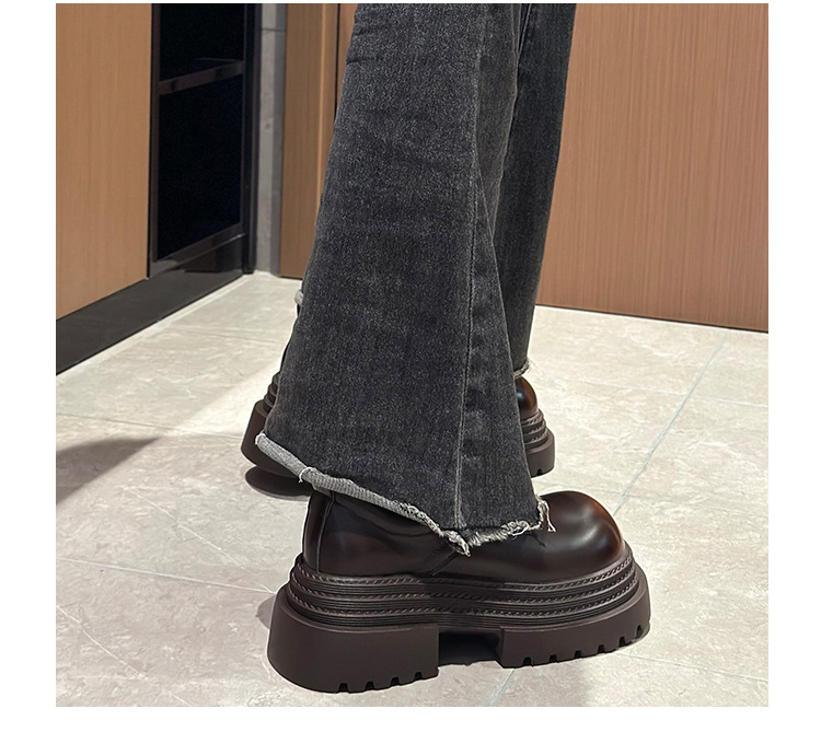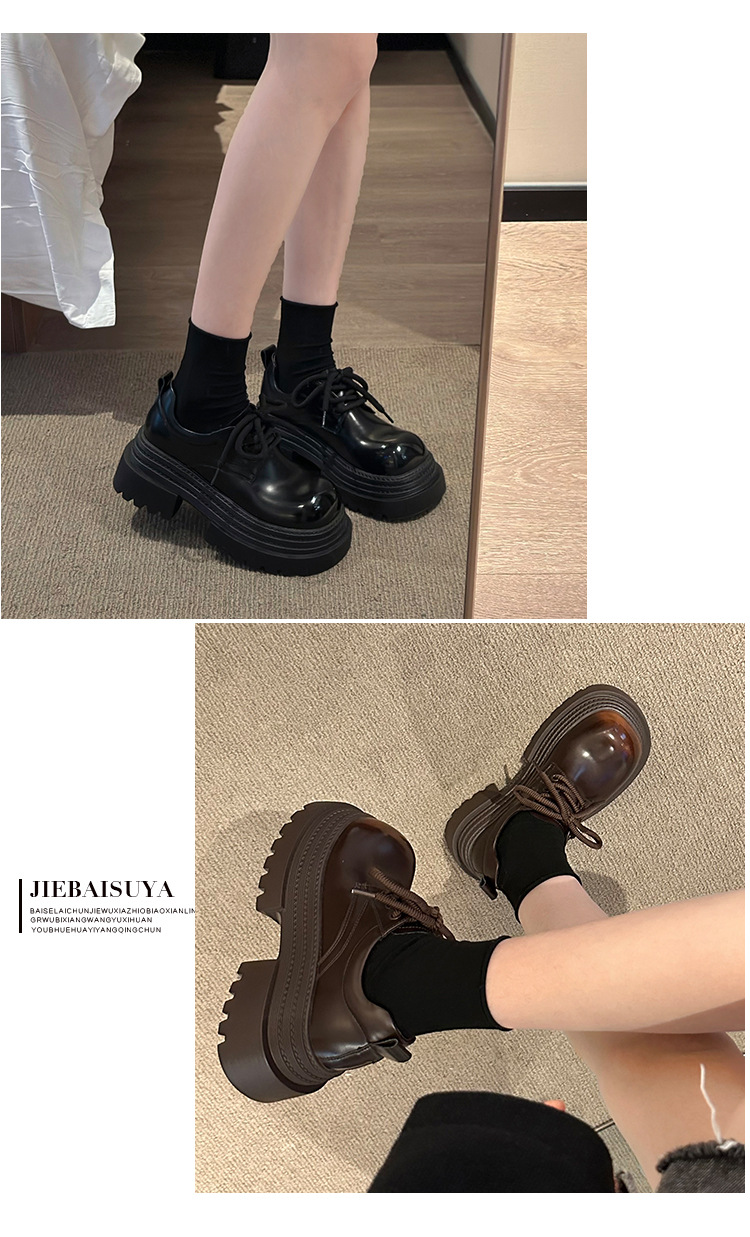 라운드 토 레이스 업 플랫폼 로퍼 여성 2024 가을 및 겨울 새로운 영국 스타일의 작은 높이 증가 작은 가죽 신발