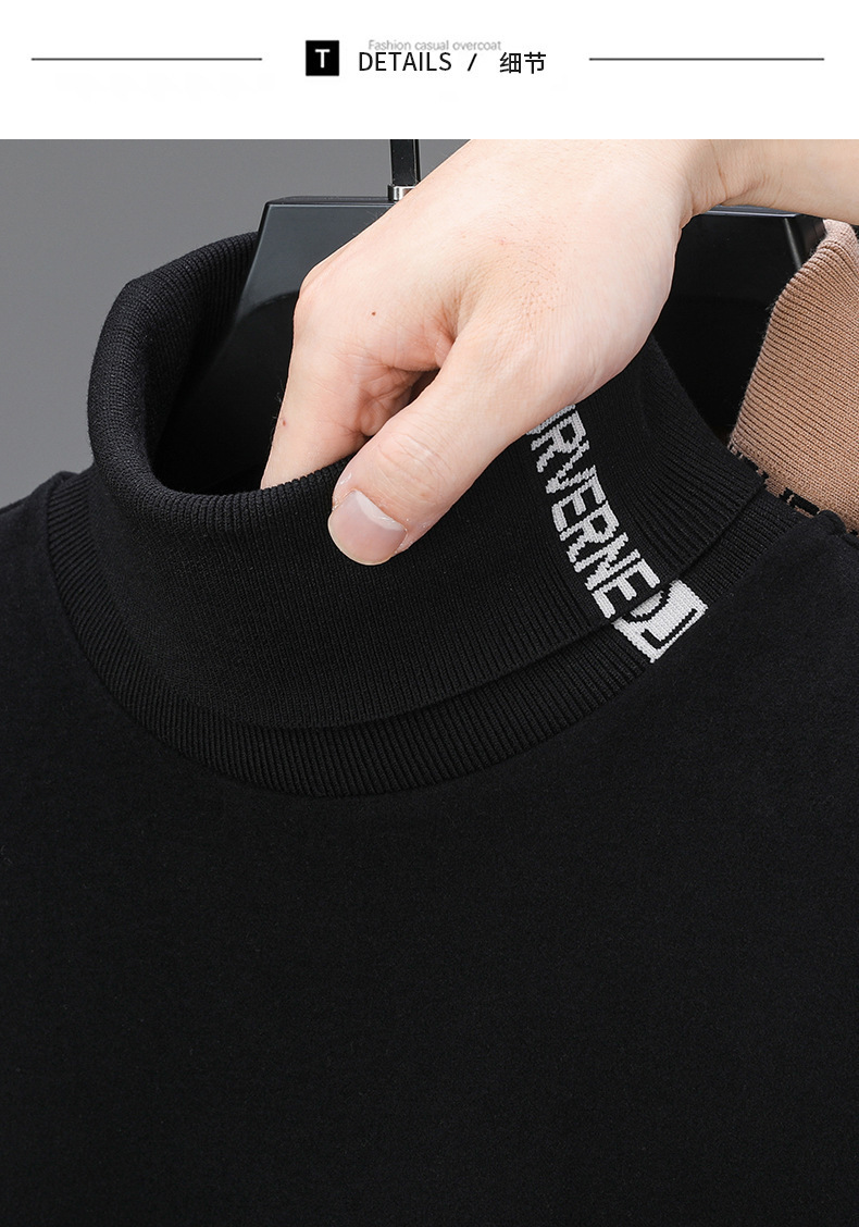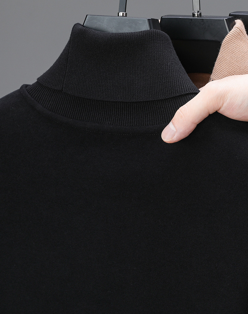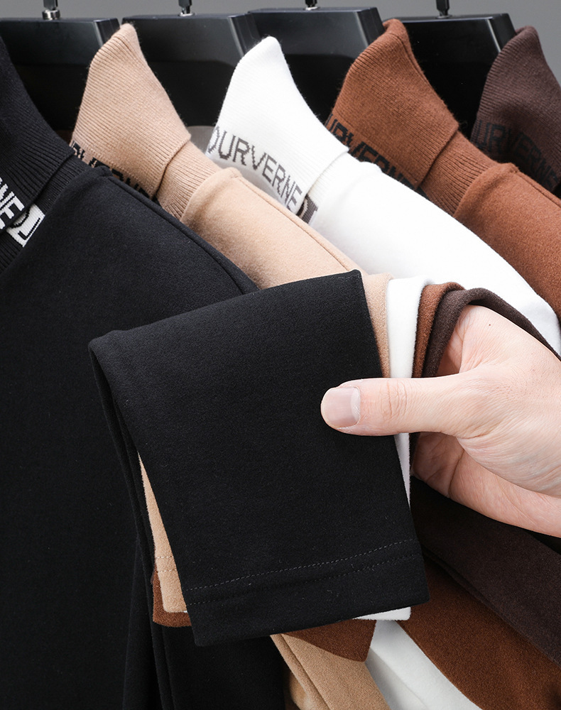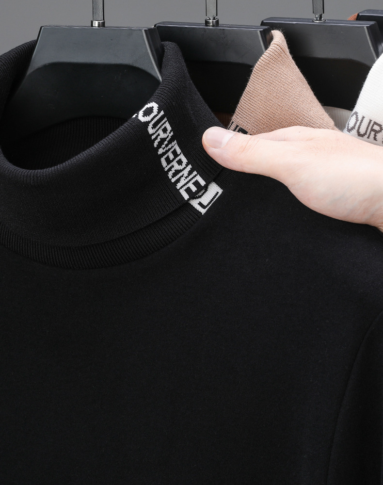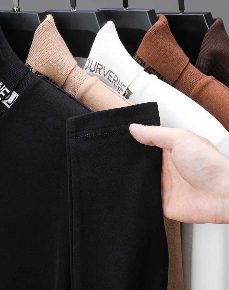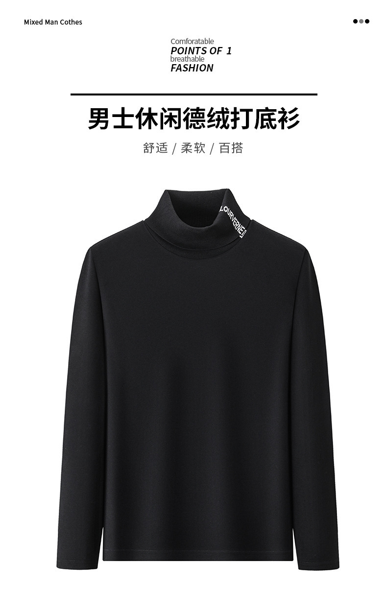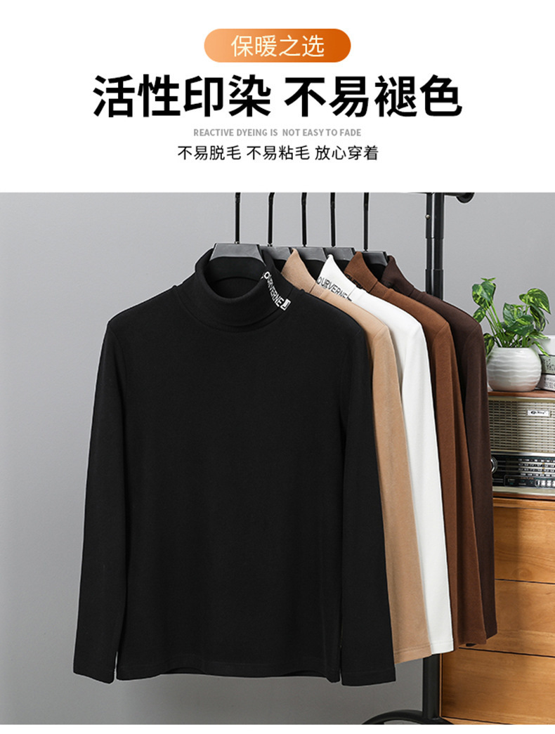 긴팔 티셔츠 2024 하이 칼라 양면 벨벳베이스 셔츠 남성용 두꺼운 벨벳 따뜻한 단색 코튼 탑 한국 겨울