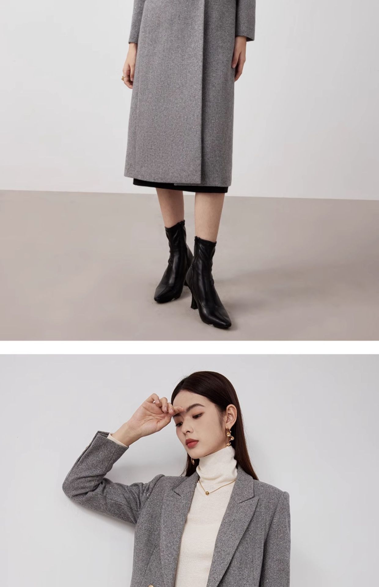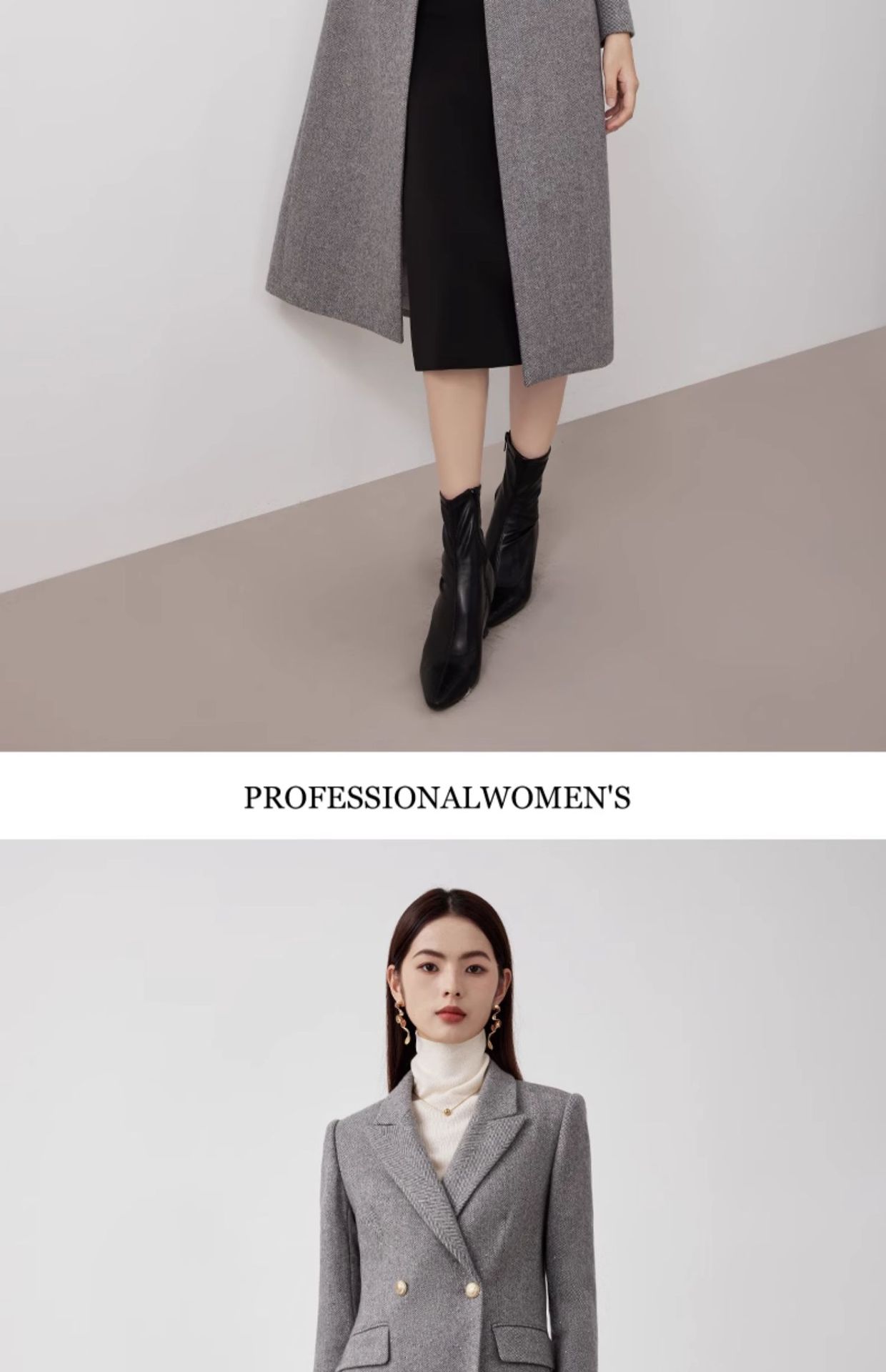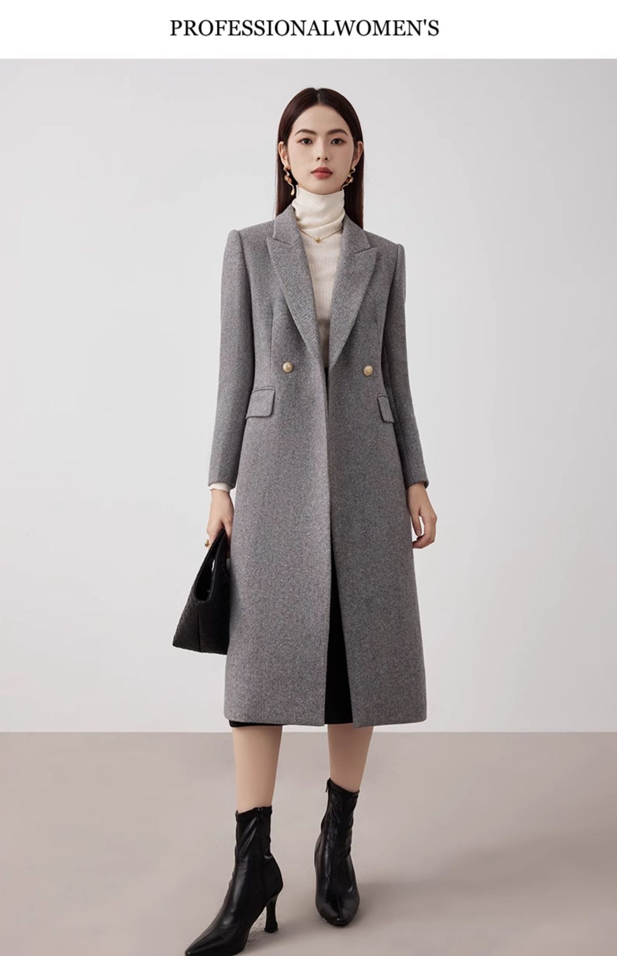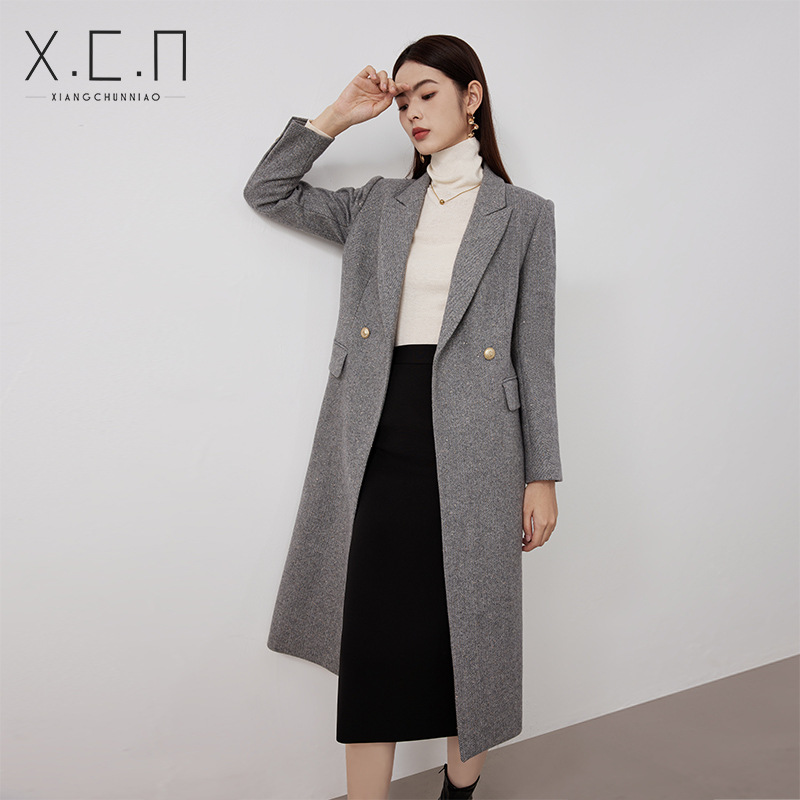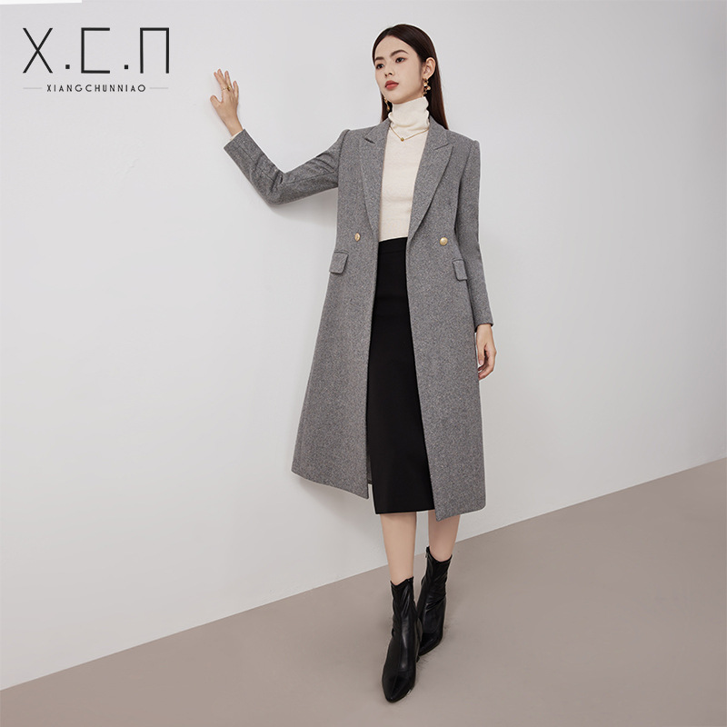 봄 새 고급 감각 전문 세트 재킷 가을 및 겨울 중간 길이 양모 코트 우아한 통근 세트 원피스