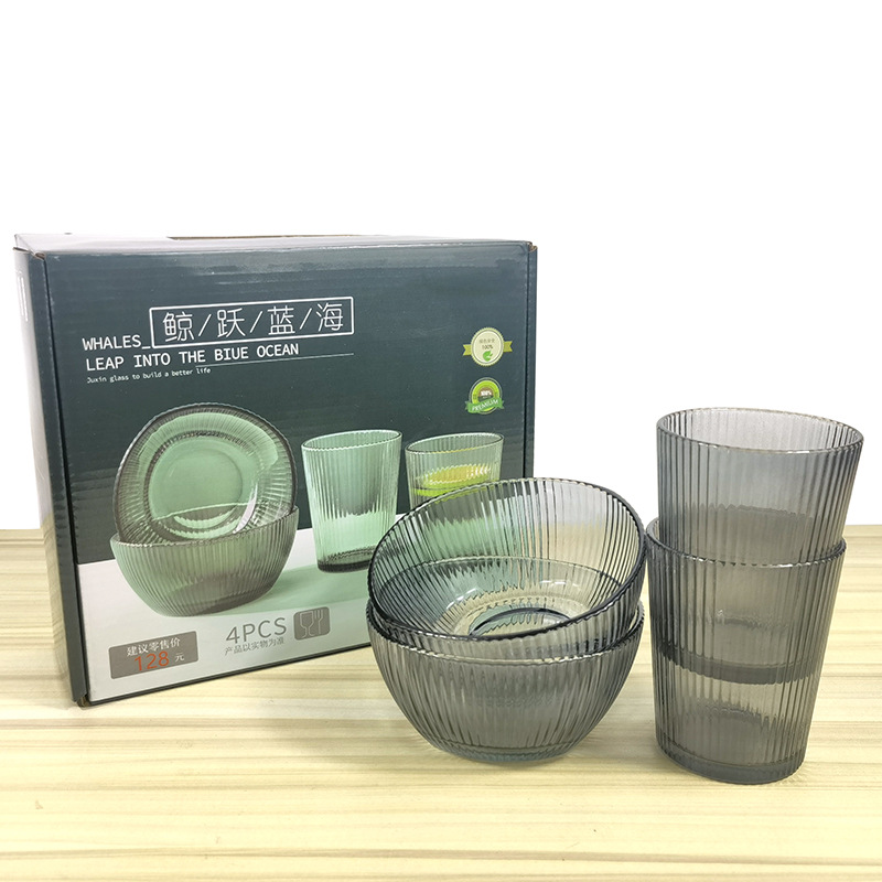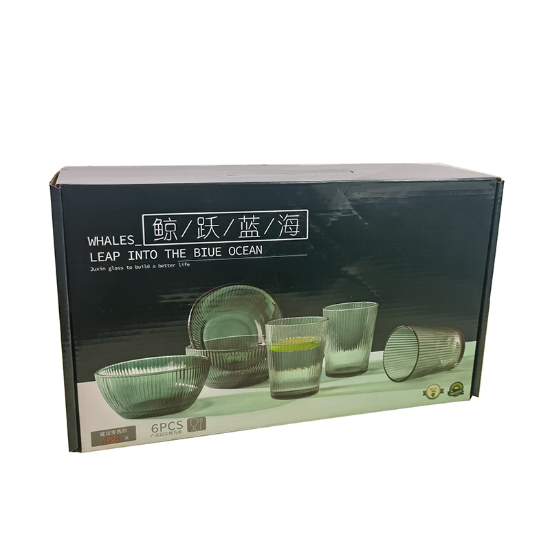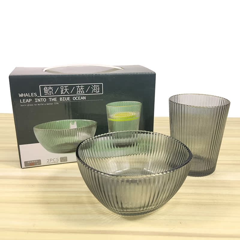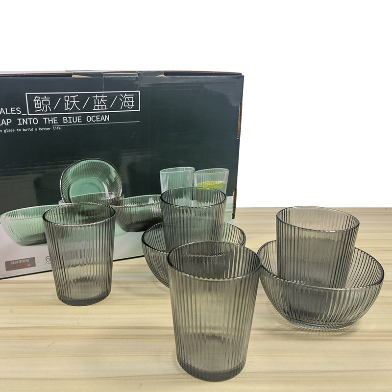 产品名称:鲸跃蓝海碗杯套装 产品材质:钠钙玻璃