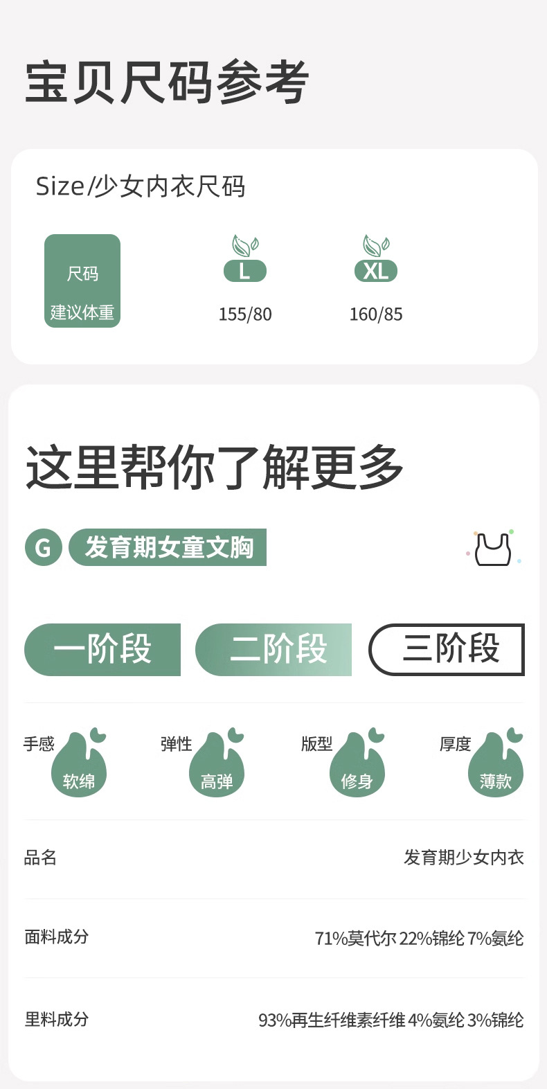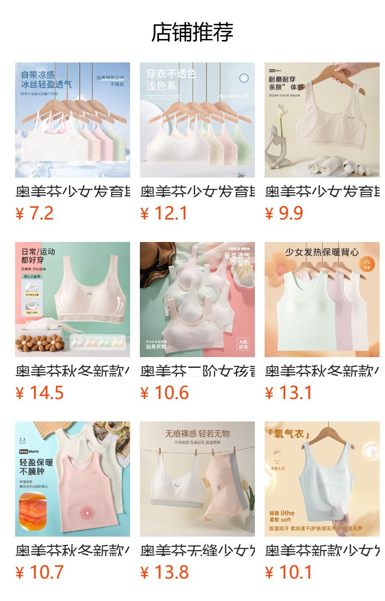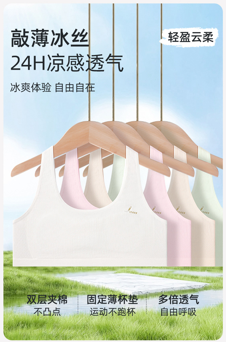 오 메펜 여아 2 단계 개발 여아 브라 스틸 링 모달 초등학생을위한 얇은 속옷 조끼 없음