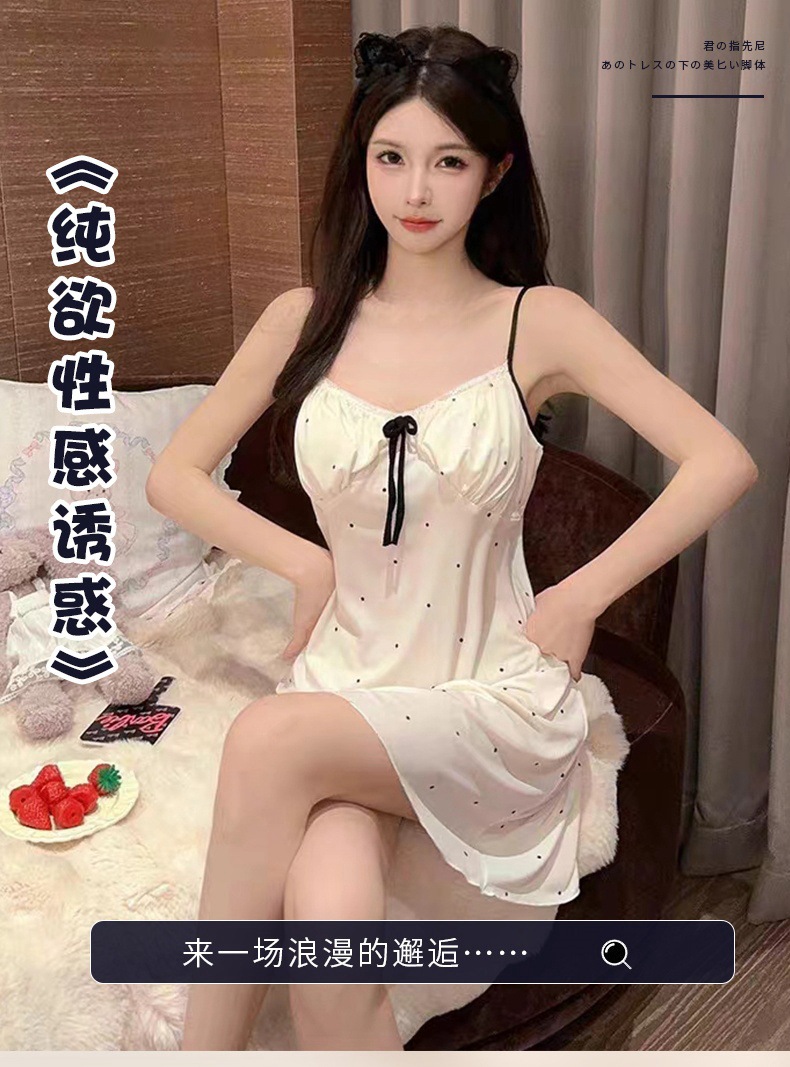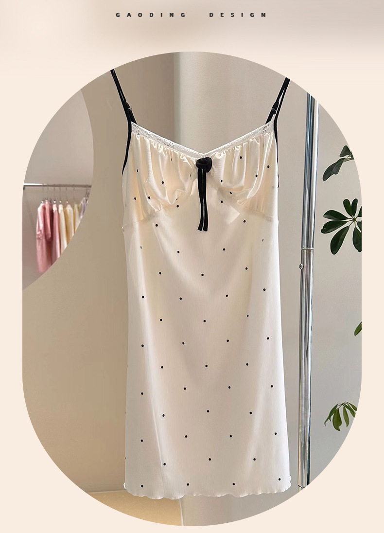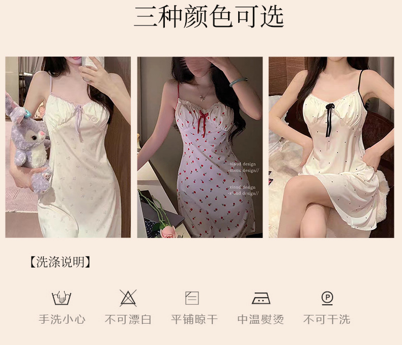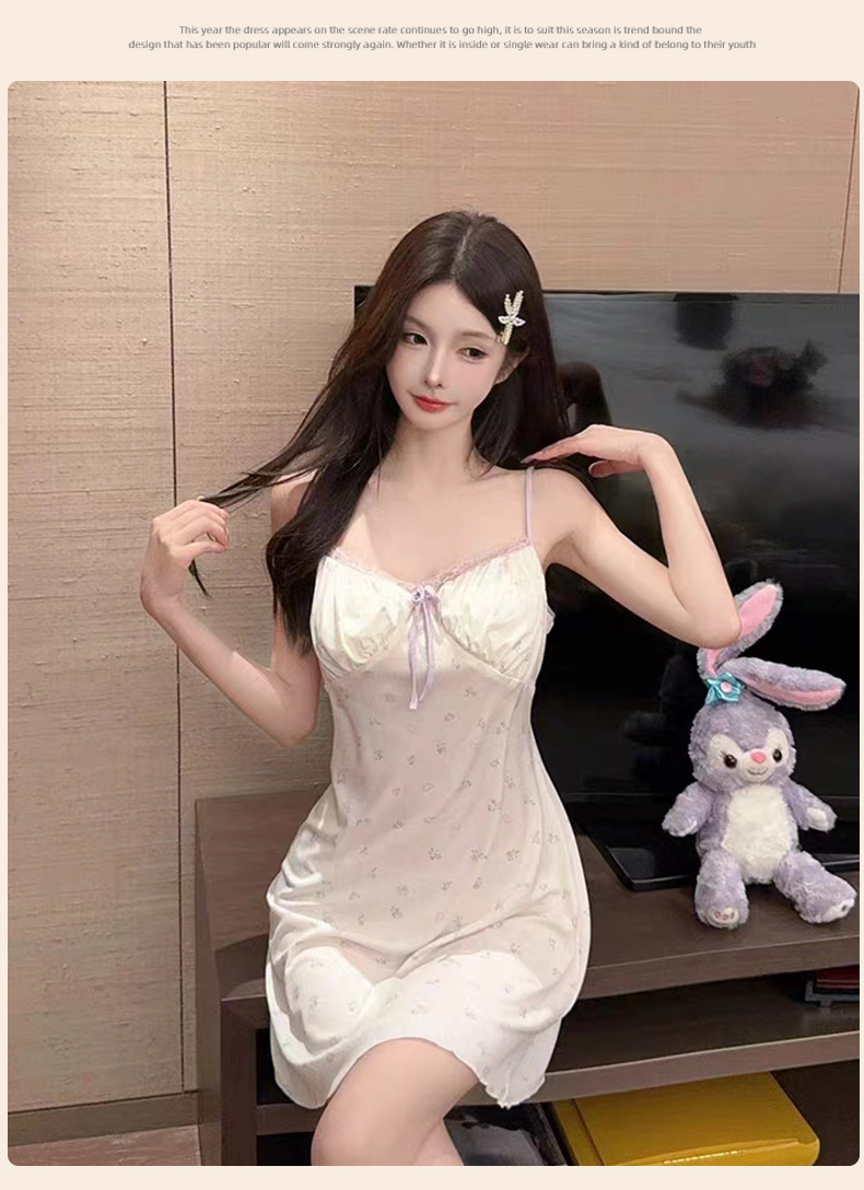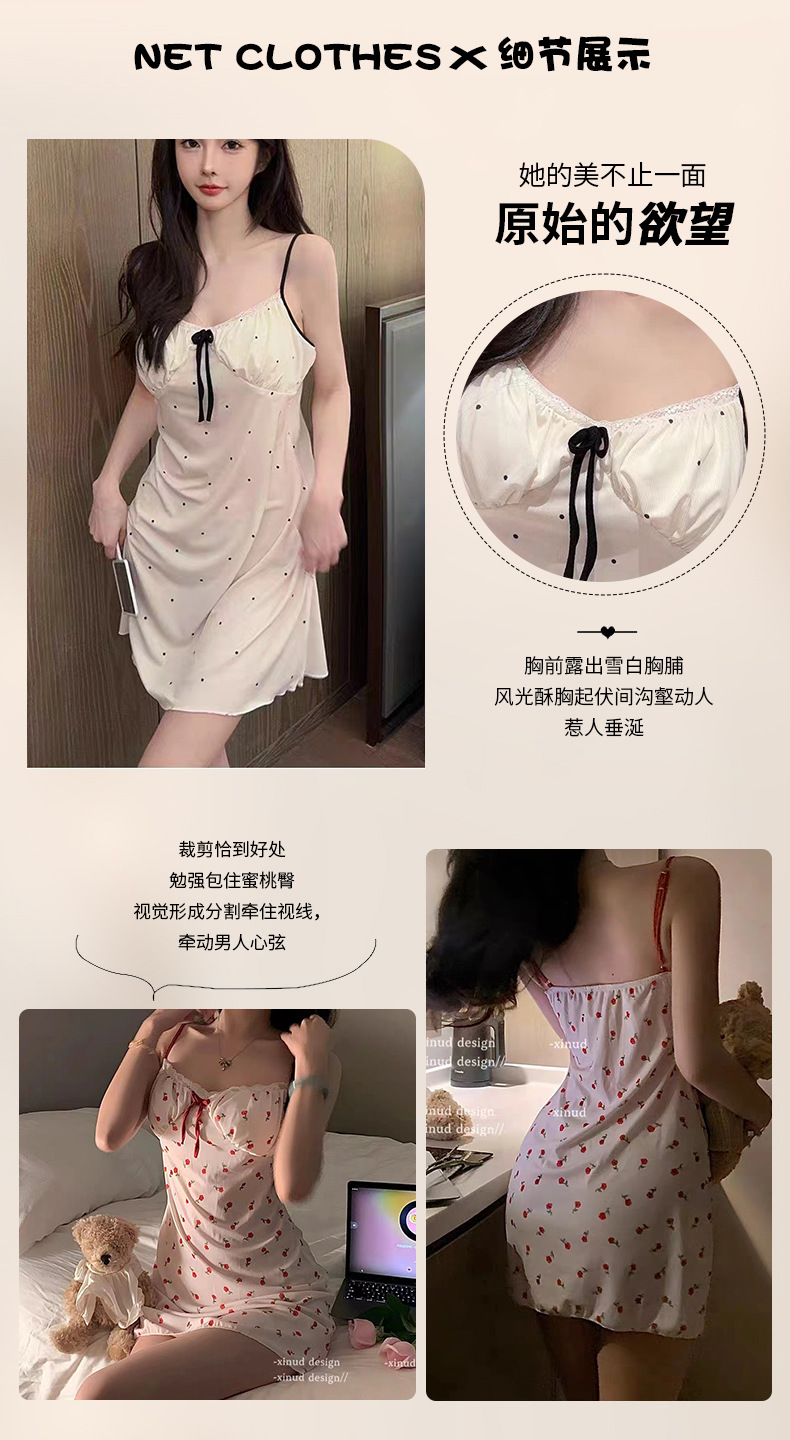 꽃무늬 체리 프린트 섹시 란제리, 청순한 꽃무늬 캐미솔, 요정풍 상큼한 홈웨어 나이트가운 A363