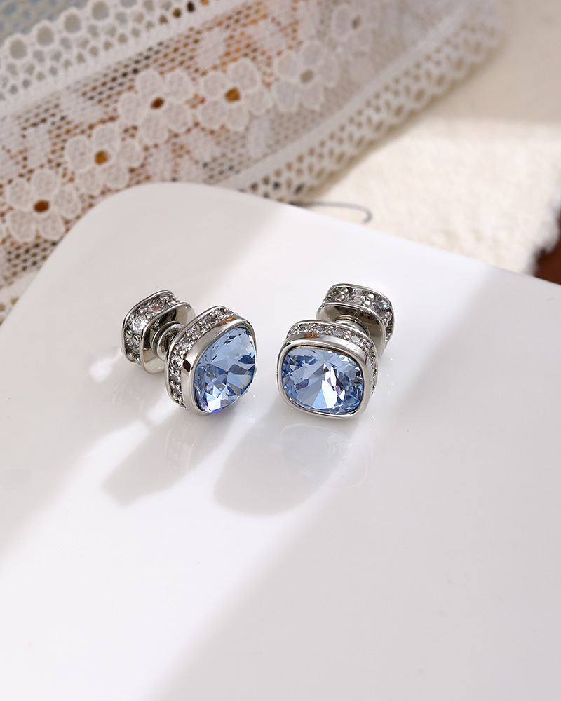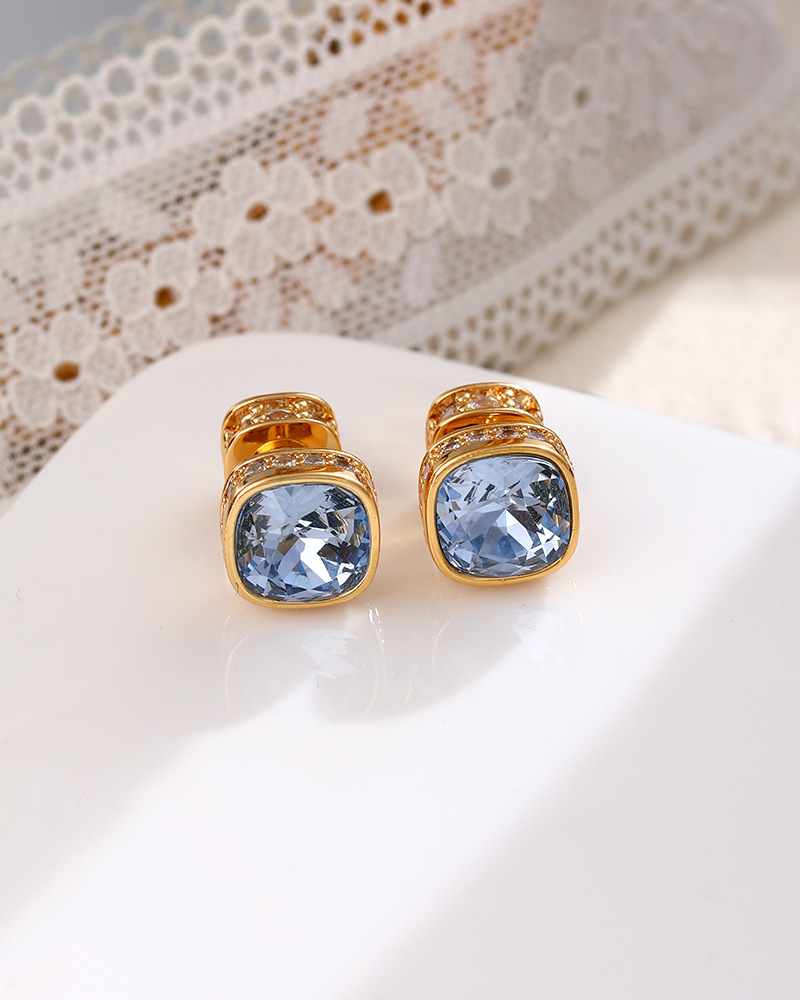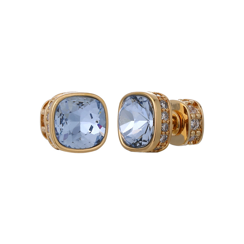 라이트블루 18K 골드 스퀘어 크리스탈 스터드 귀걸이 [925실버바늘]