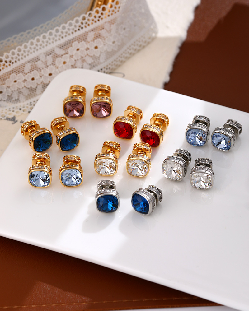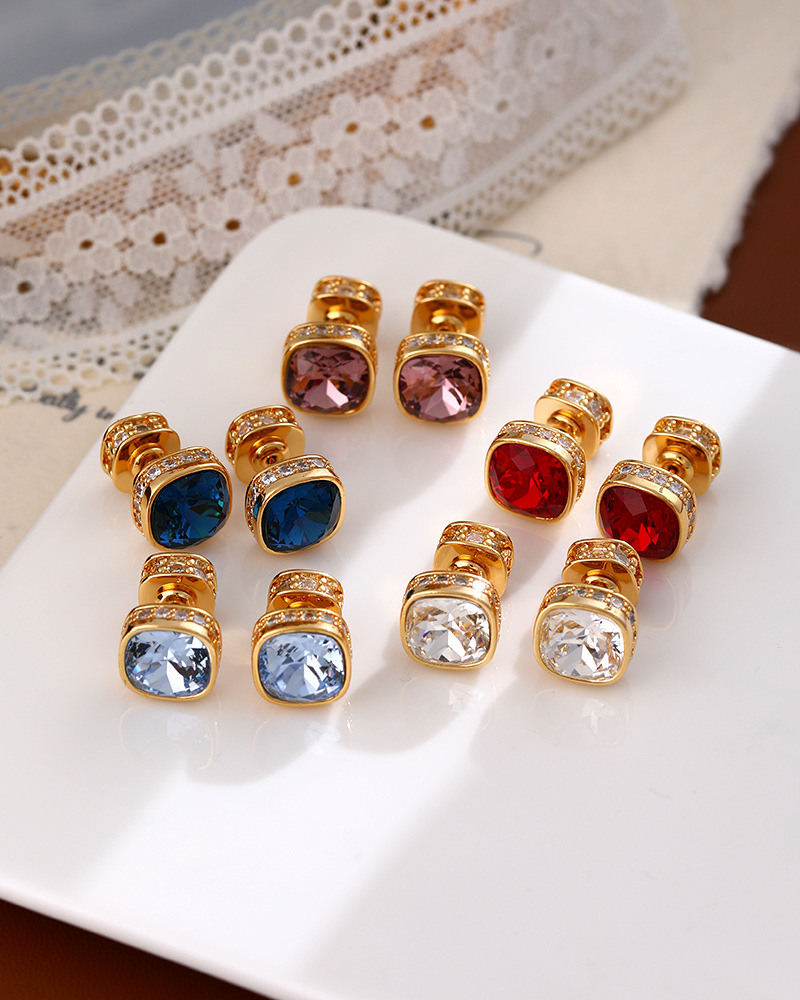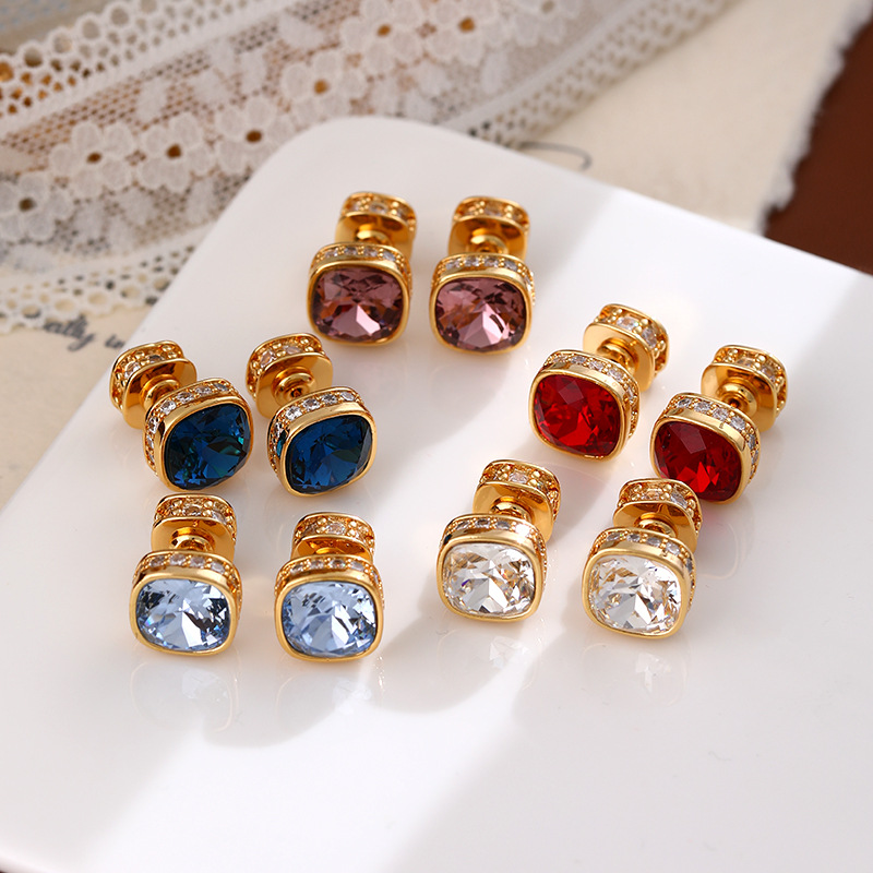 레드 18K 골드 스퀘어 크리스탈 스터드 귀걸이 [925 실버바늘]
