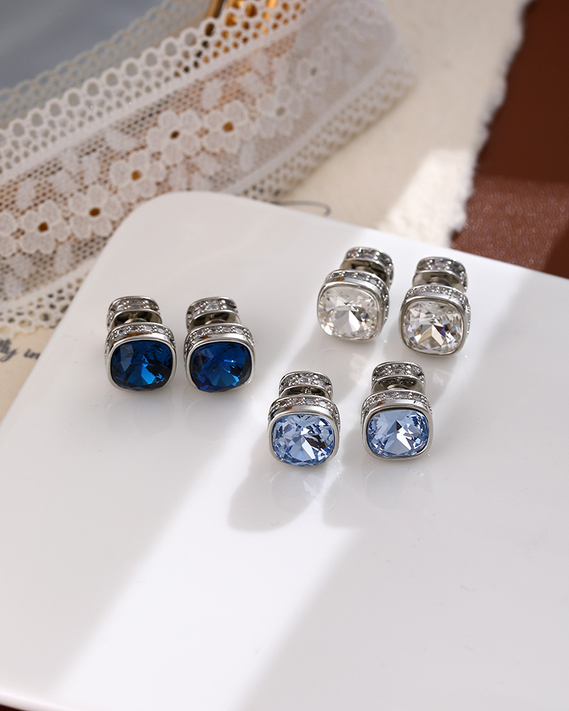 다크블루 화이트 K스퀘어 크리스탈 스터드 귀걸이 [925실버바늘]