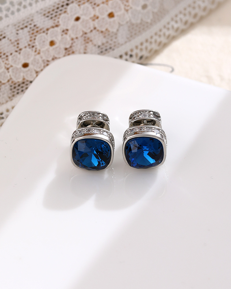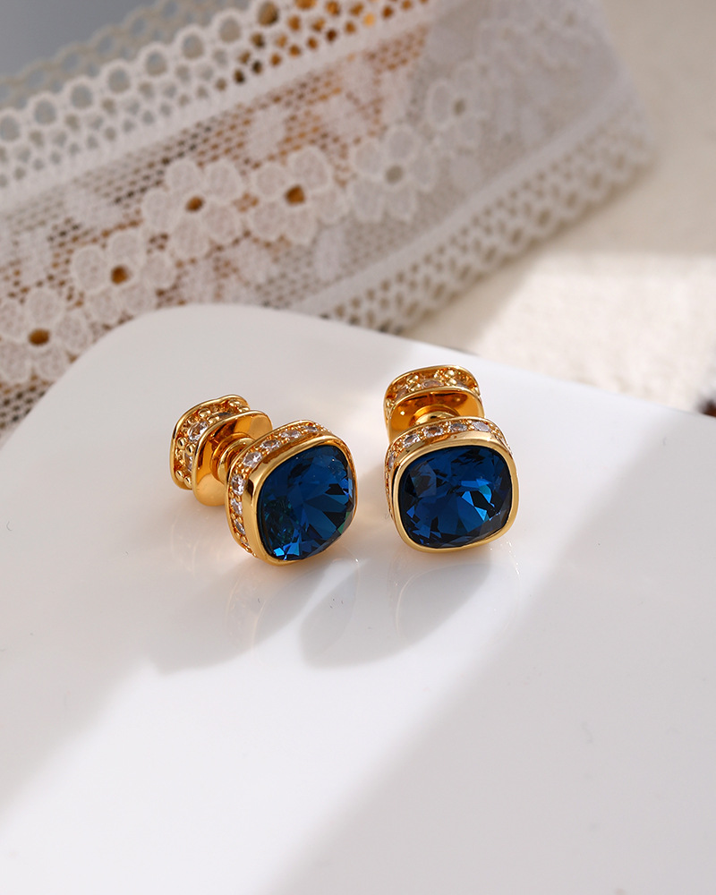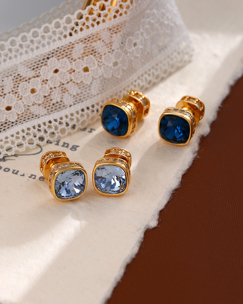 다크블루 18K 골드 스퀘어 크리스탈 스터드 귀걸이 [925실버바늘]