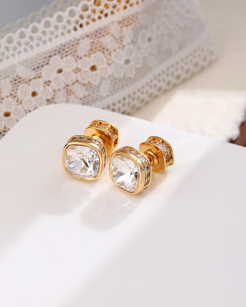 투명 화이트 18K 골드 스퀘어 크리스탈 스터드 귀걸이 [925 실버바늘]