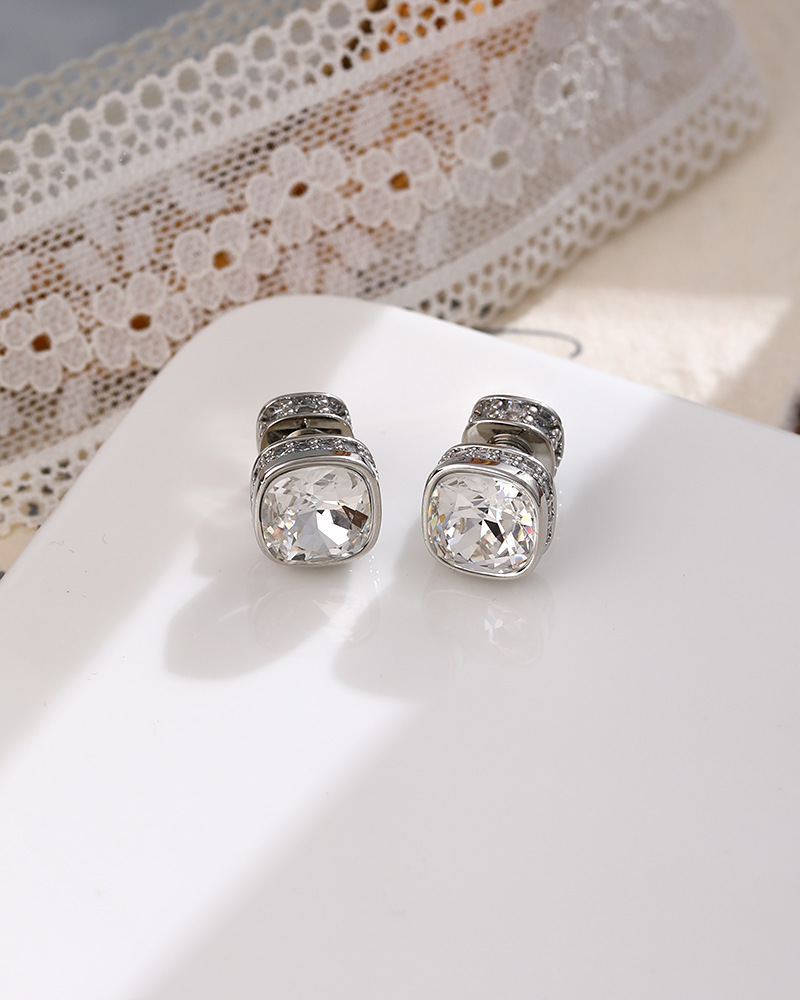 투명한 화이트 K 스퀘어 크리스탈 스터드 귀걸이 [925실버바늘]