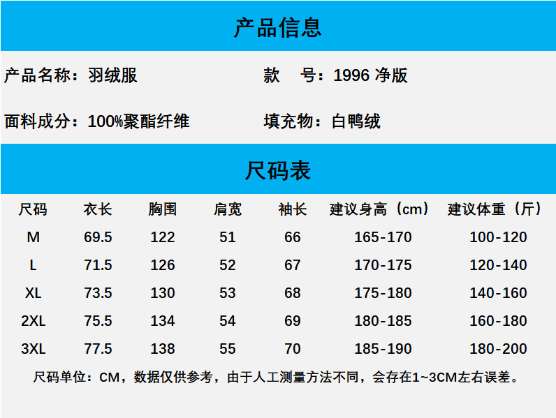 Net Edition 1996 North Face Down Jacket Men's White Duck Down Winter Thickened Jacket Beijia 자수 700 커플 클래식