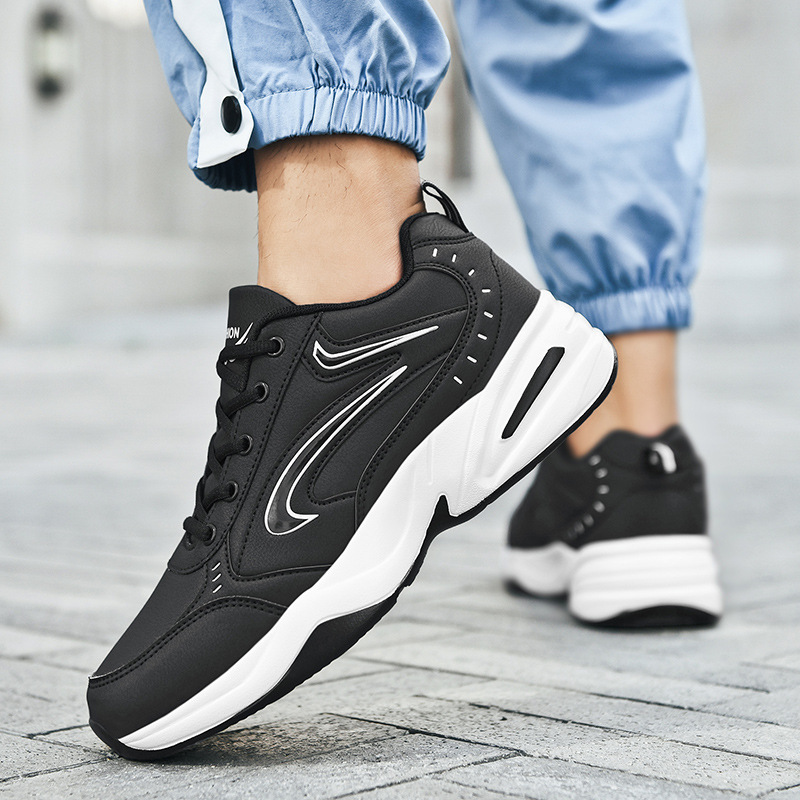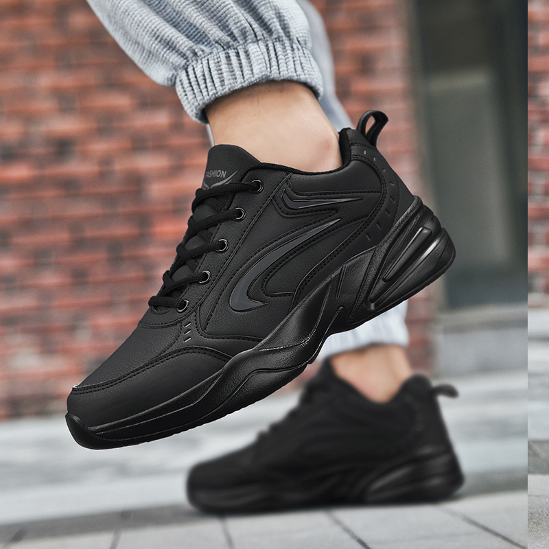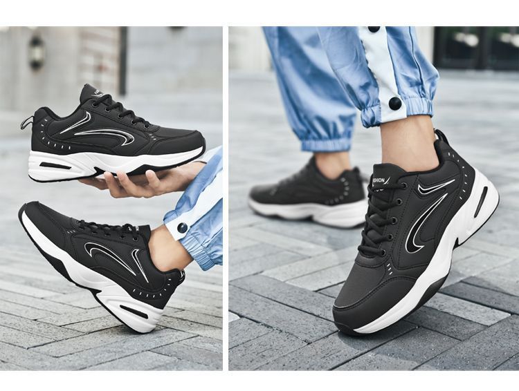 검은 쇠고기 단독 남성 신발 가죽 방수 캐주얼 신발 가을과 겨울 운동화 중년 아빠 신발 플러스 사이즈 남성용 코튼 신발