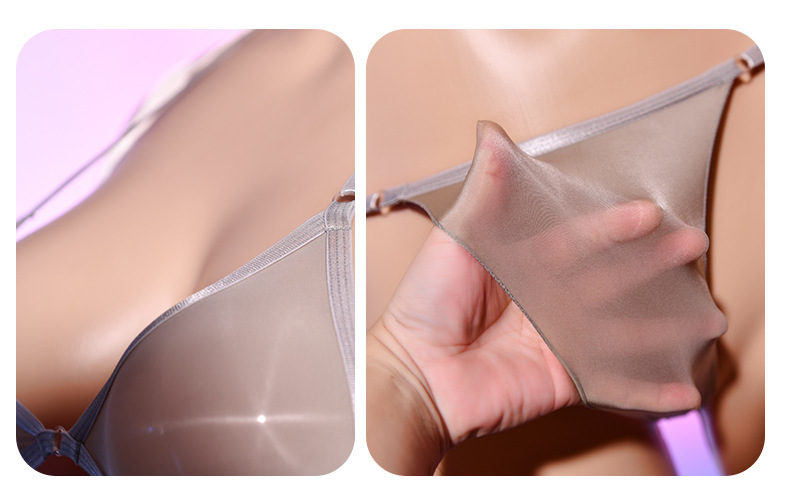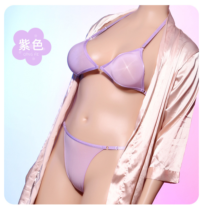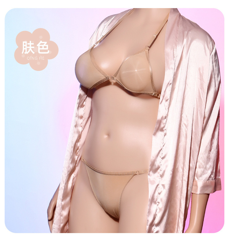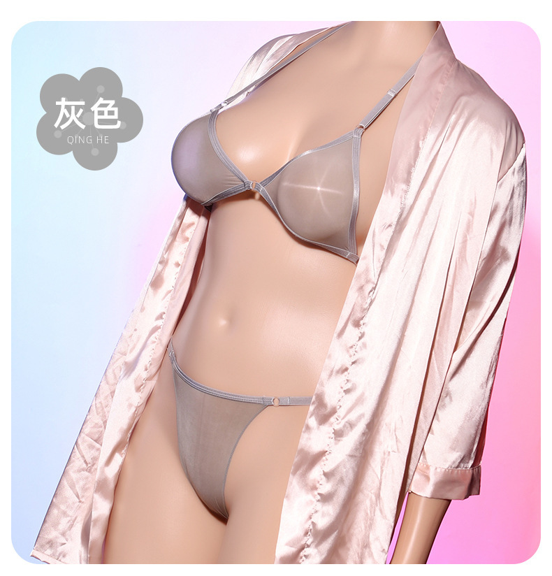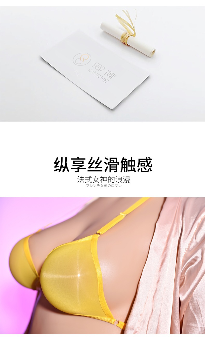 Qing He Oily Silk Stockings Bra 케이스 교수형 목 200 진 플러스 사이즈 완전 투명 란제리 여성 속옷 원피스