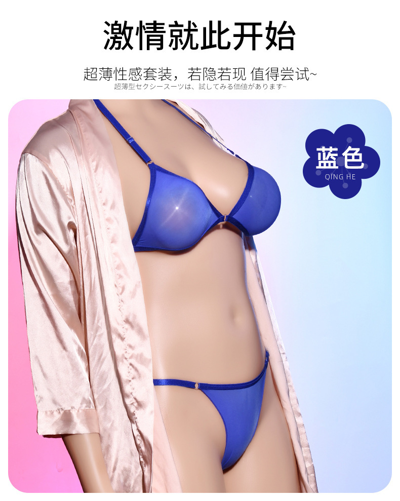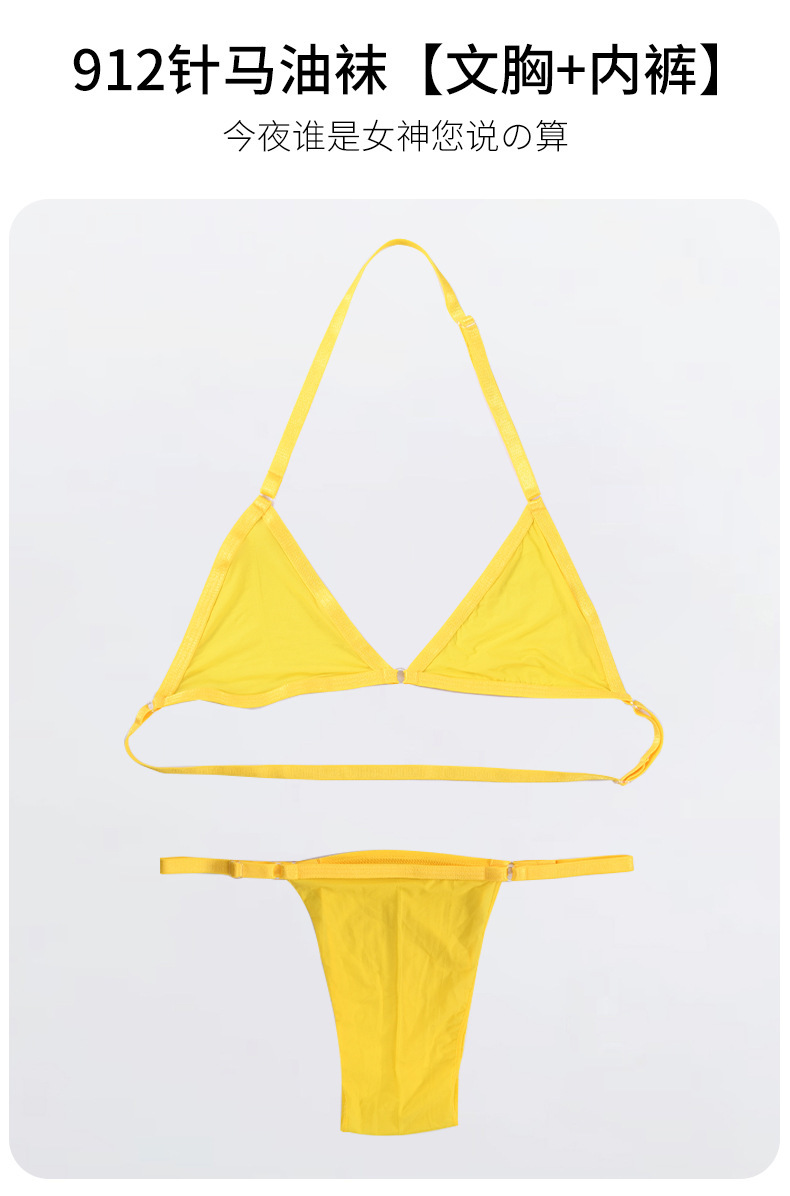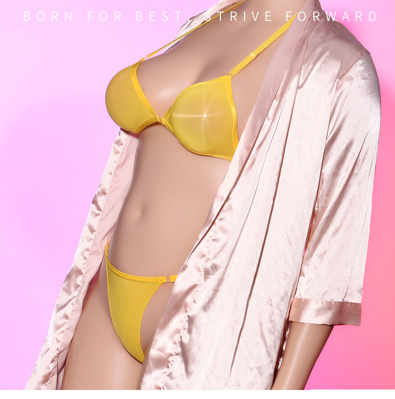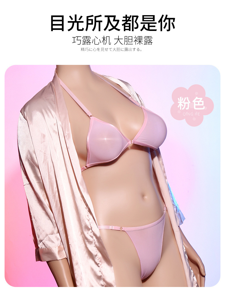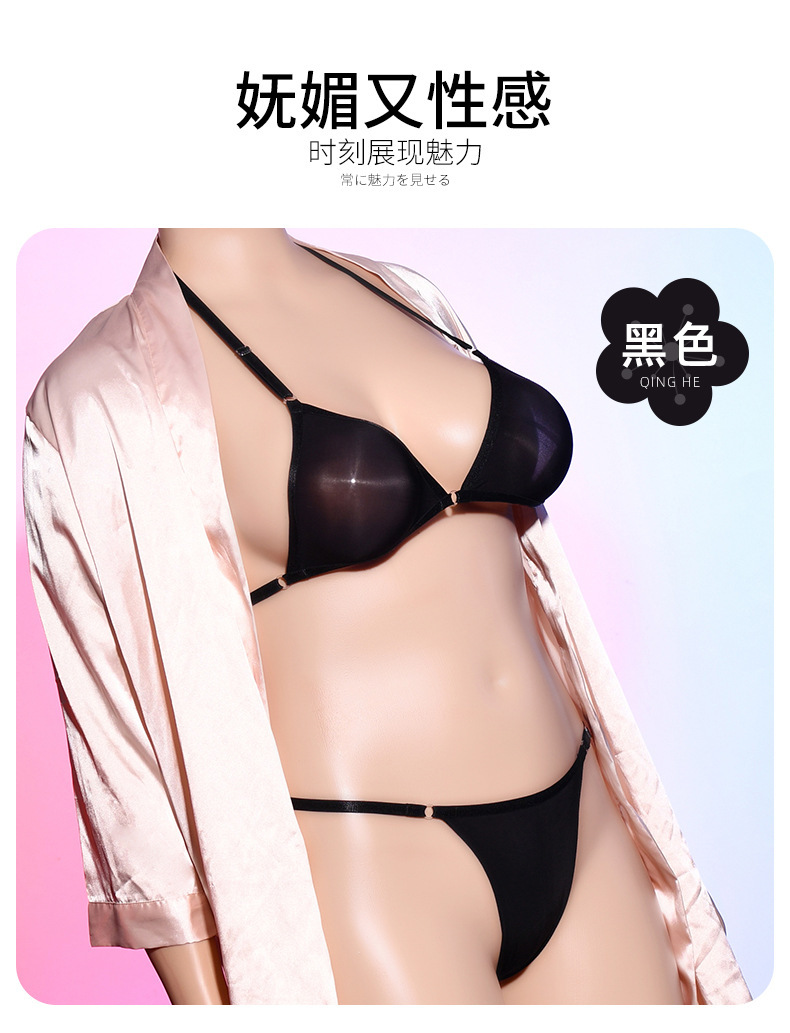 Qing He Oily Silk Stockings Bra 케이스 교수형 목 200 진 플러스 사이즈 완전 투명 란제리 여성 속옷 원피스