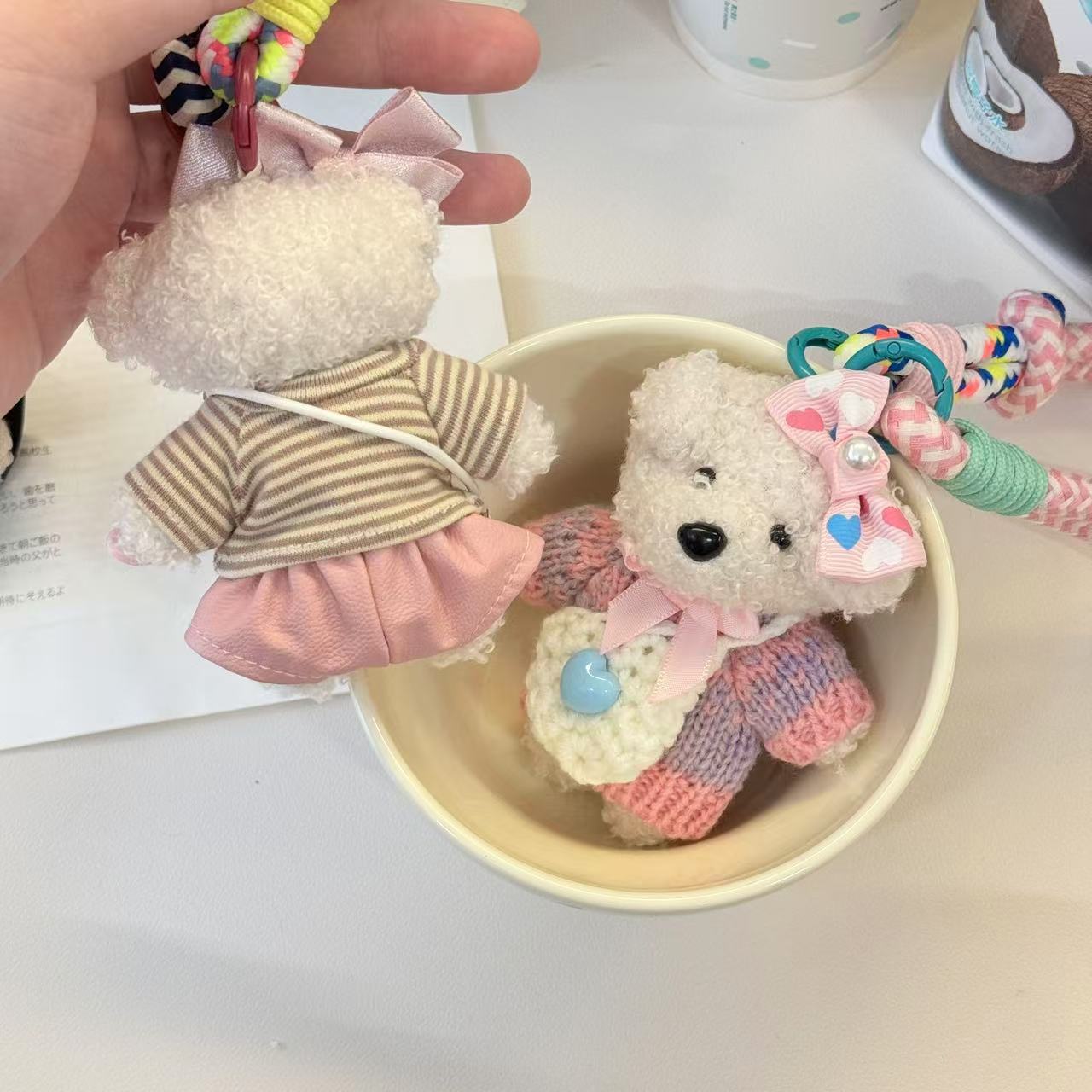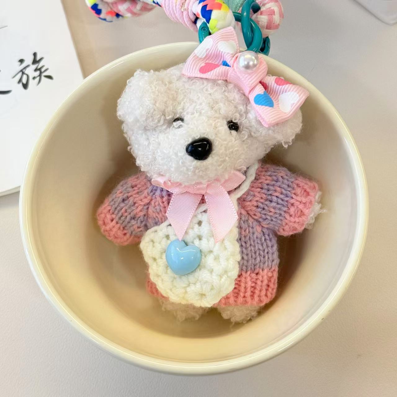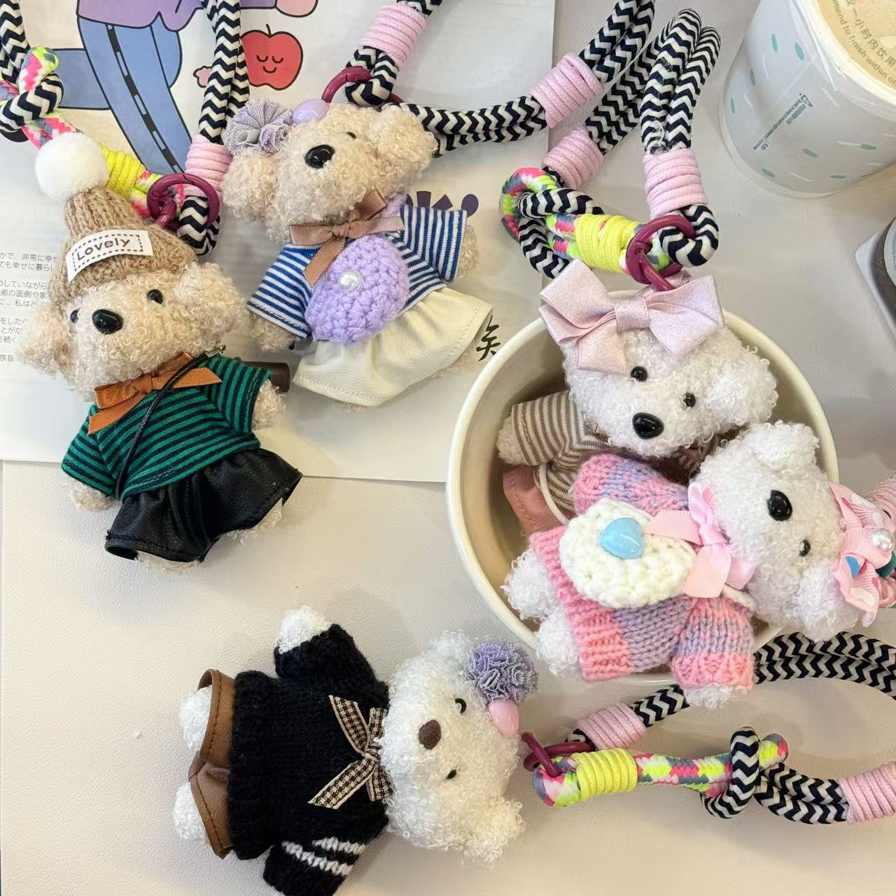 개 일본 및 한국 휴대 전화 케이스 펜던트 키 체인 가방 짠 끈이 달린 타이드 가방 끈이 달린 귀여운 드롭 방지 고유 로프