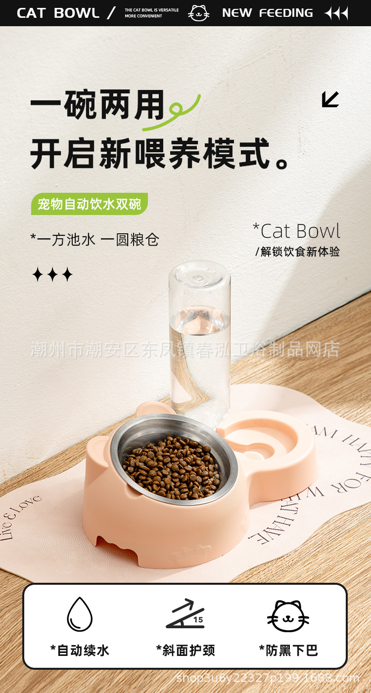 공장 직접 고양이 그릇 더블 그릇 자동 먹이 마시는 고양이 그릇 개 그릇 물 그릇 애완 동물 쌀 분지 고양이 용품