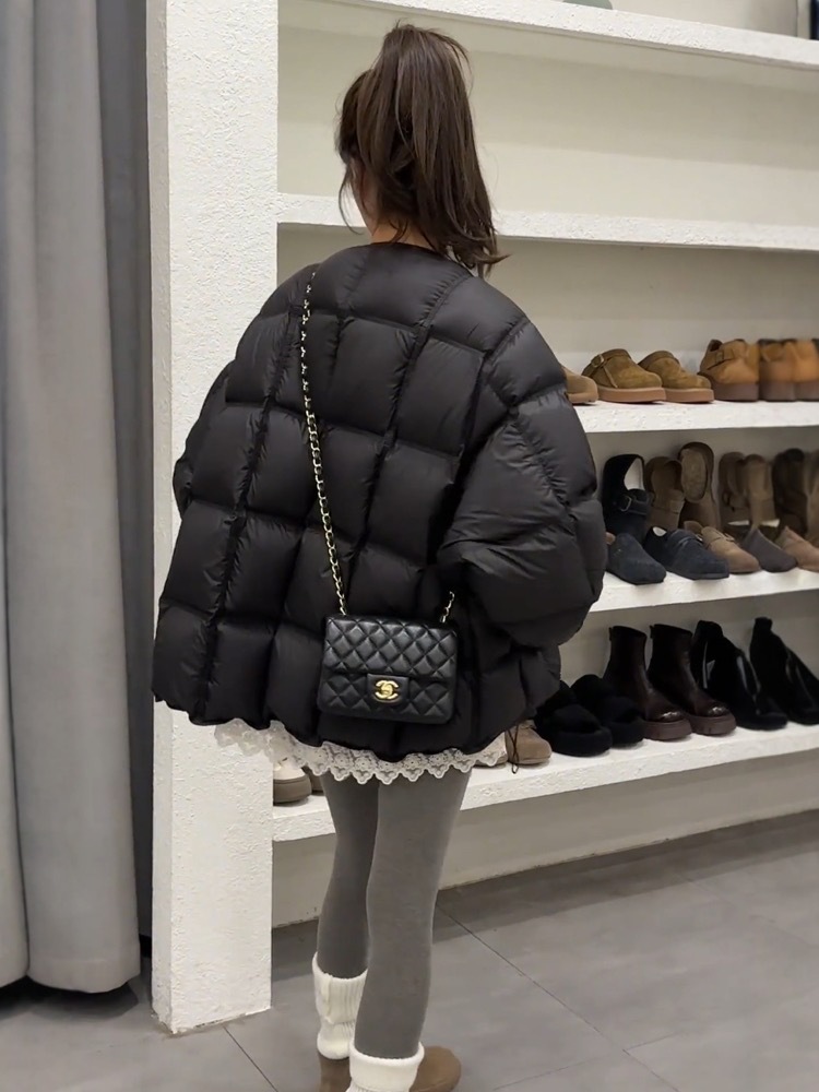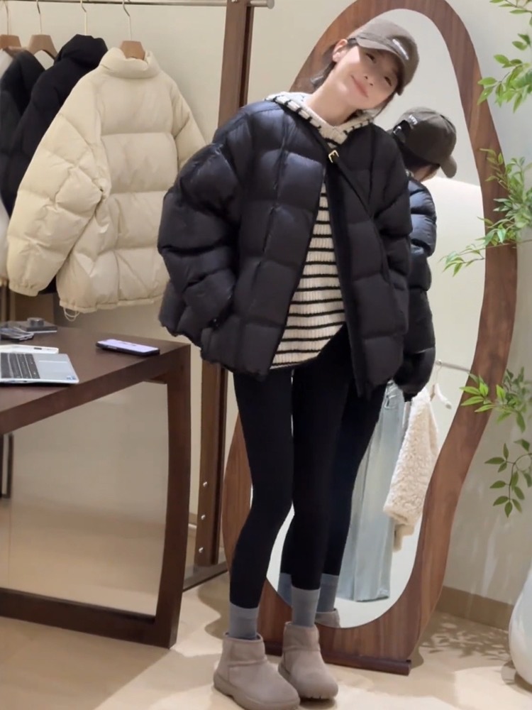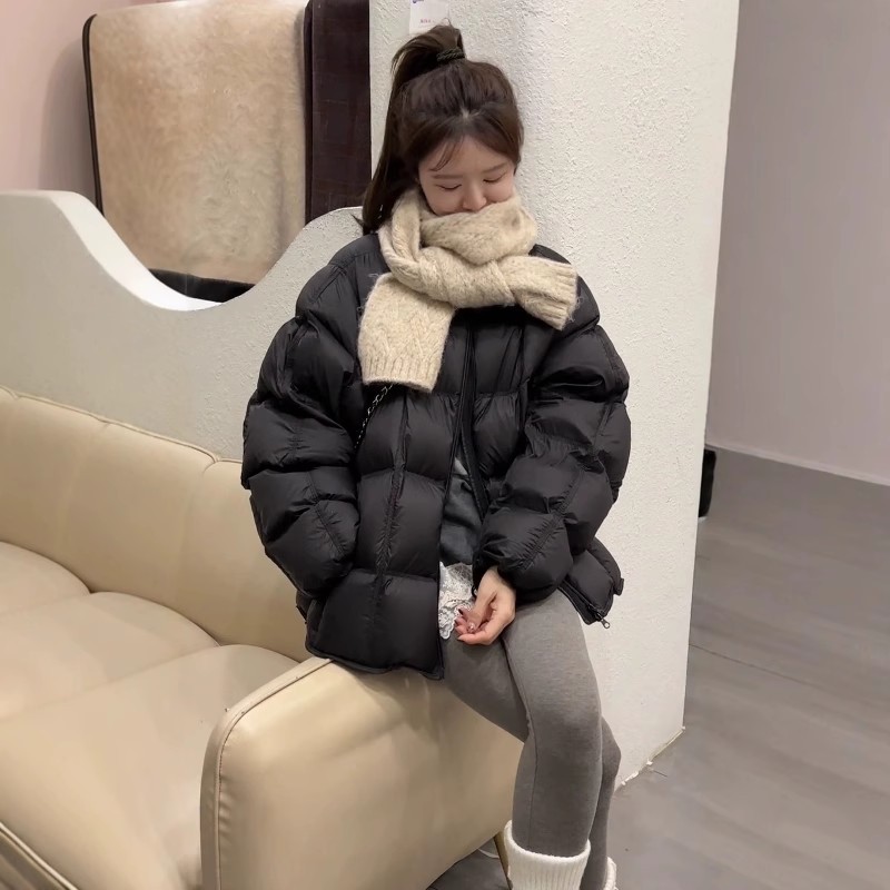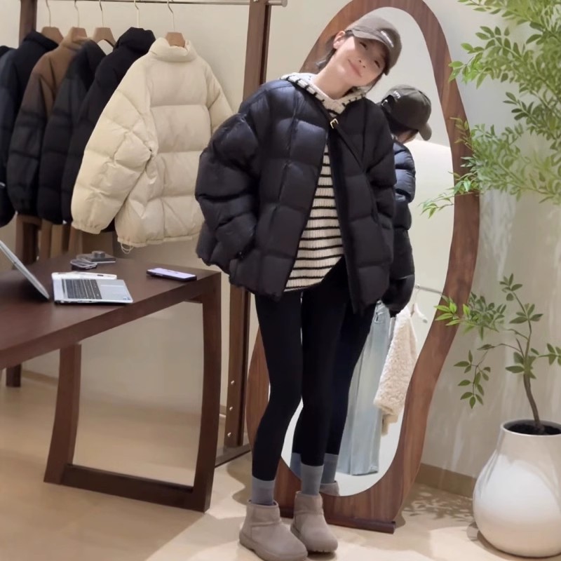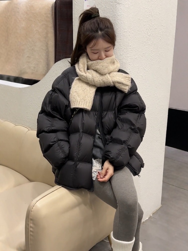 패션 하이 엔드 라운드 넥 두껍게 다운 재킷 여성의 2024 겨울 새로운 다용도 느슨한 빵 코트