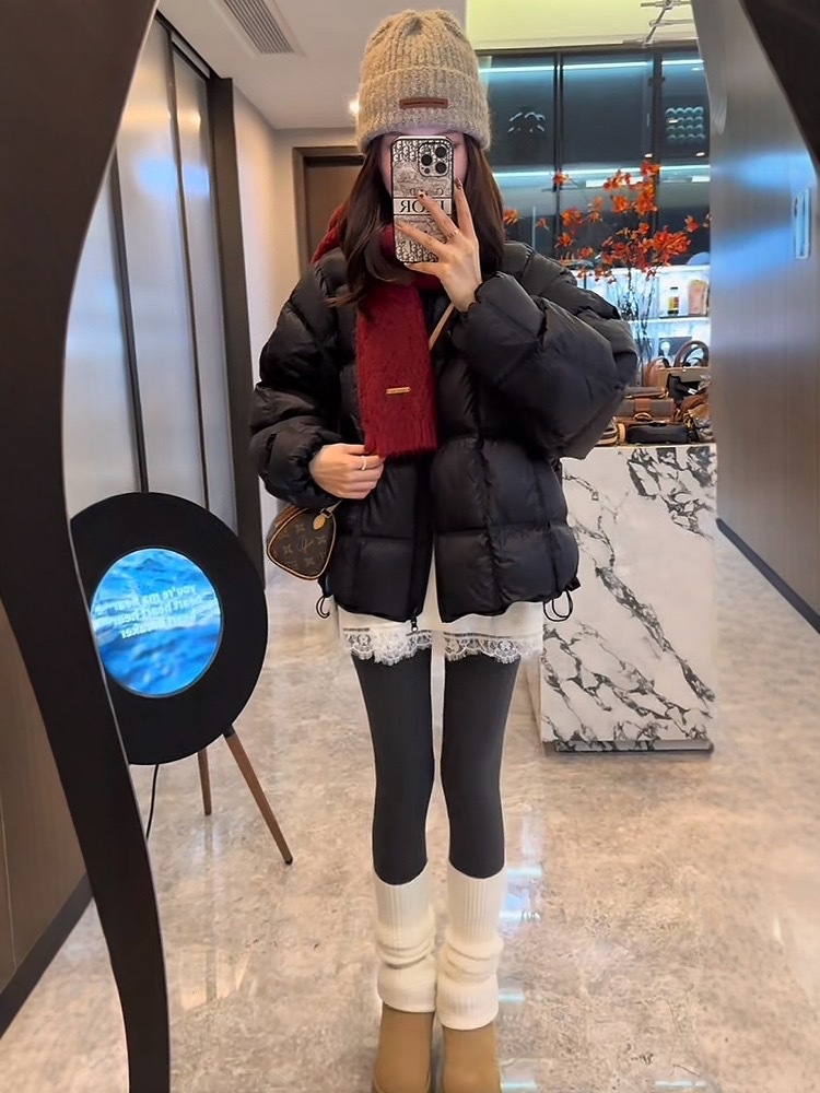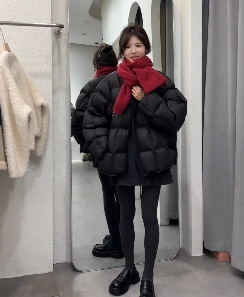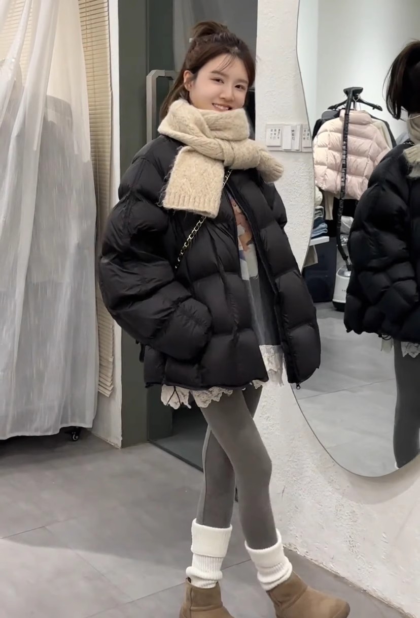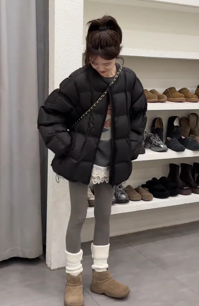 패션 하이 엔드 라운드 넥 두껍게 다운 재킷 여성의 2024 겨울 새로운 다용도 느슨한 빵 코트