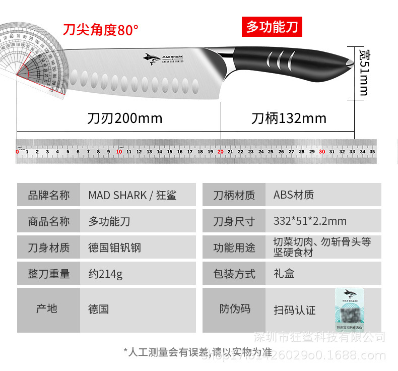 미친 상어 독일 요리사 특수 헬기 가정용 슈퍼 샤프 작은 샌드 나이프 고기 절단 칼 주방 헬기