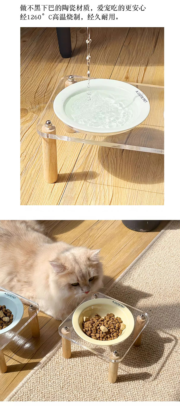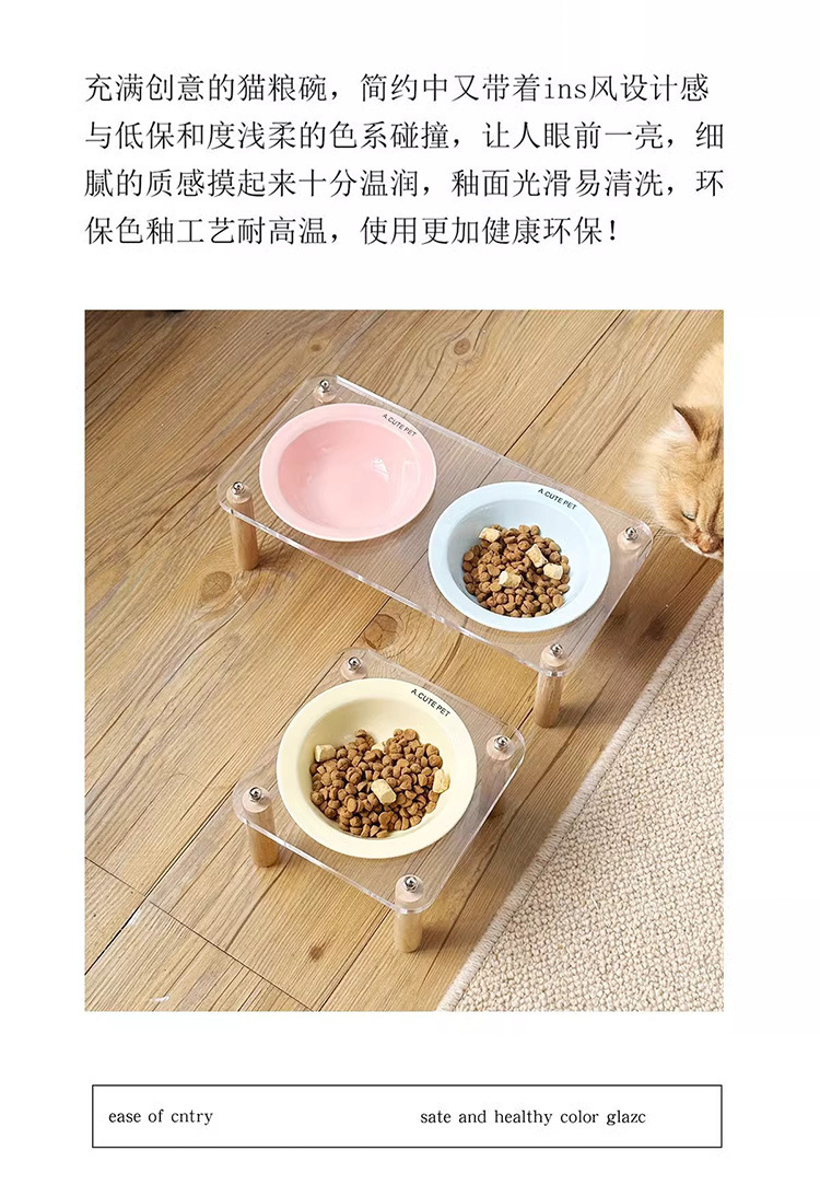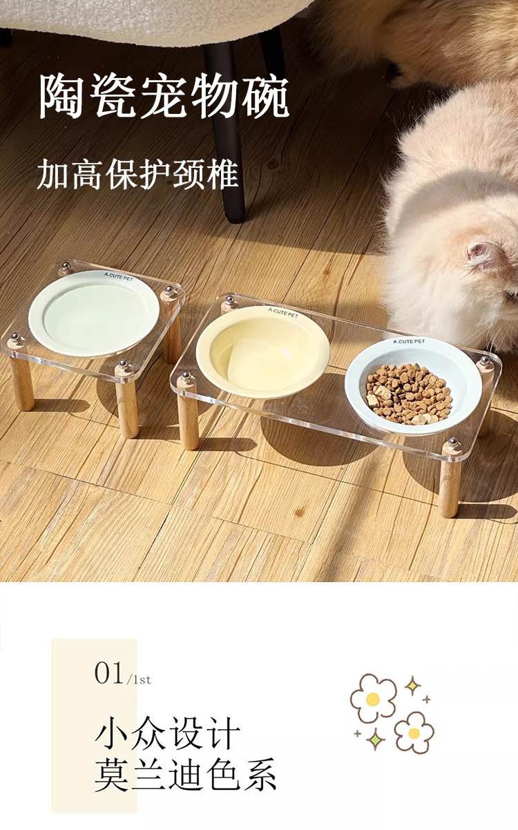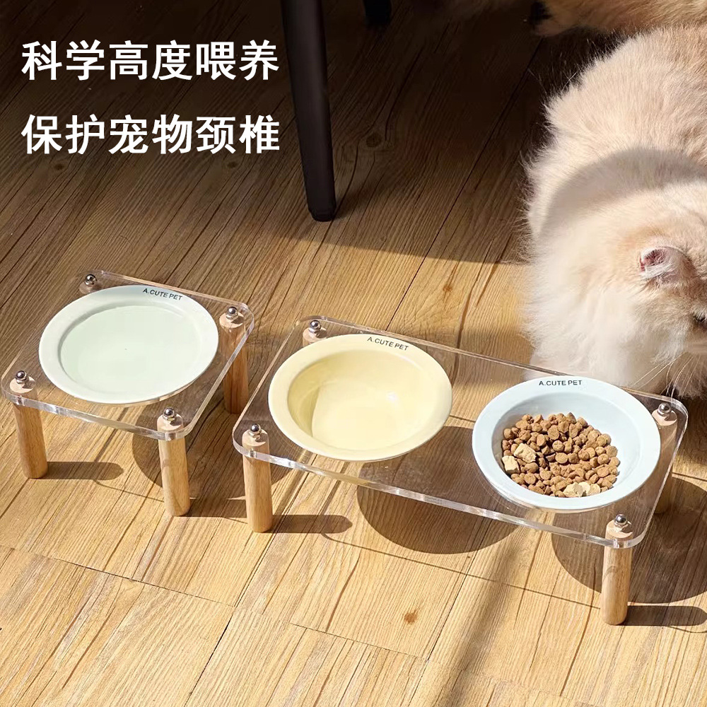 고양이 용품 애완 동물 그릇 높은 랙 고양이 물 그릇 개 분지 반대로 뒤집히는 키 큰 고양이 그릇 세라믹 고양이 먹이 분지 더블 그릇