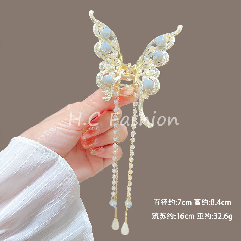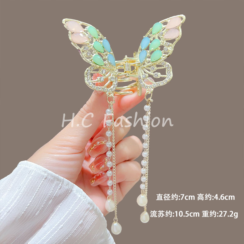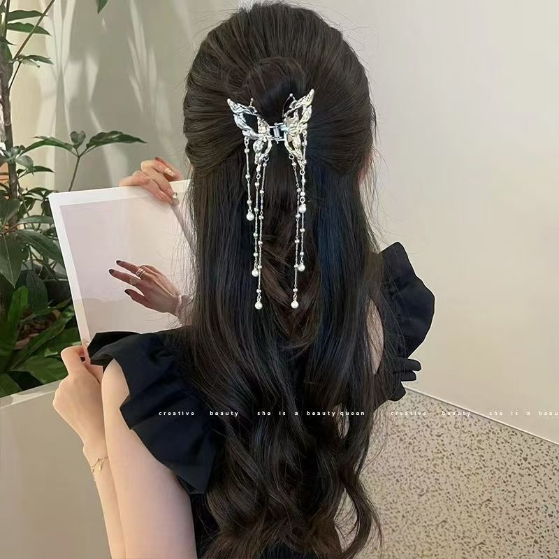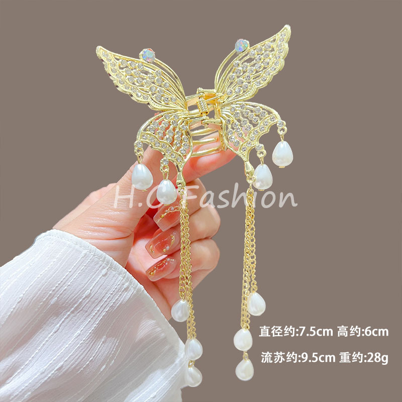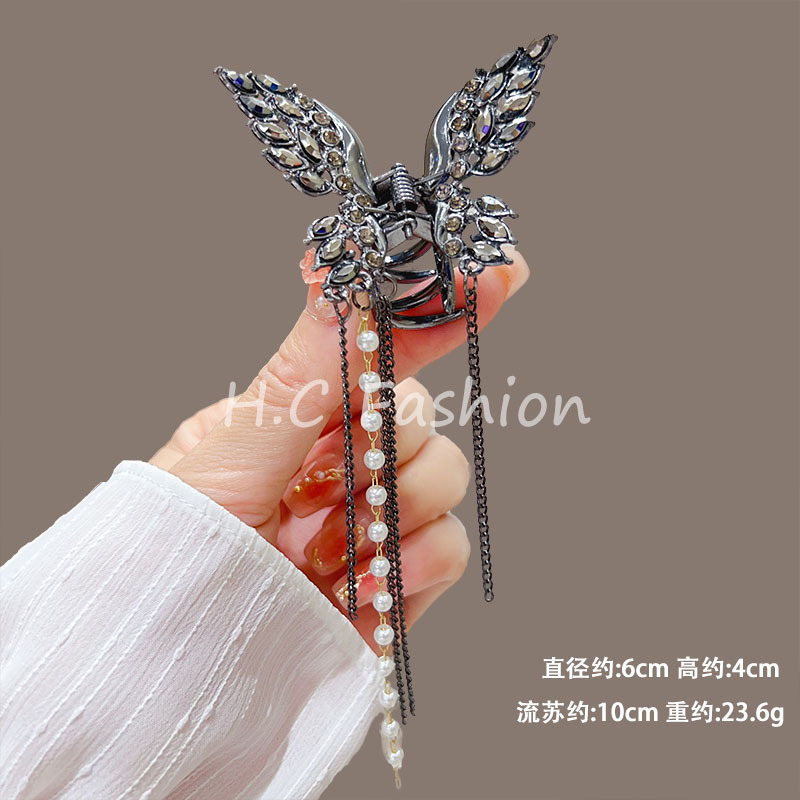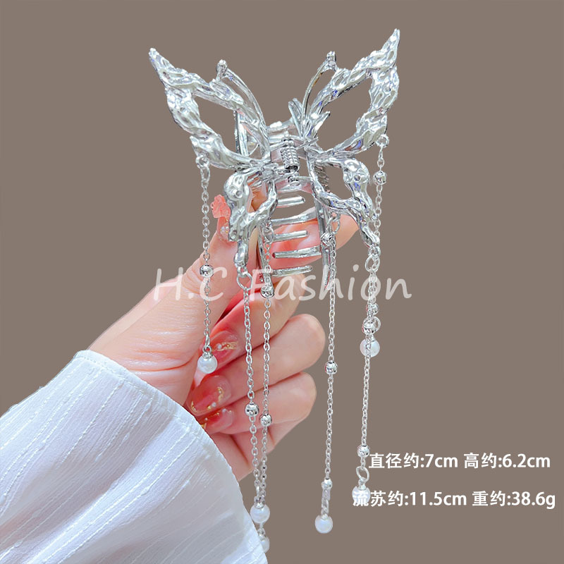 새로운 금속 나비 머리핀 여성 합금 우아한 반 넥타이 헤어 술 펜던트 헤어 액세서리 요정 새로운 뒤 머리 클립