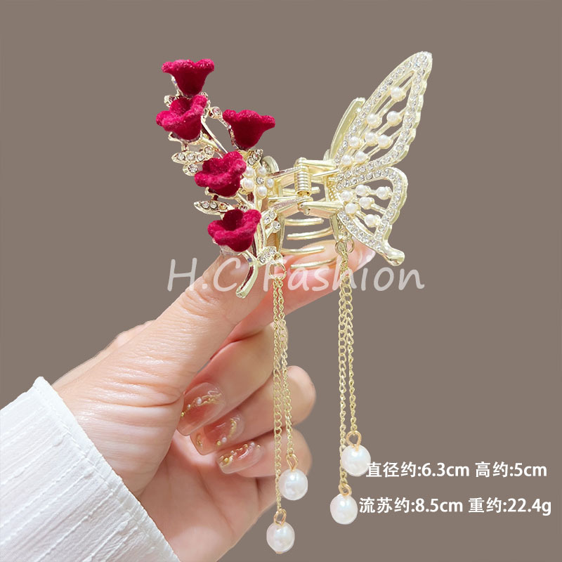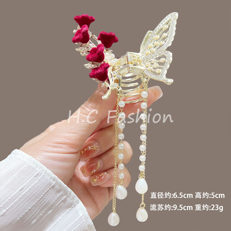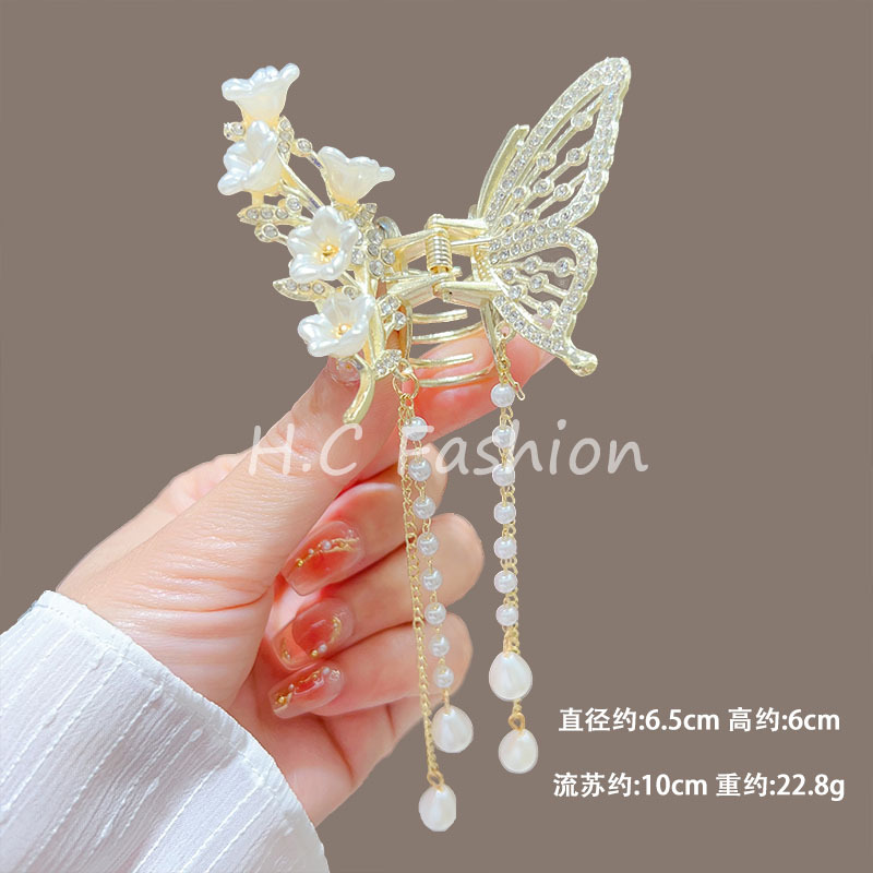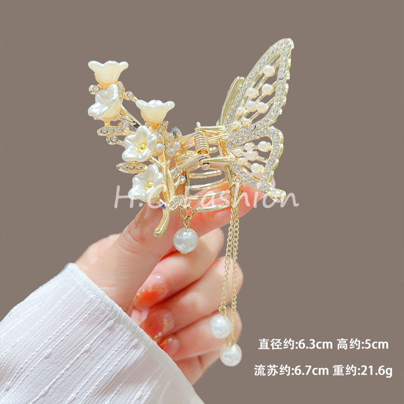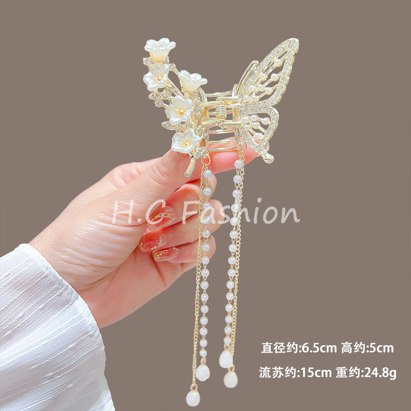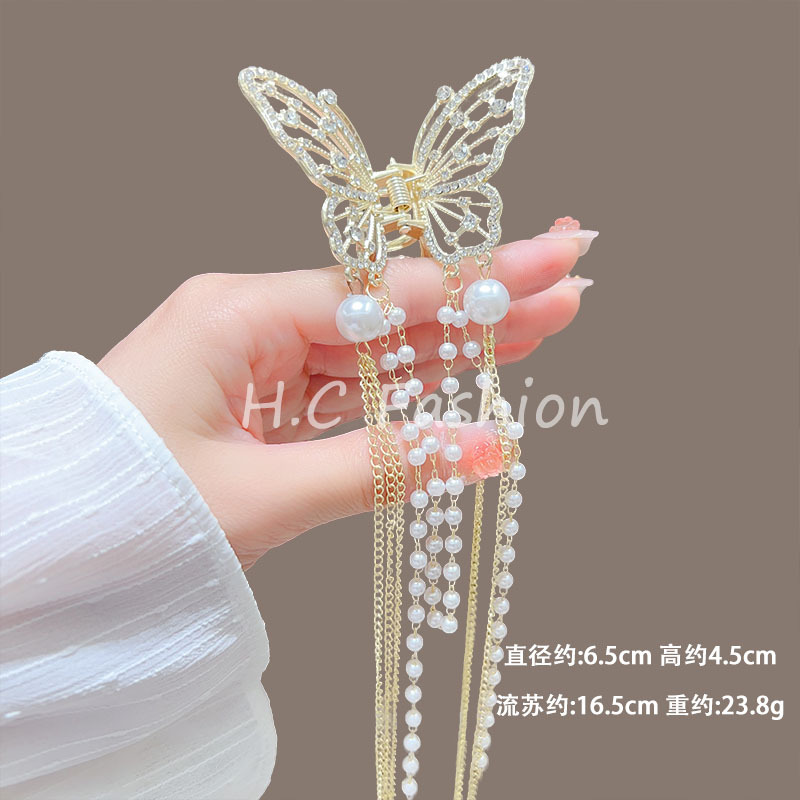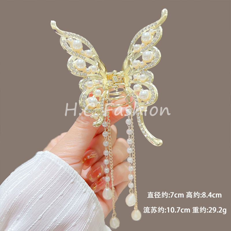 새로운 금속 나비 머리핀 여성 합금 우아한 반 넥타이 헤어 술 펜던트 헤어 액세서리 요정 새로운 뒤 머리 클립