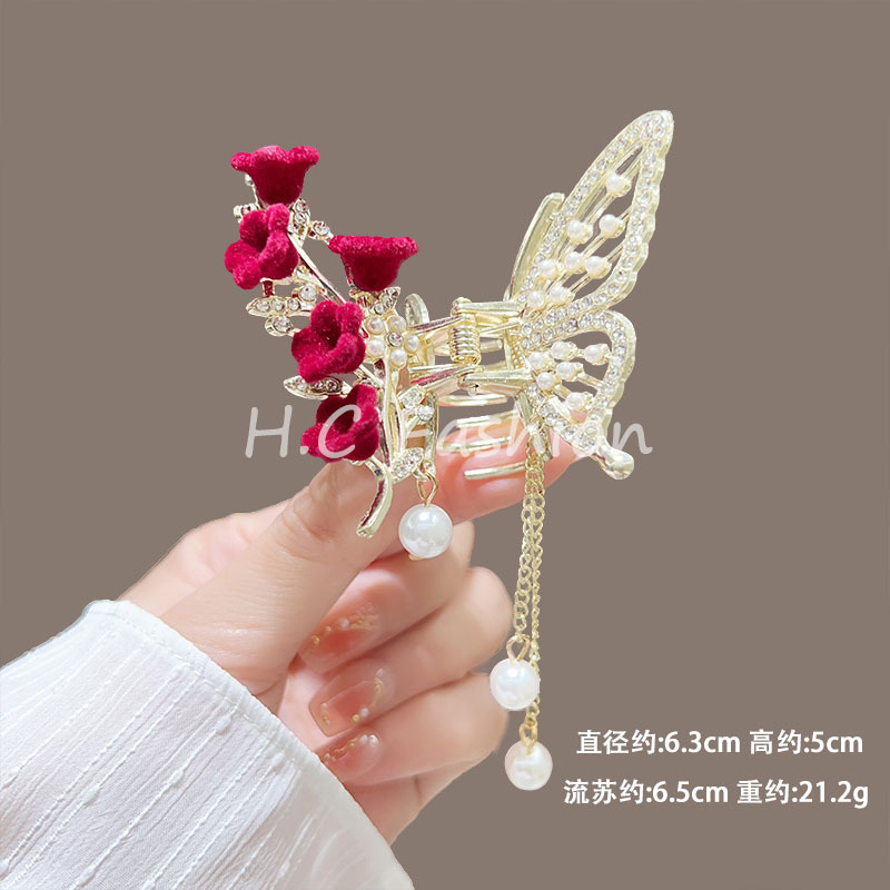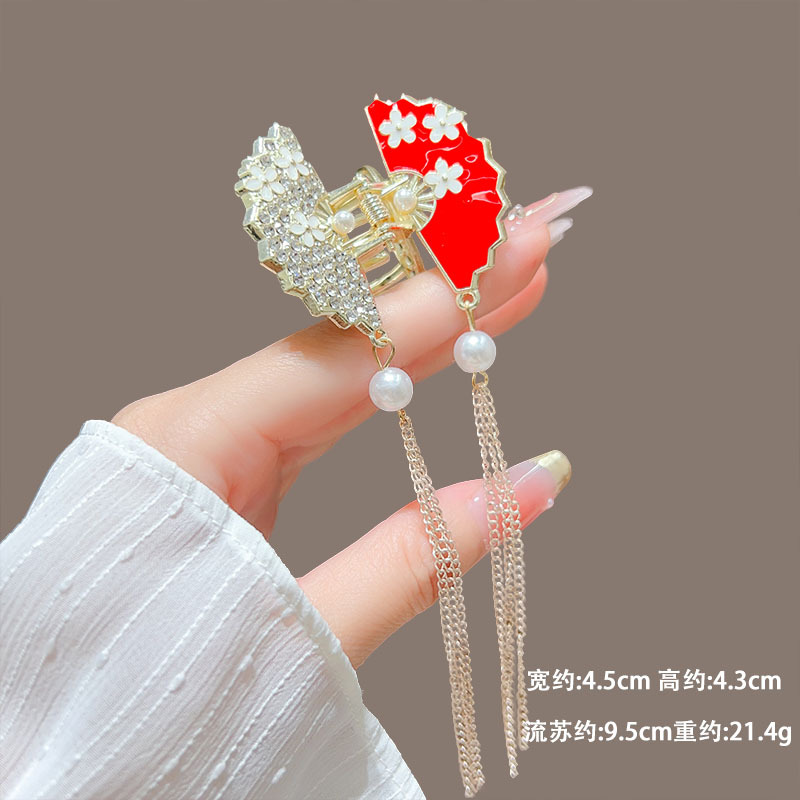 새로운 중국 스타일의 시원한 라인스톤 나비 클립