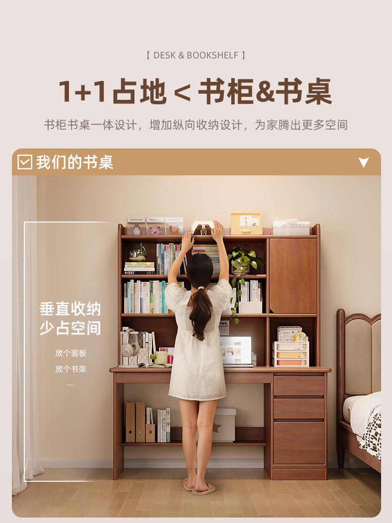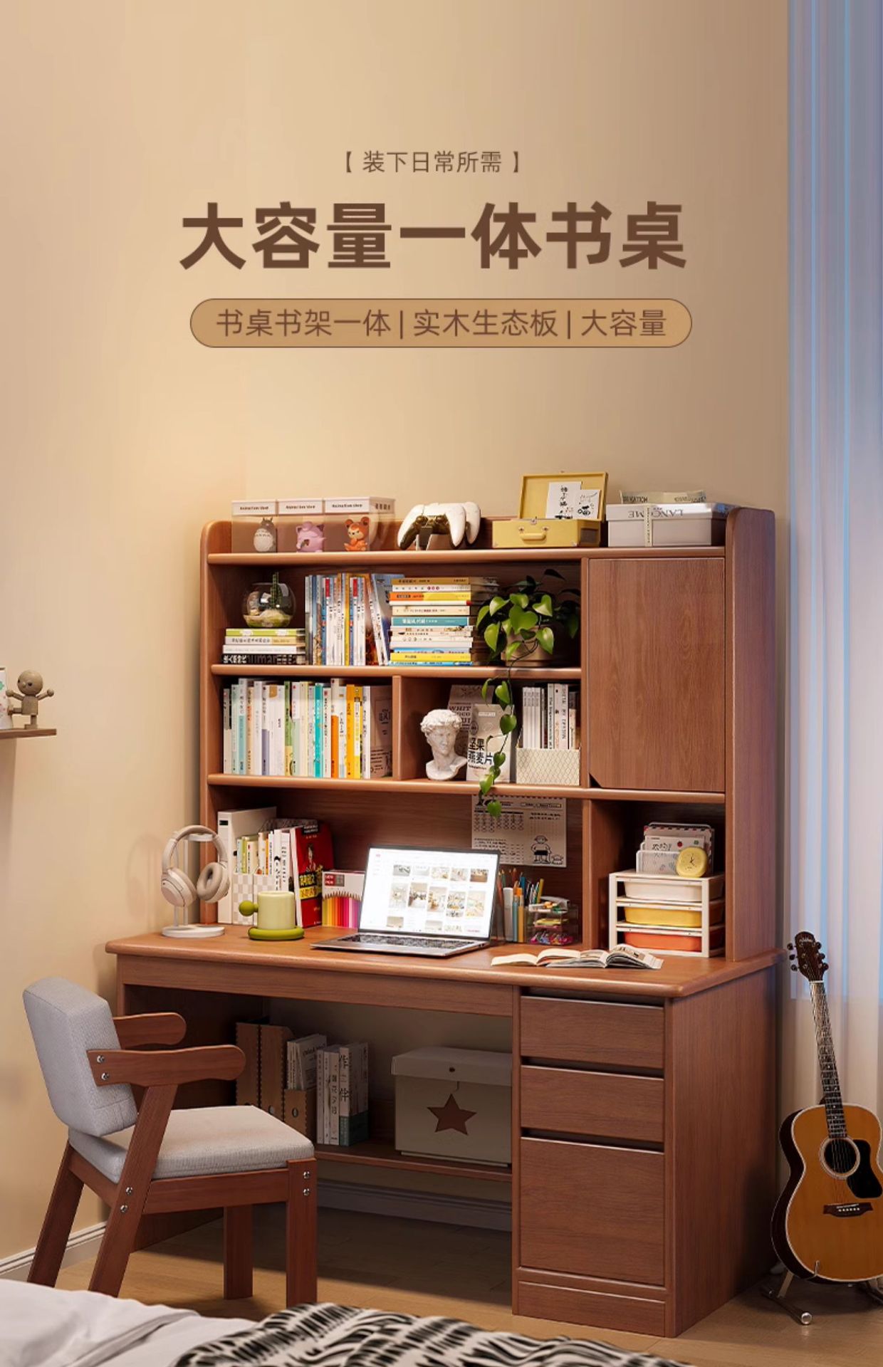 단단한 나무 책상 학생 가정 학습 책상 침실 책장 통합 테이블 책장 벽 성인 컴퓨터 책상