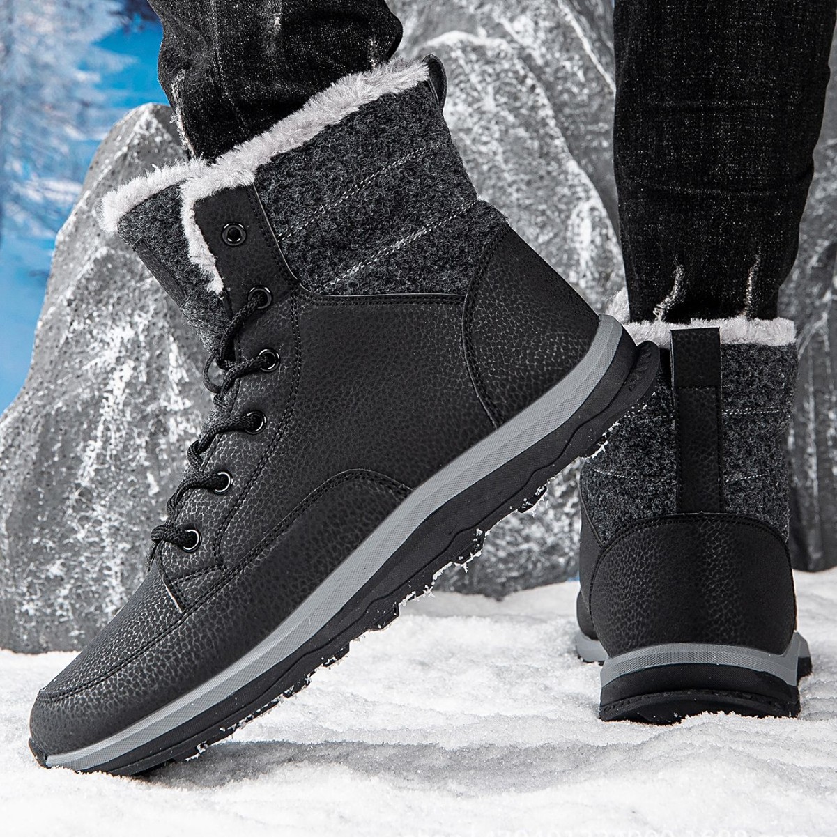 코튼 신발 남성용 겨울 스노우 부츠 남성용 등산 신발 기모 두꺼운 따뜻한 동북 플러스 사이즈 코튼 부츠 하이 탑 따뜻한 신발