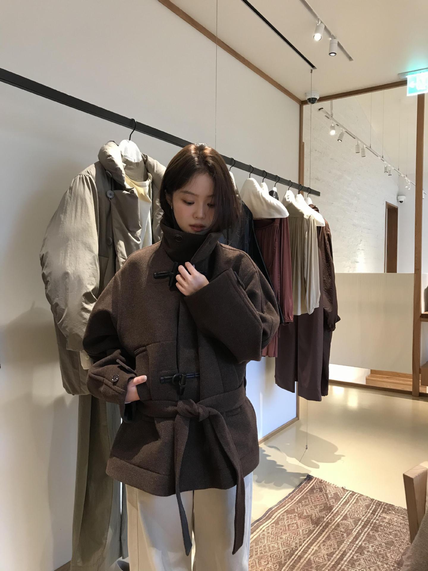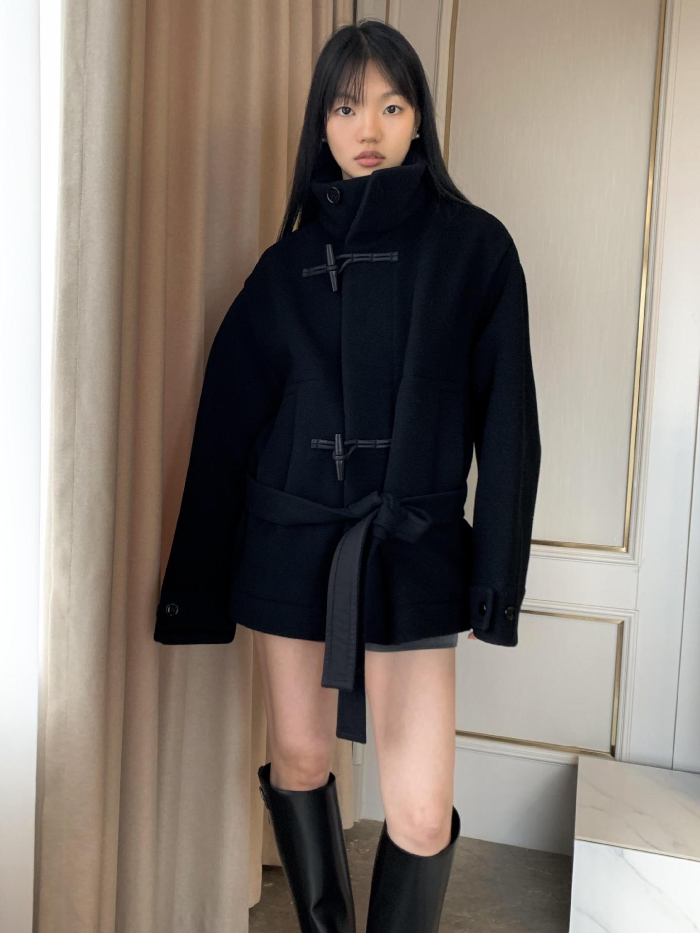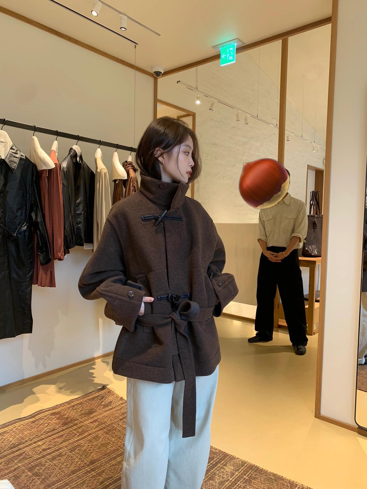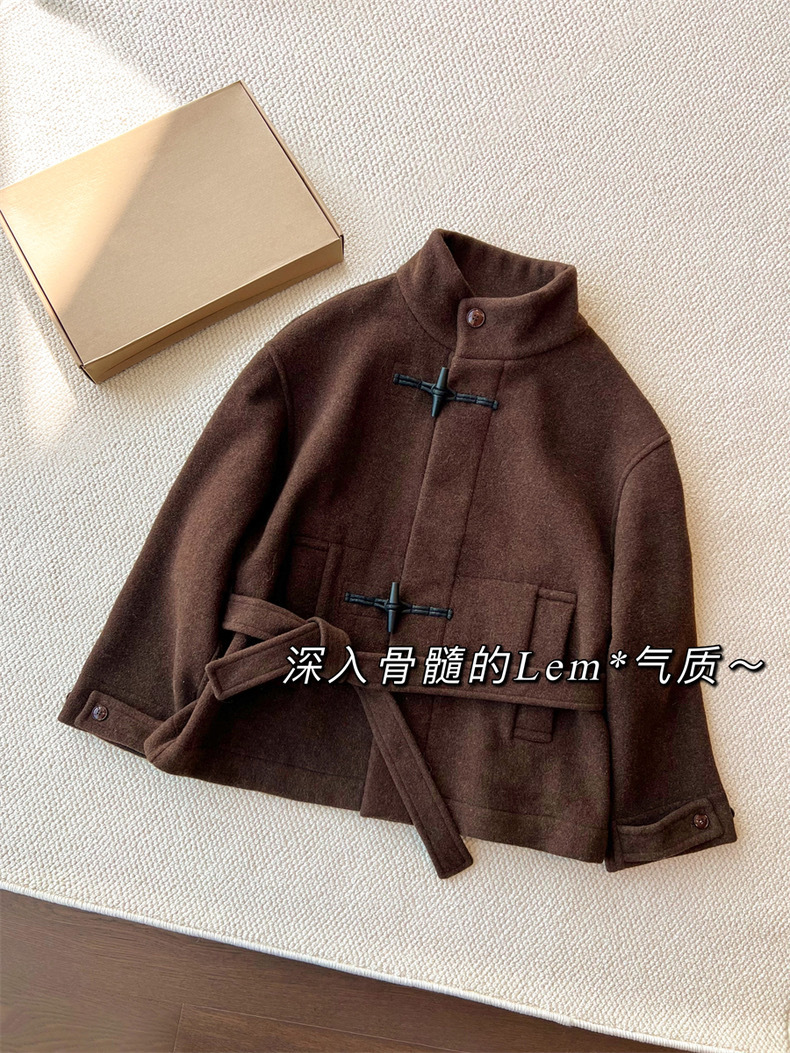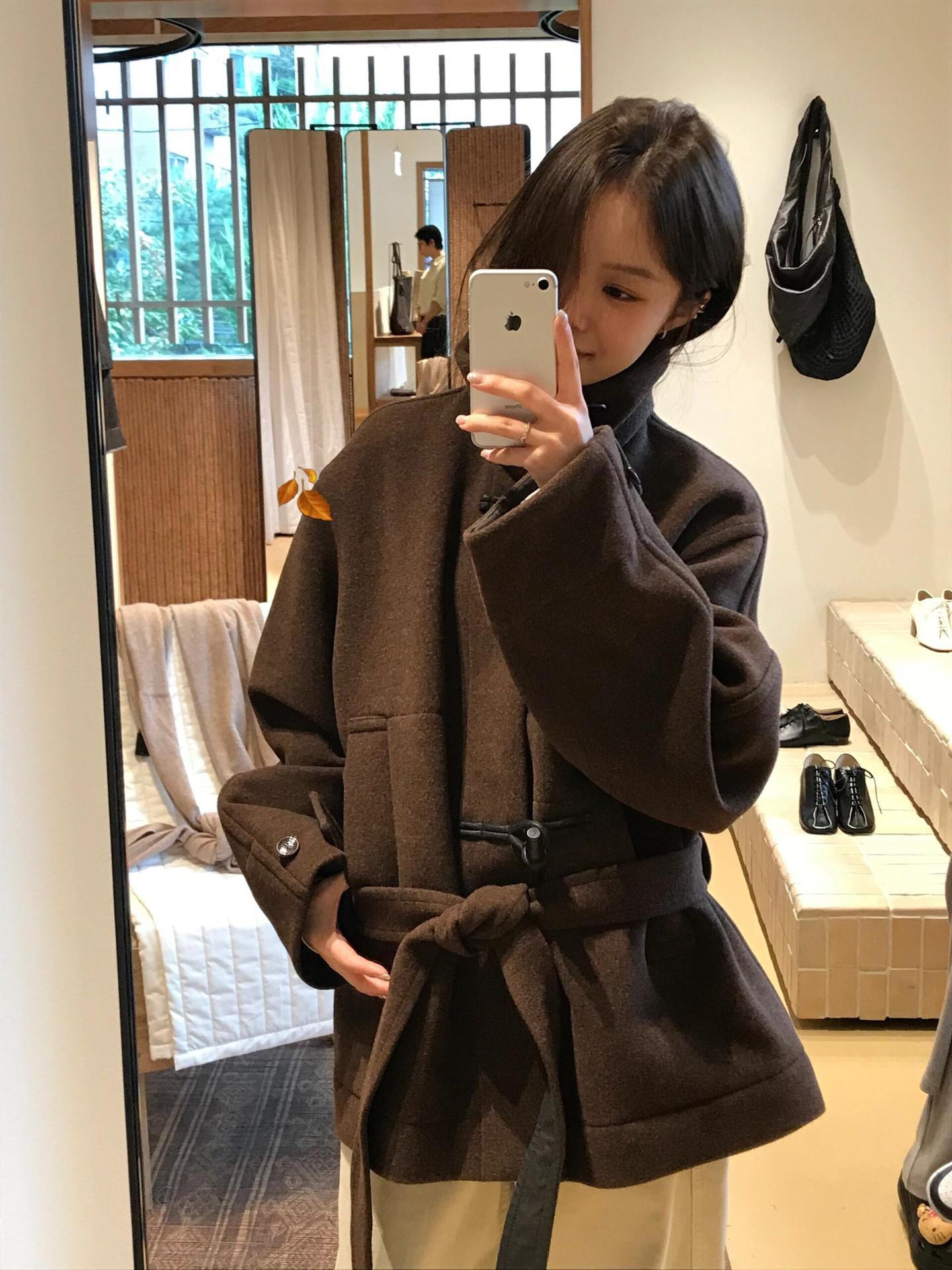 Lem * 24 가을/겨울 새로운 양모 코트 작은 여성복 진 민시 같은 코너 버클 수직 칼라 코트