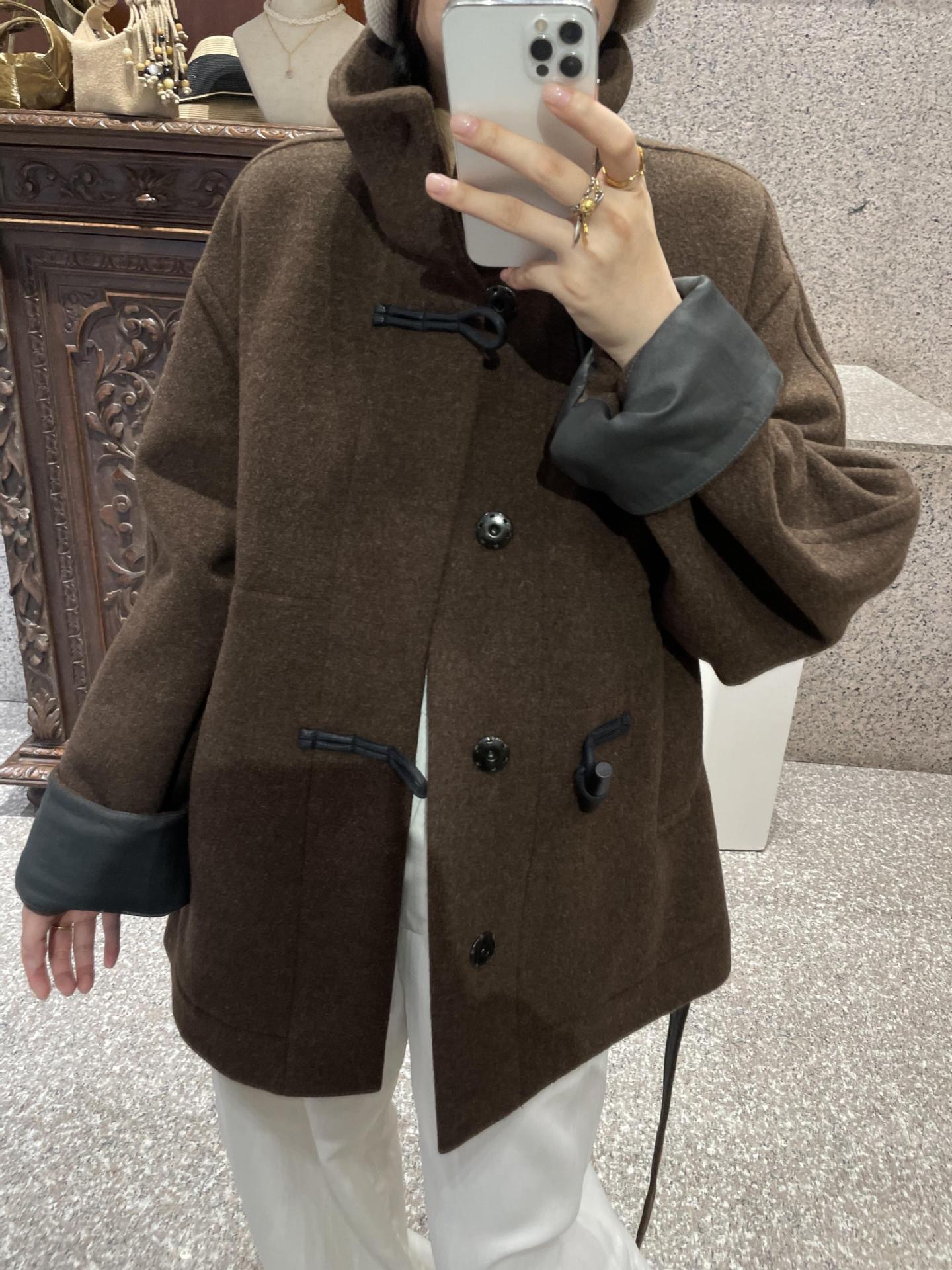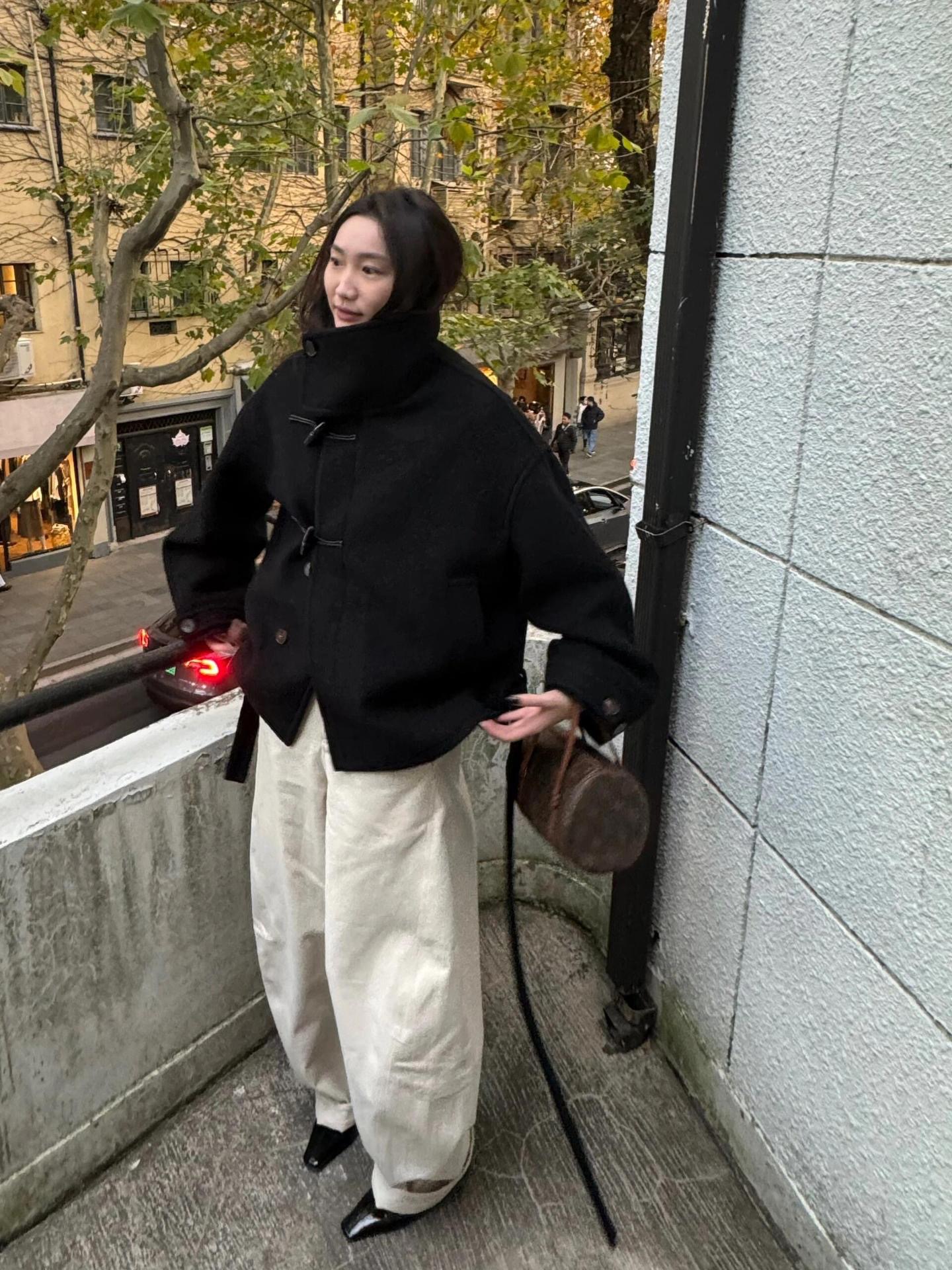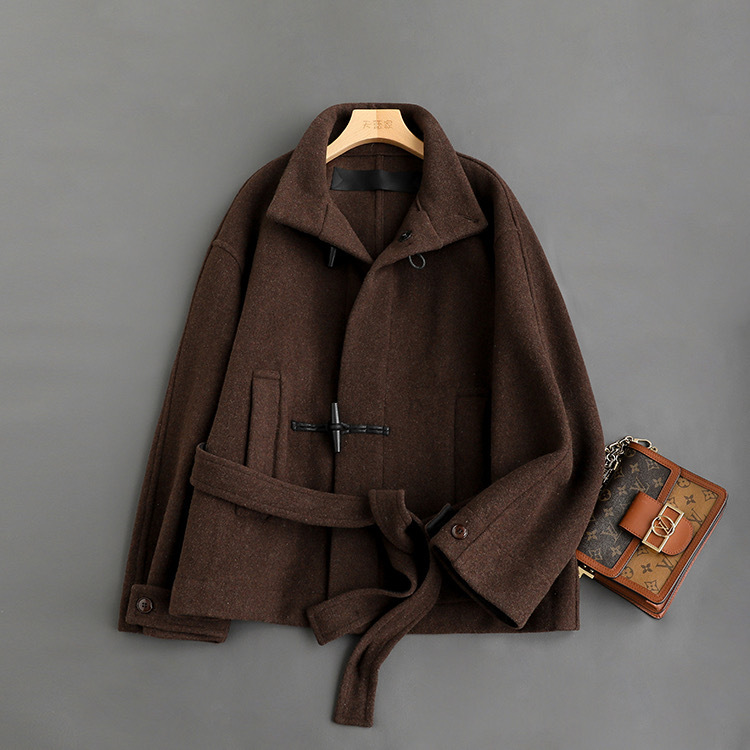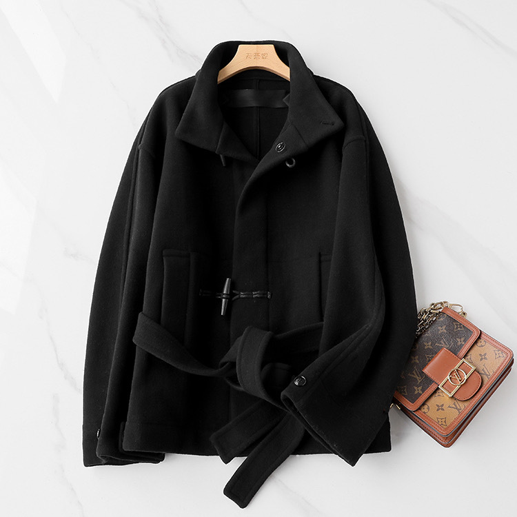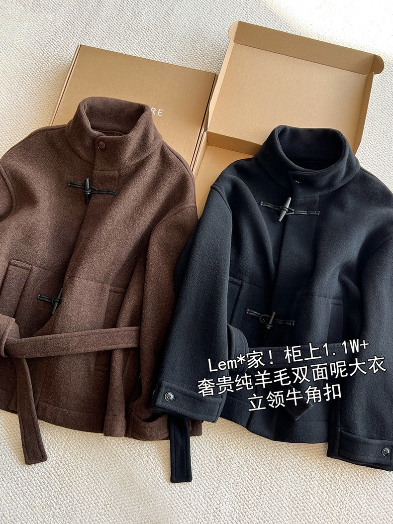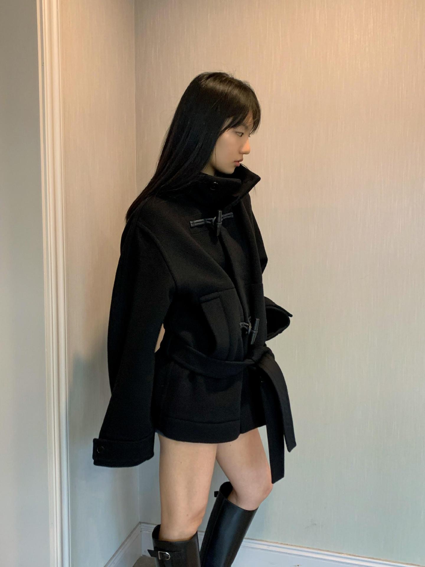 Lem * 24 가을/겨울 새로운 양모 코트 작은 여성복 진 민시 같은 코너 버클 수직 칼라 코트