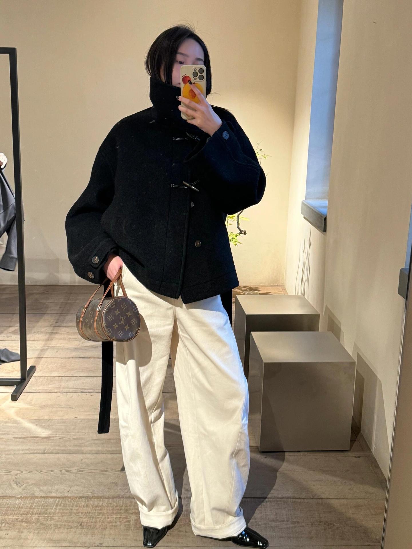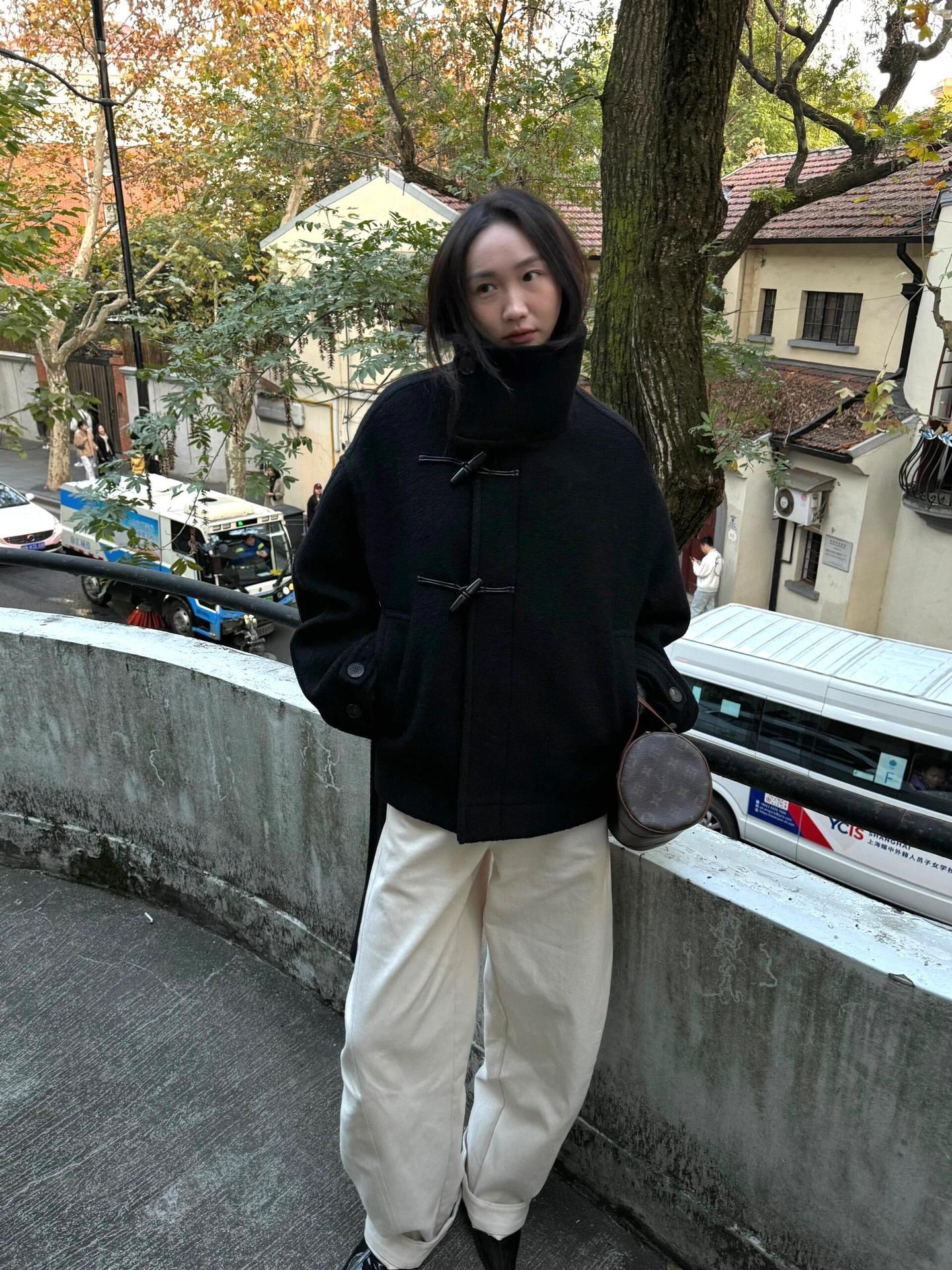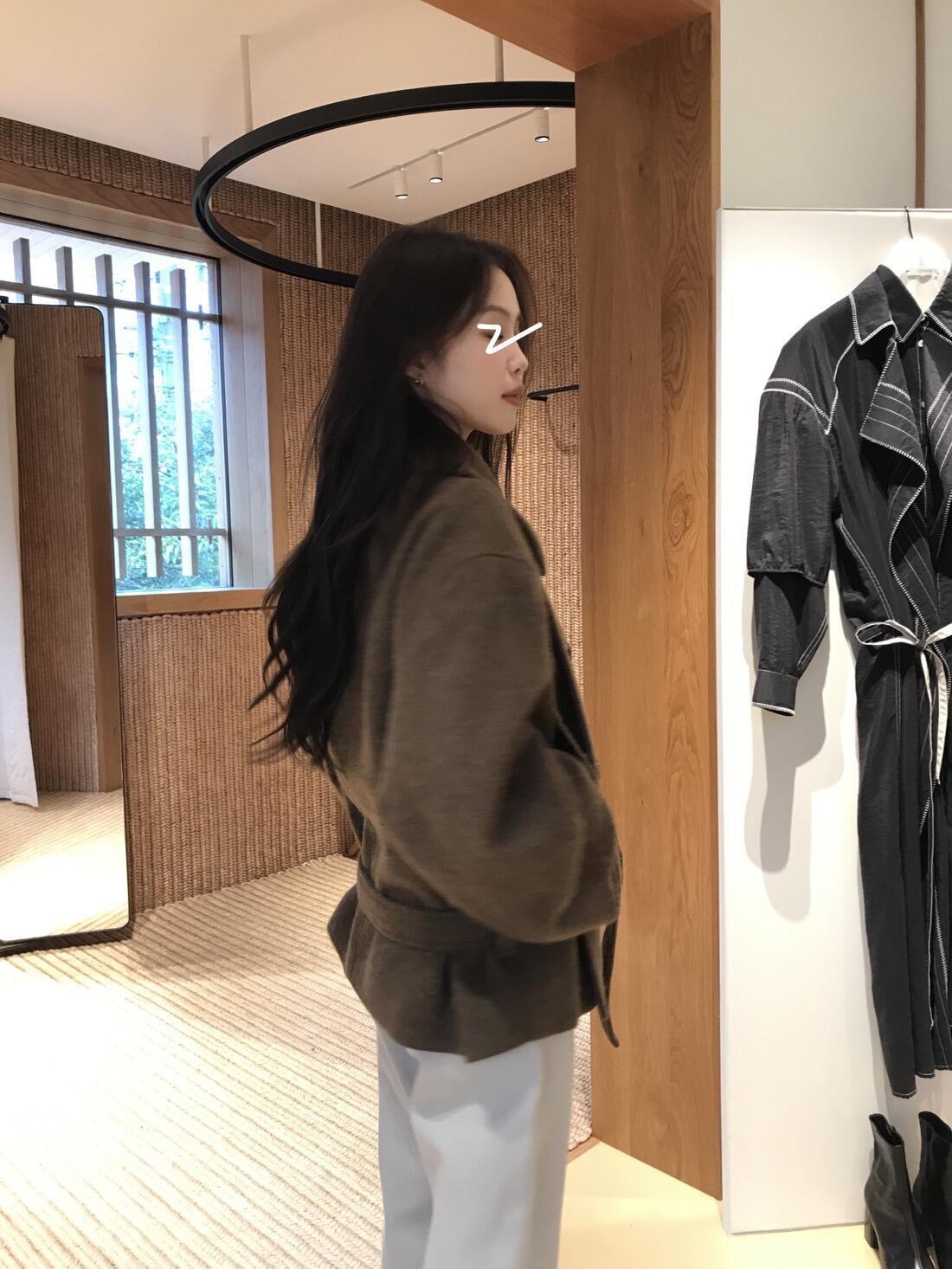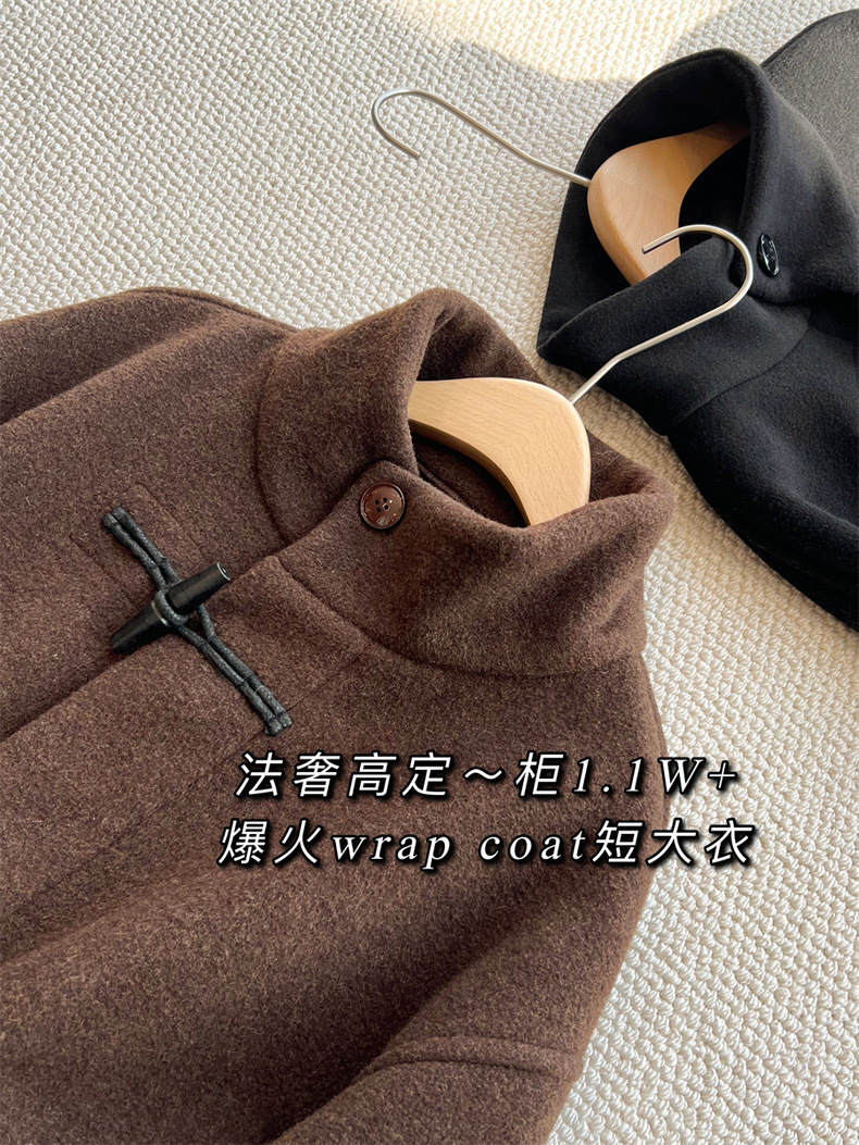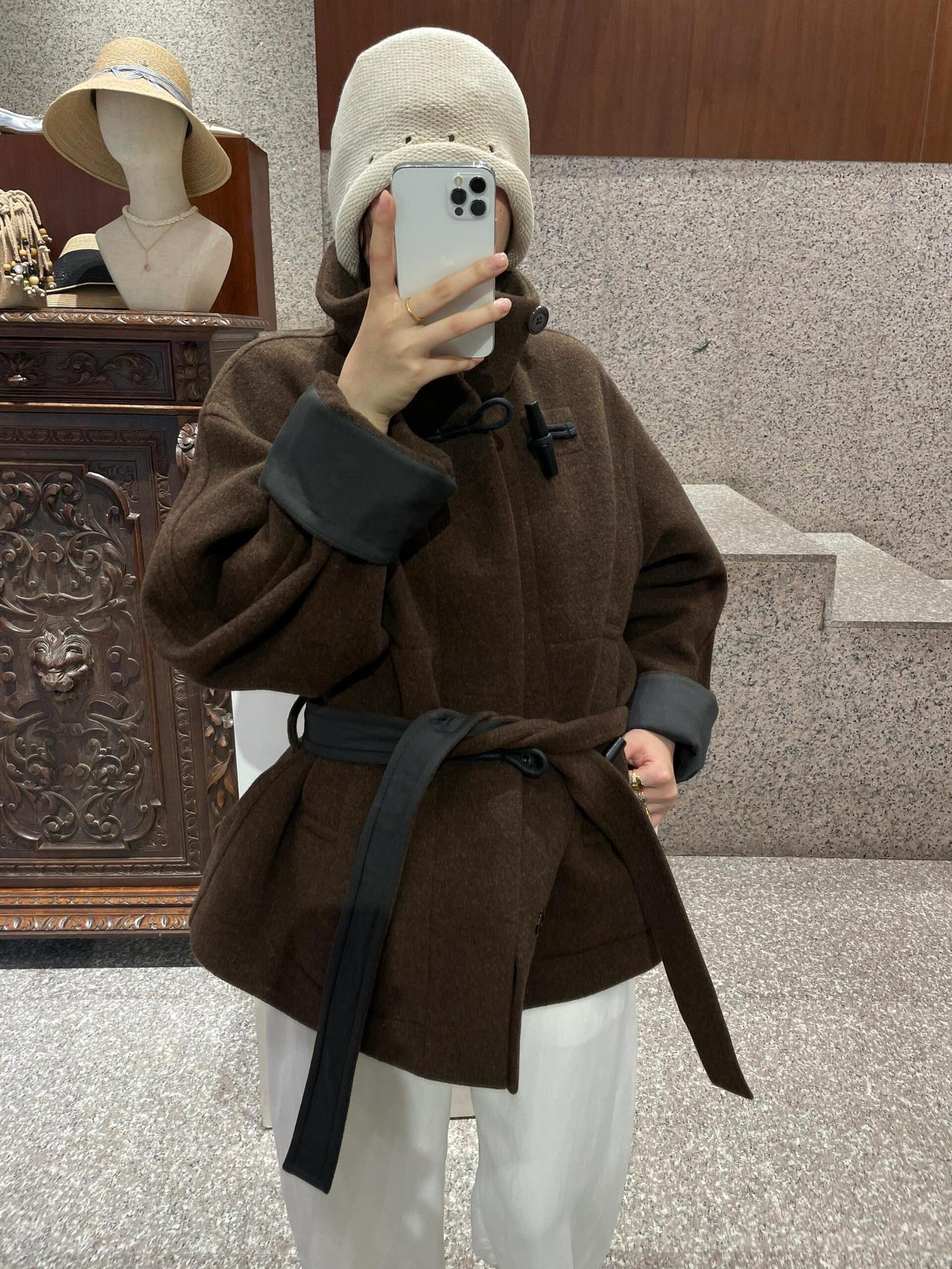 Lem * 24 가을/겨울 새로운 양모 코트 작은 여성복 진 민시 같은 코너 버클 수직 칼라 코트