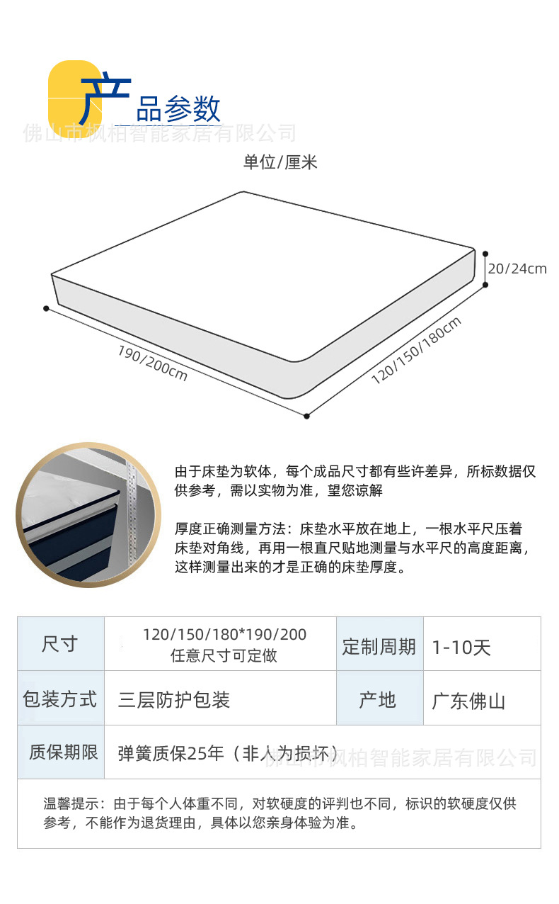 불산 스프링 매트리스 독립 스프링 소프트&하드 겸용 어린이용 1.68m m 5성급 호텔 매트리스 시몬스