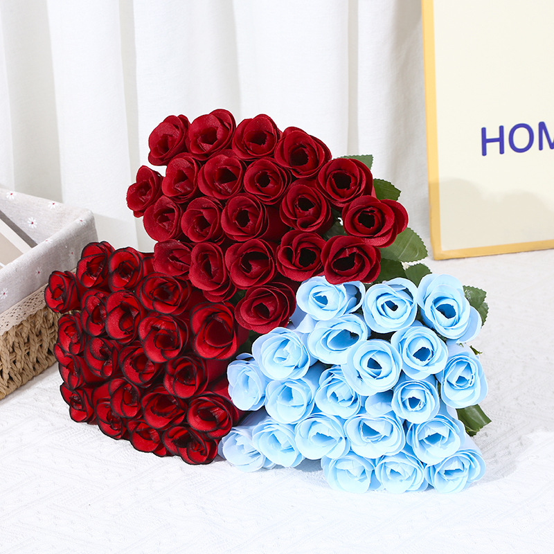 시뮬레이션 장미 단일 가짜 꽃 실크 천 꽃 발렌타인 데이 홈 웨딩 장식 꽃 인공 장미와 웨이브 볼