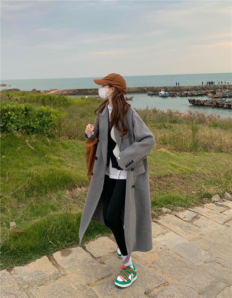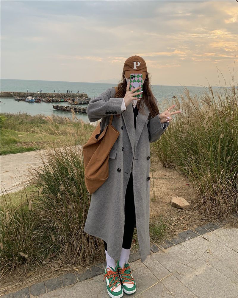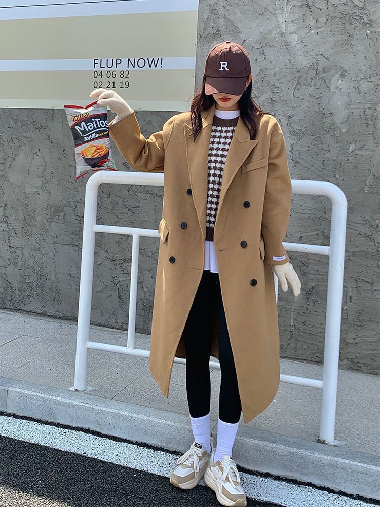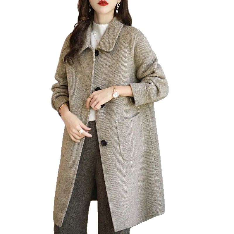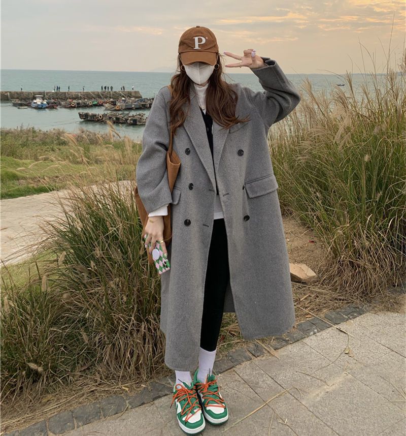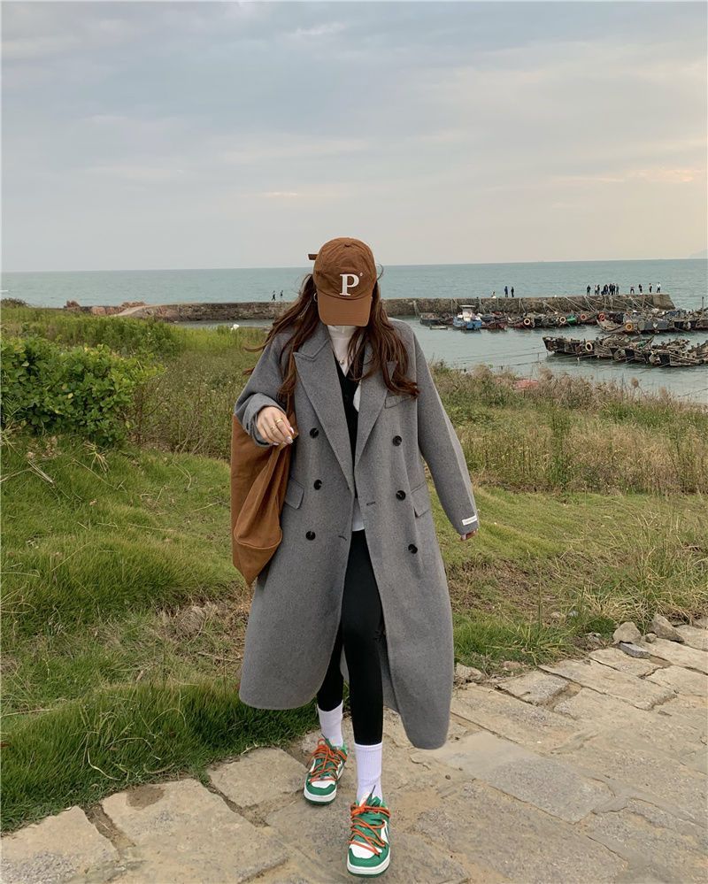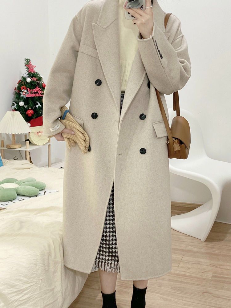 한국식 오버코트 여성의 가을과 겨울 2024 새로운 스타일 양면 모직 천 한국식 학생 패션 트렌드