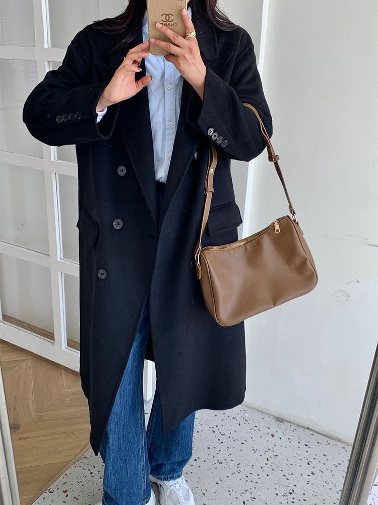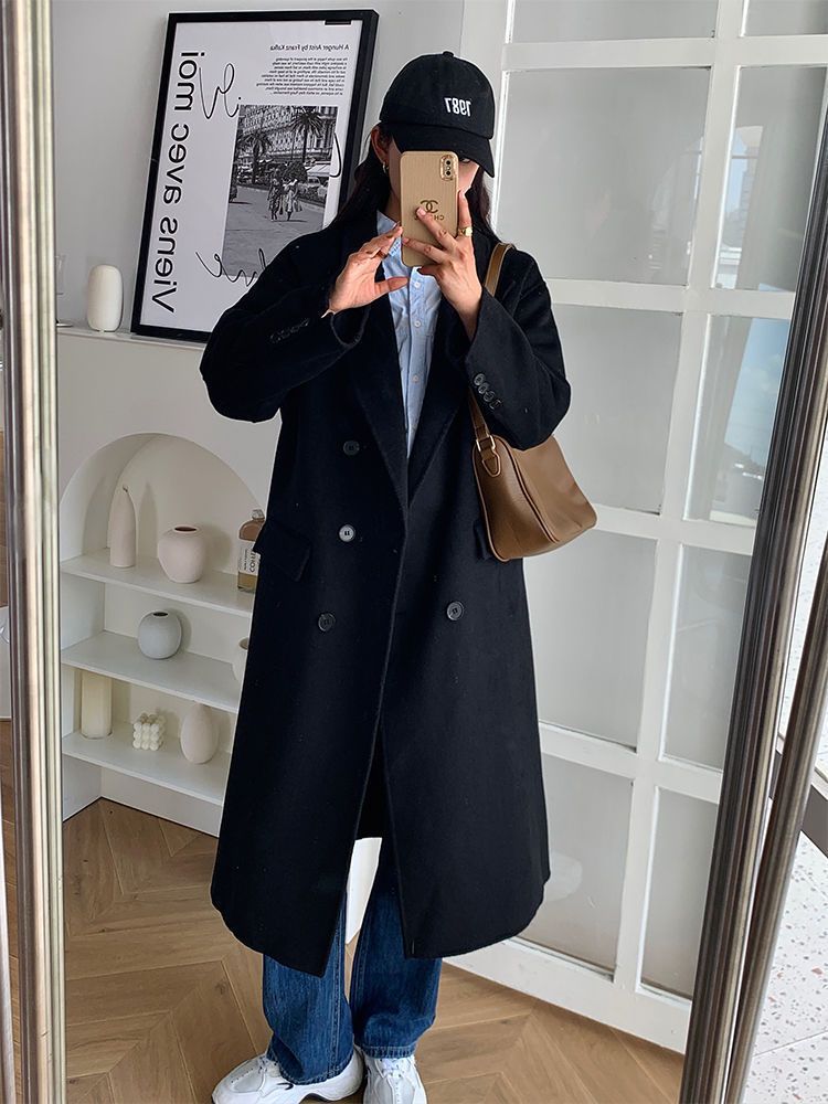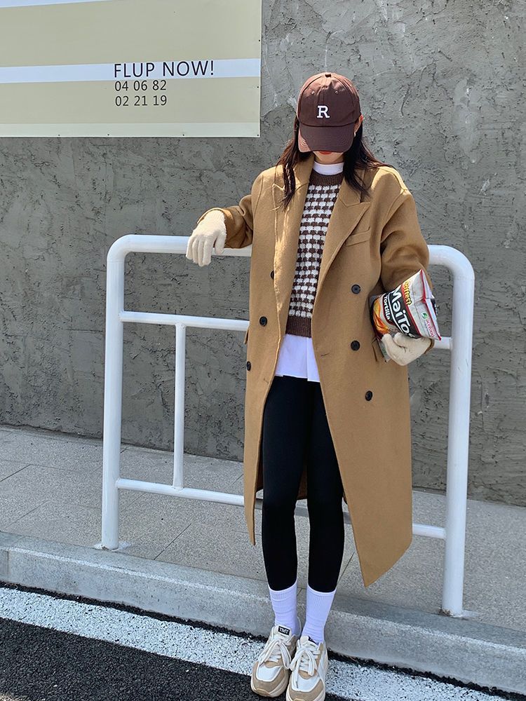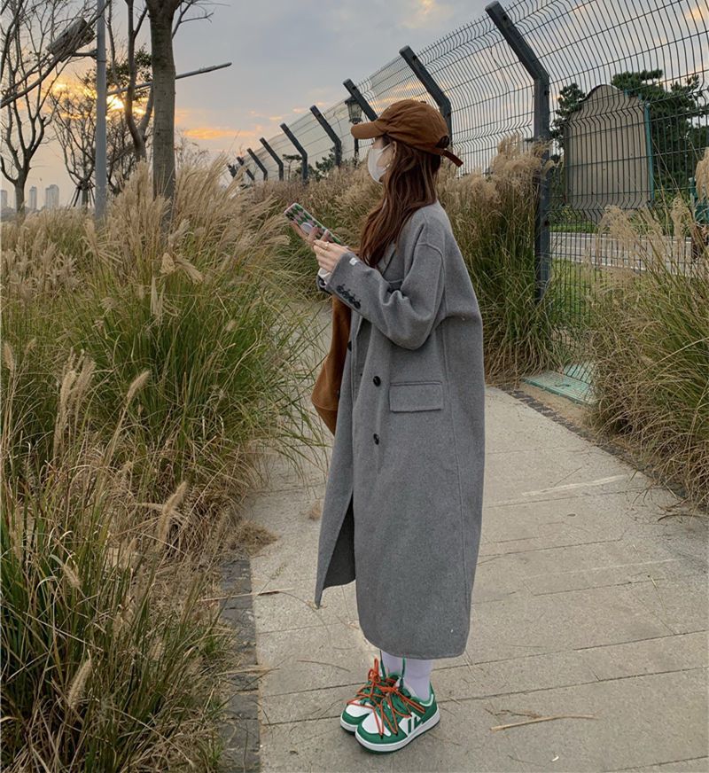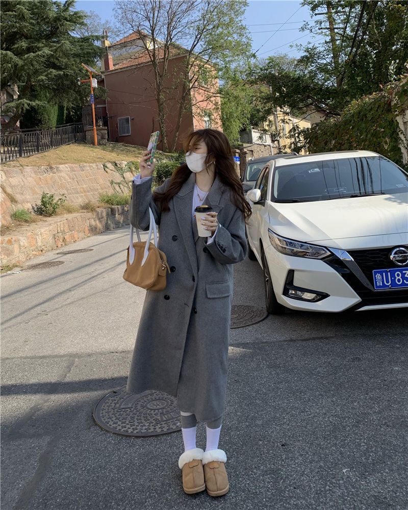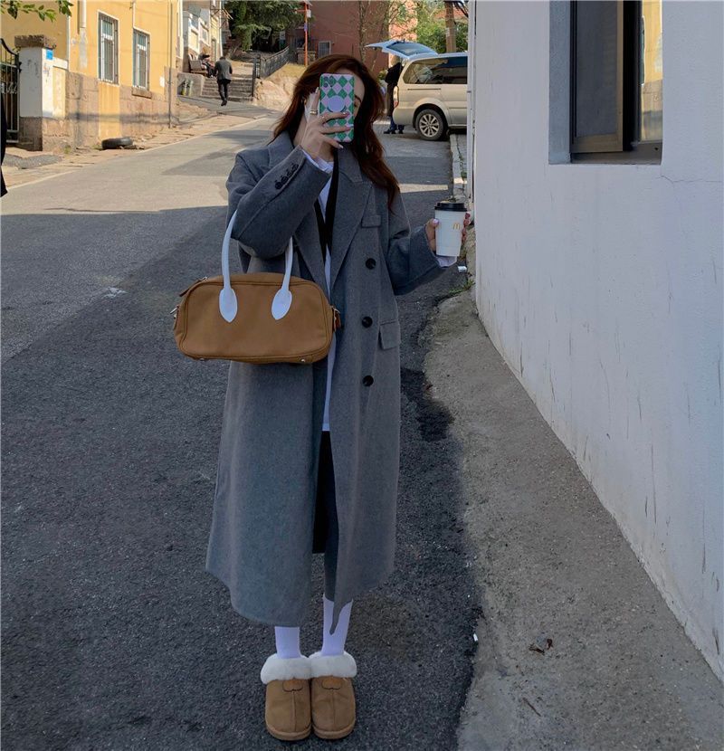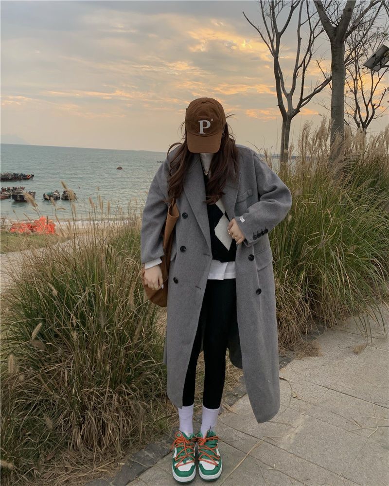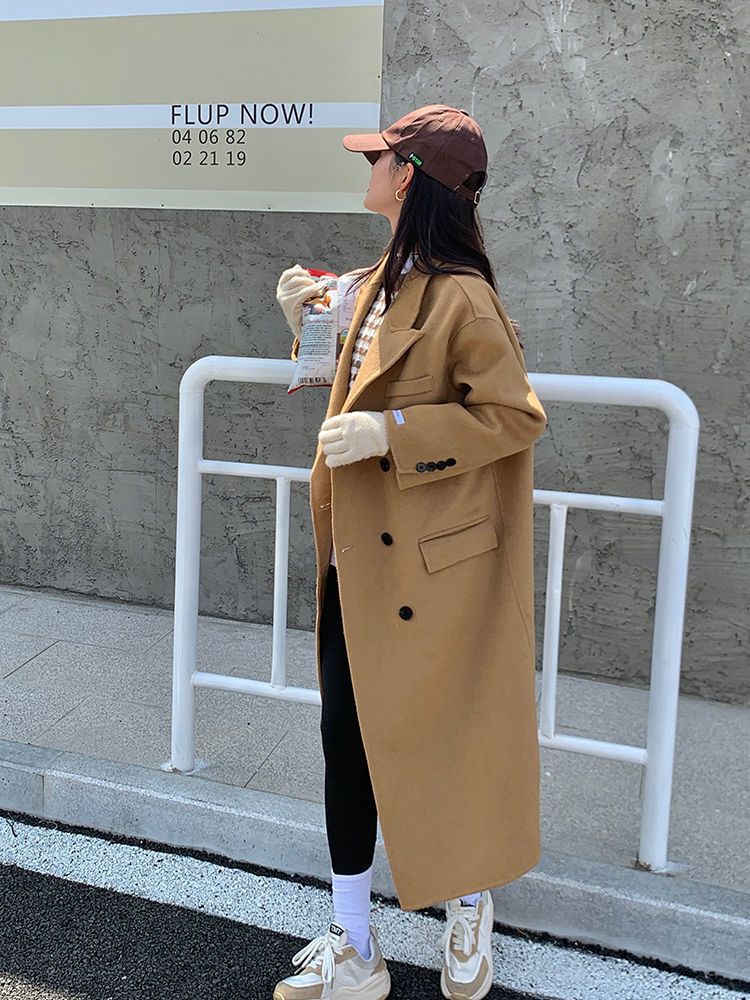 한국식 오버코트 여성의 가을과 겨울 2024 새로운 스타일 양면 모직 천 한국식 학생 패션 트렌드