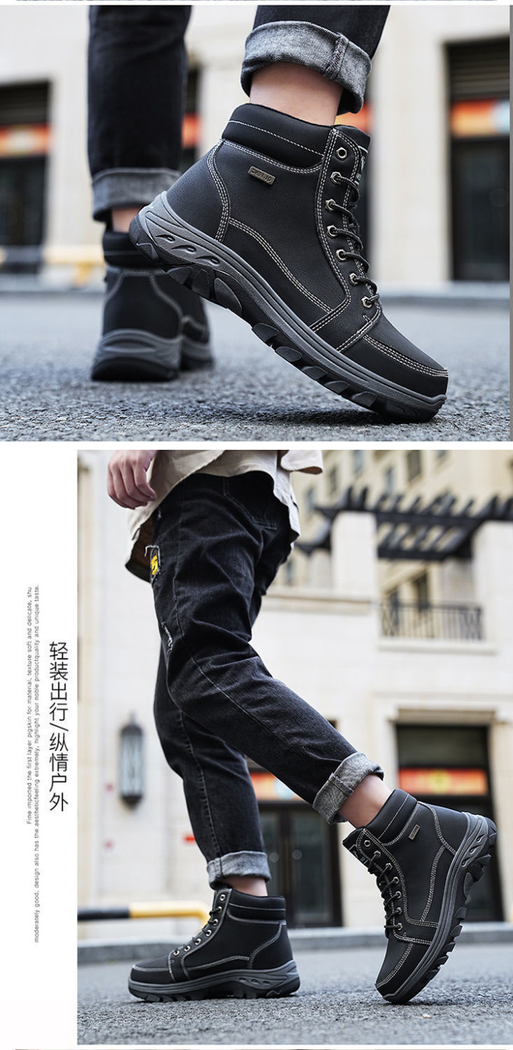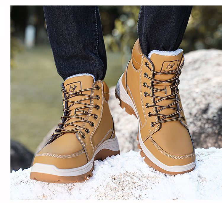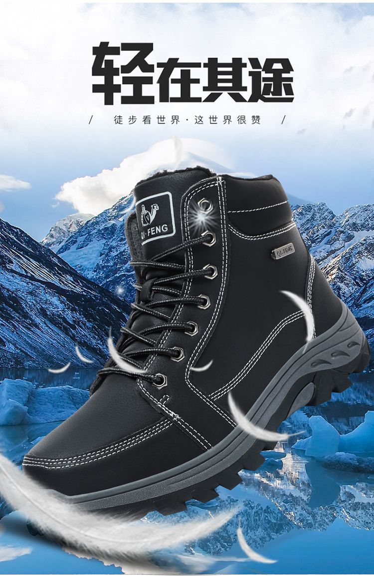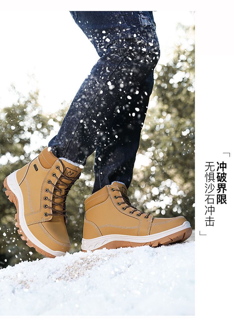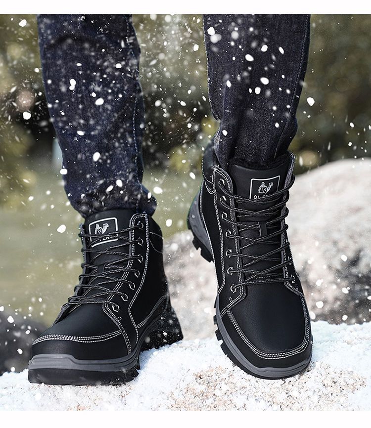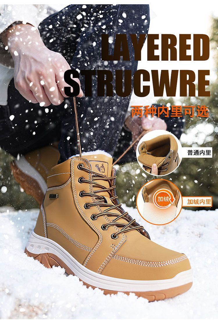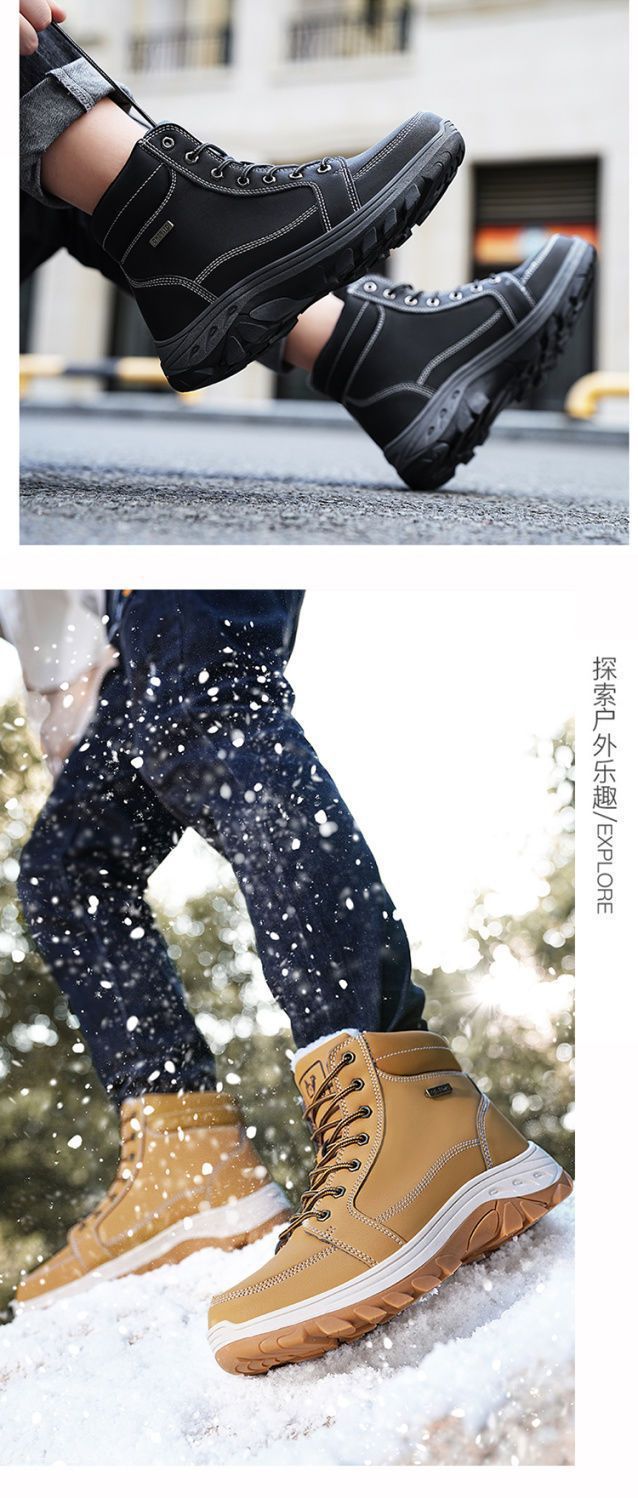 남성용 가죽 방수 하이 탑 캐주얼 신발 겨울 기모 냉간 따뜻한 코튼 신발 플러스 사이즈 남성용 신발 미끄럼 방지 스노우 부츠