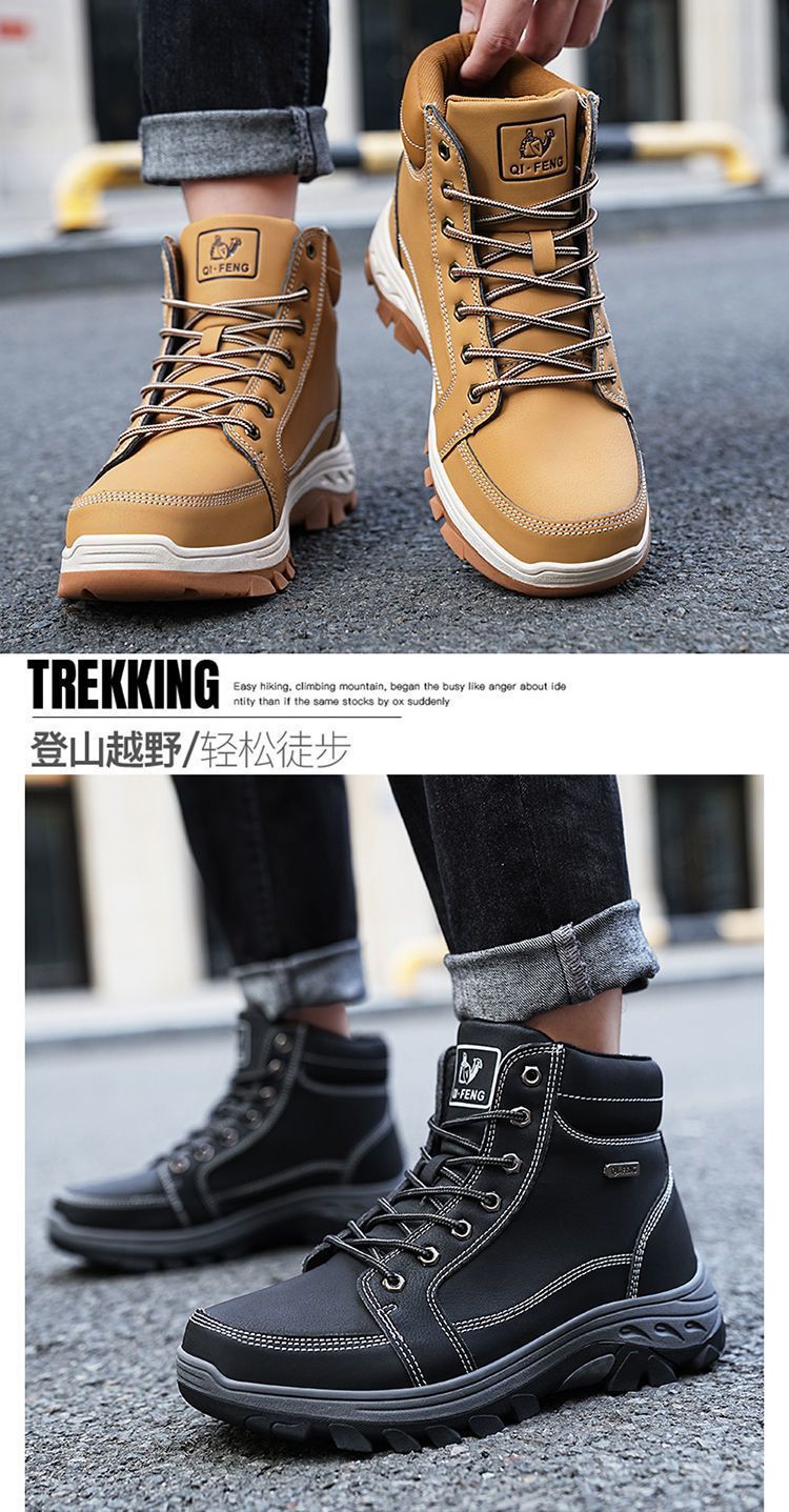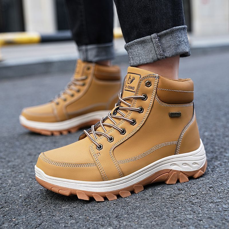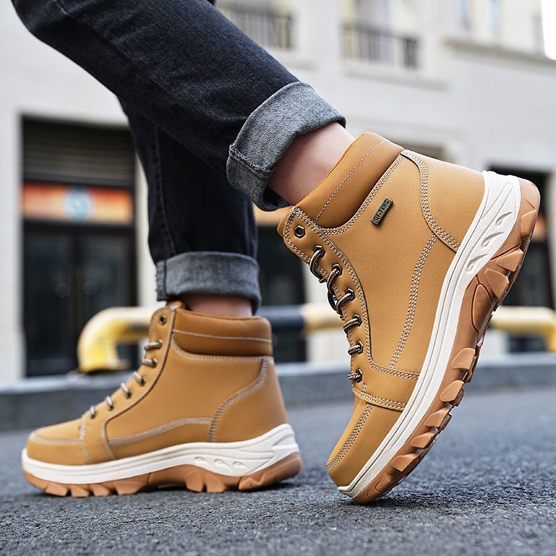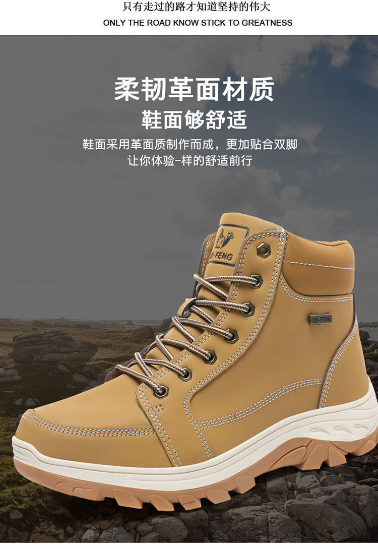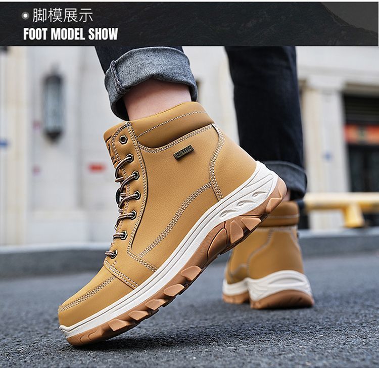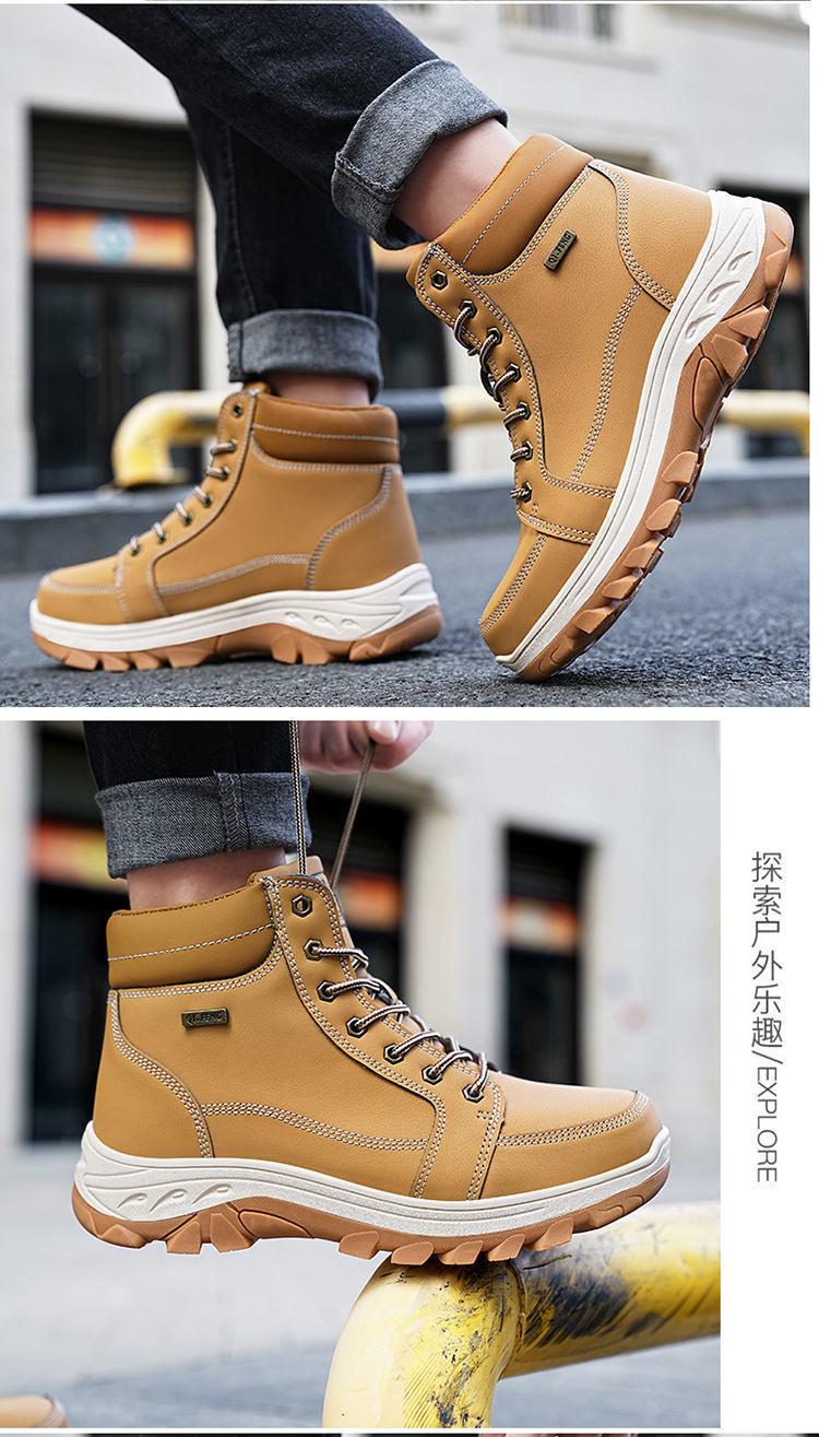 남성용 가죽 방수 하이 탑 캐주얼 신발 겨울 기모 냉간 따뜻한 코튼 신발 플러스 사이즈 남성용 신발 미끄럼 방지 스노우 부츠