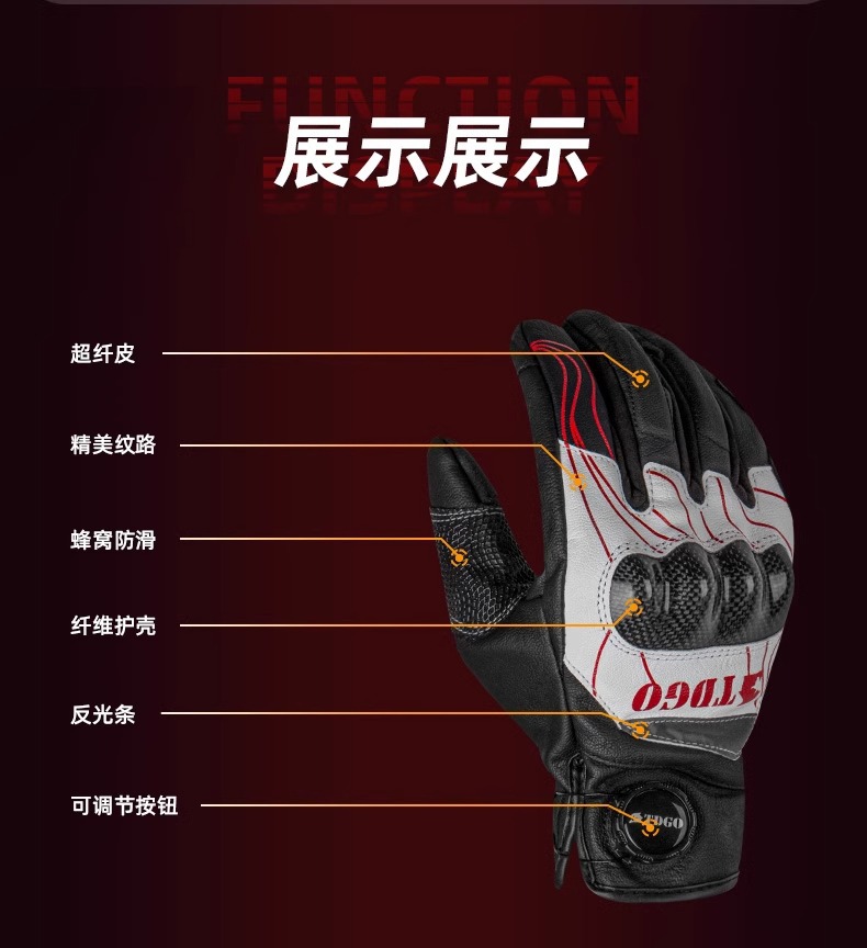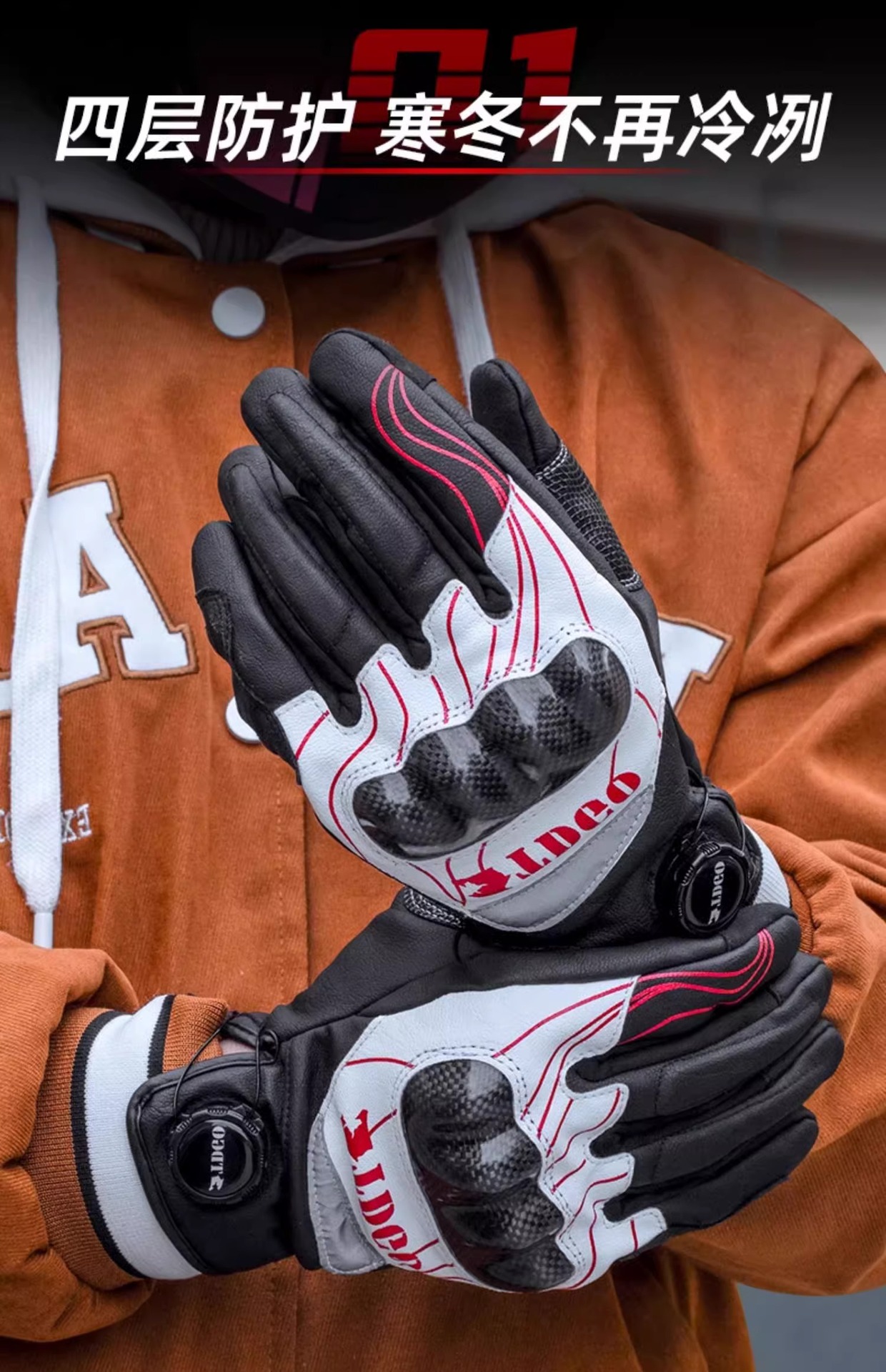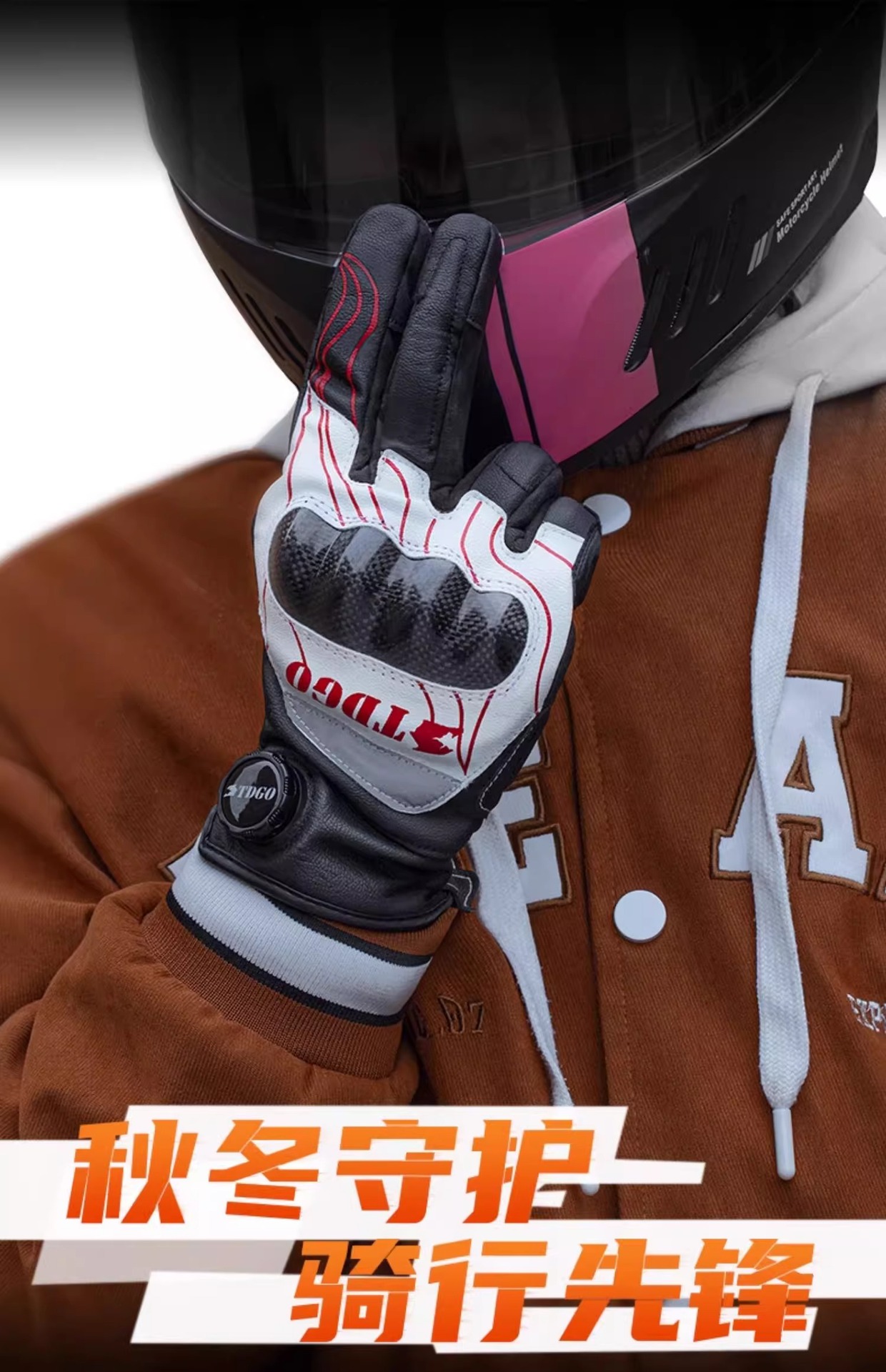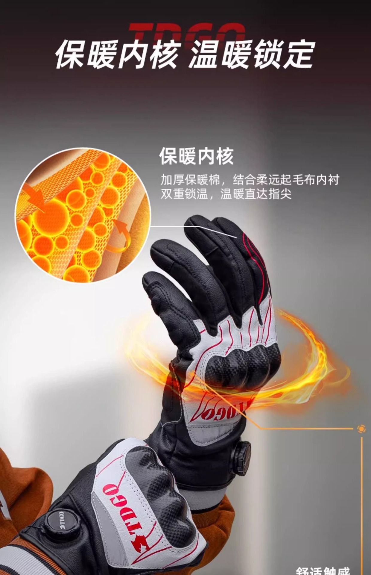오토바이 겨울 장갑 오토바이 타기 복고풍 크루즈 따뜻하고 방한 방수 탄소 섬유 레이싱 가죽 장갑 남성용